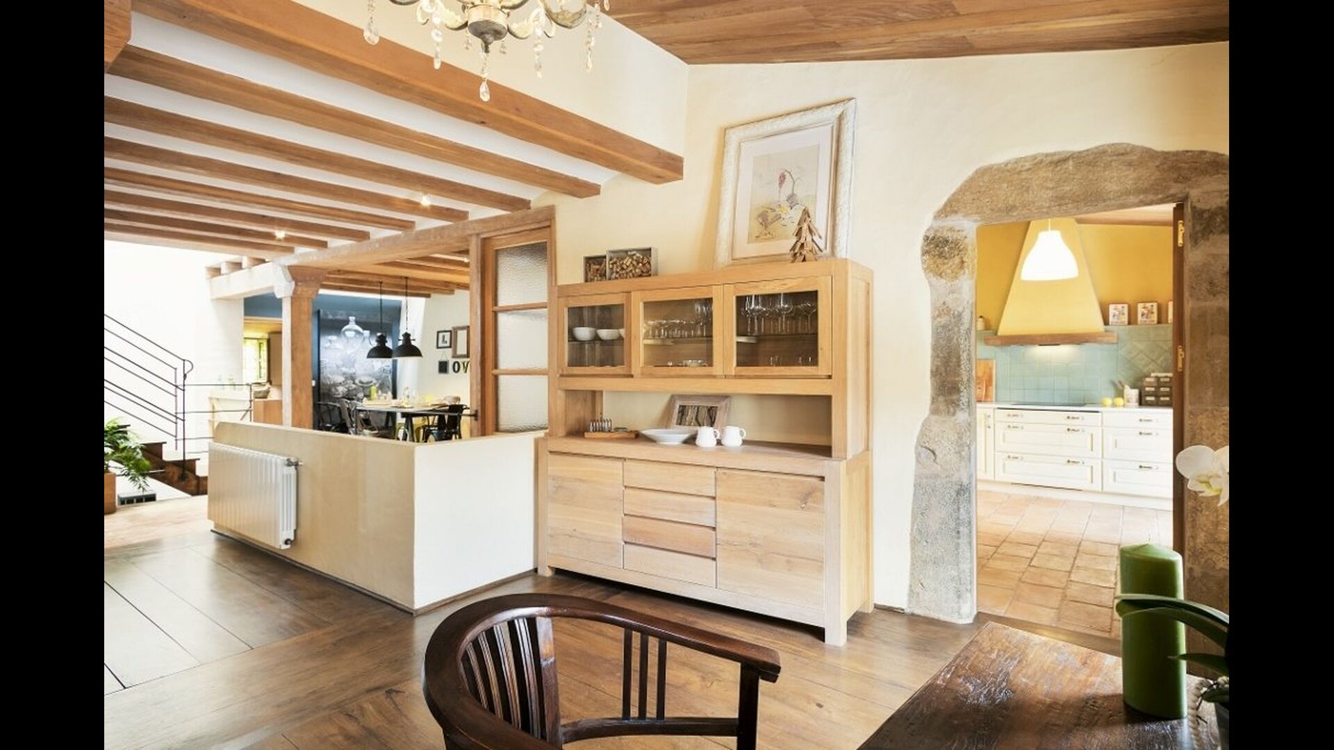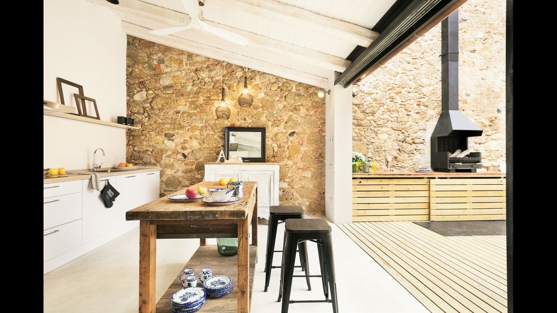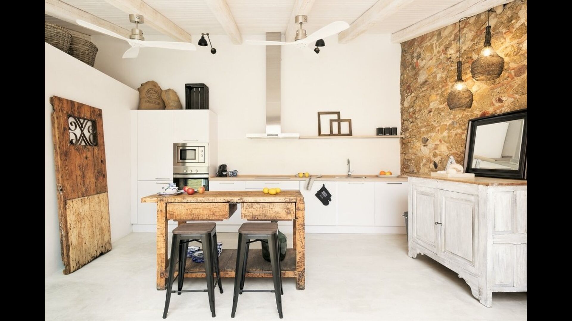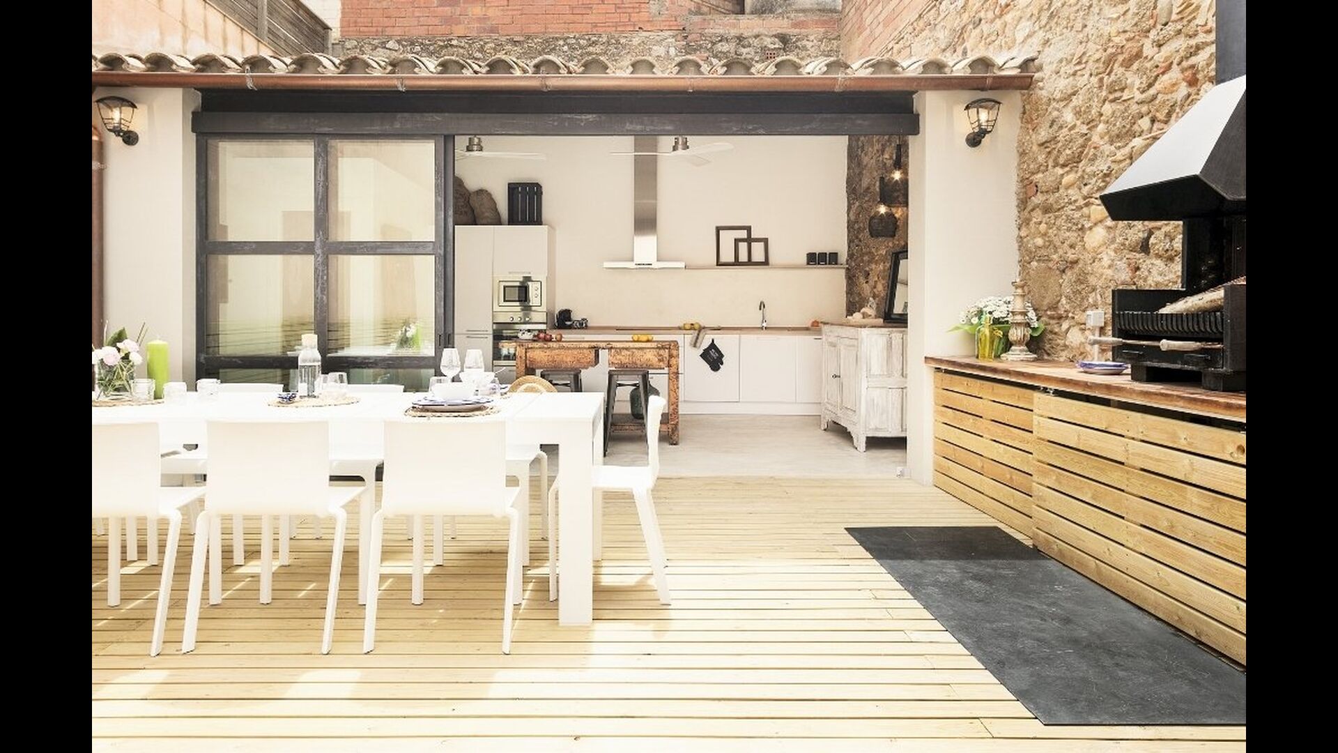 En vous promenant dans la rue du village catalan, vous remarquerez à peine Cal Mareña de la Costa Brava, qui se fond dans les maisons authentiques. Vous penserez probablement que rien de spécial dans cette maison, cependant, comme vous mettez votre main sur la poignée de la porte, cela va changer. L'intérieur de cette maison fait partie des plus belles maisons de vacances que nous ayons jamais vues.
