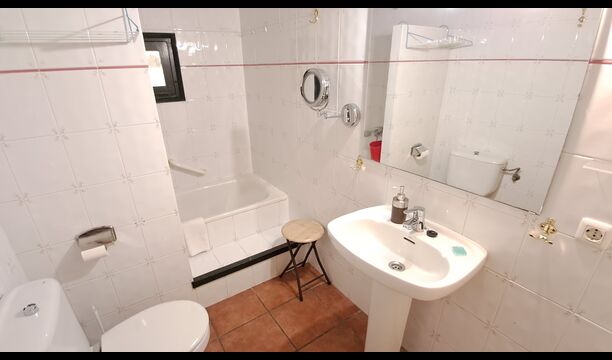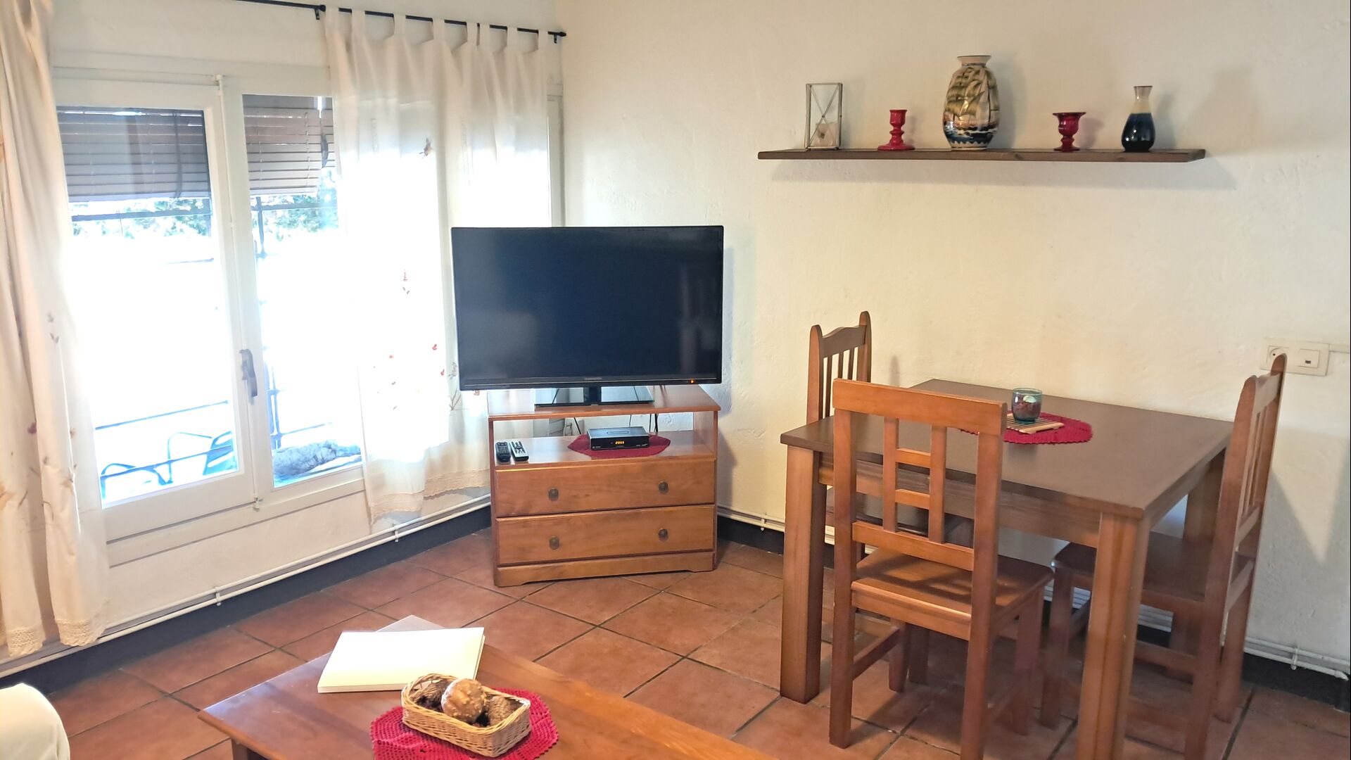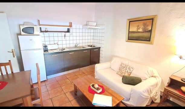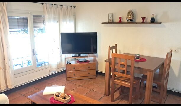 La salle commune comprend une table à manger, un canapé et WIFI. Télévision par satellite et cheminée. La chambre double est équipée d'un ventilateur de plafond pour maintenir la température agréable. Juste en face de l'appartement, vous avez une terrasse ombragée et le coin barbecue etla piscine est au coin de la rue.