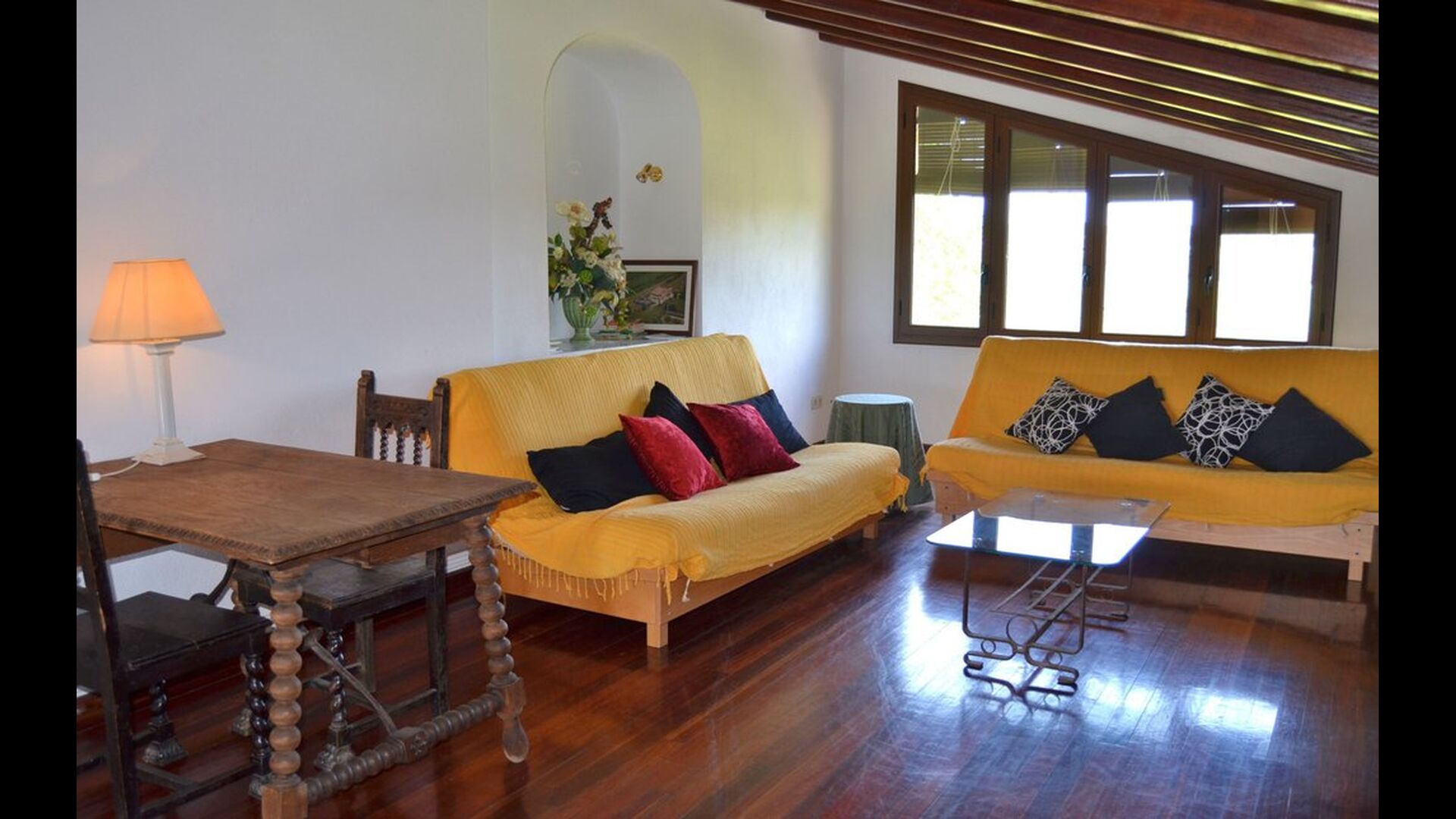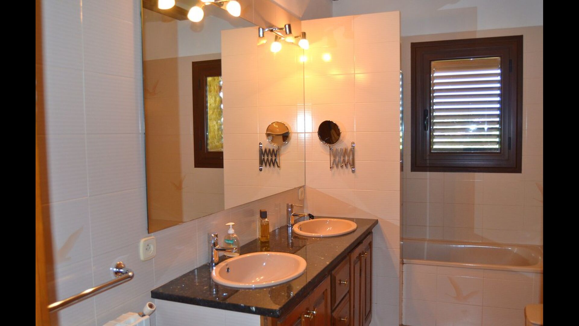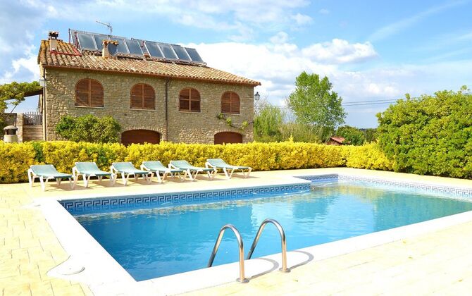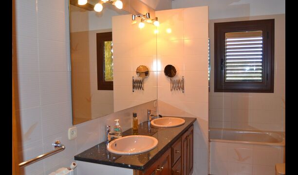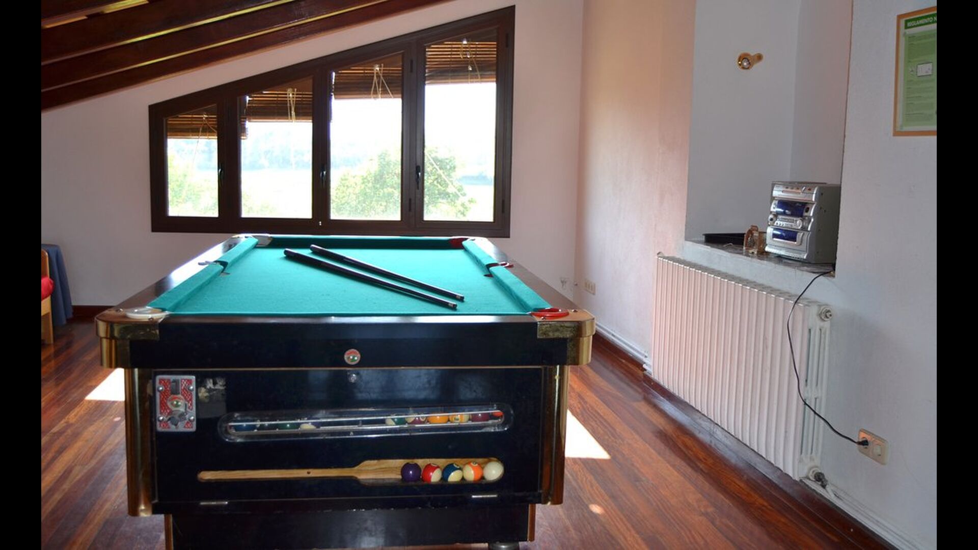 La maison est située sans aucune maison voisine et de la terrasse du premier étage ou de la piscine, vous avez une vue splendide sur les magnifiques environs. La maison de vacances dispose de 5 belles chambres doubles (4 avec des lits doubles et 1 avec des lits jumeaux) ainsi que de 2 chambres simples, situées au premier étage, où une pièce commune donne accès aux chambres et aux 3 salles de bains. Au deuxième étage, il y a un espace de détente avec deux canapés à une extrémité et un billard à l'autre extrémité.