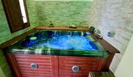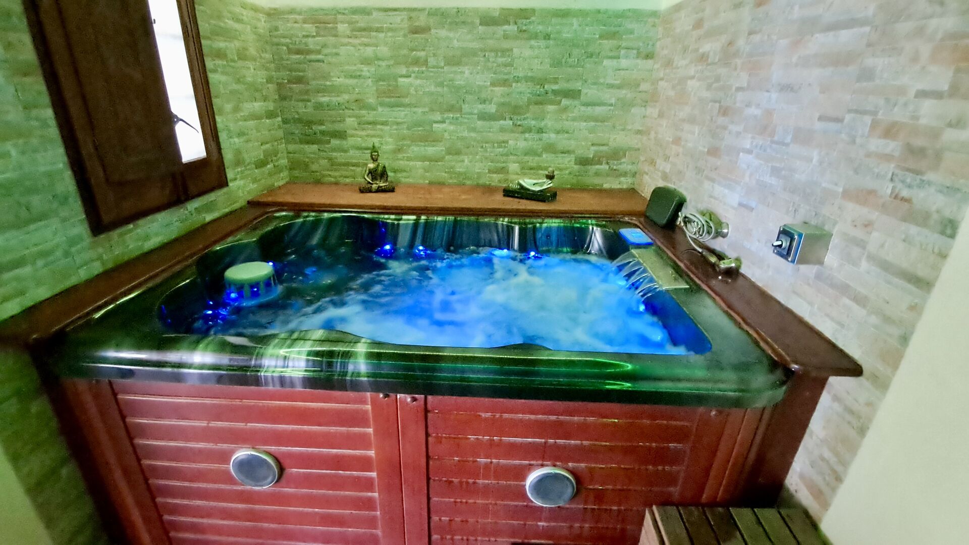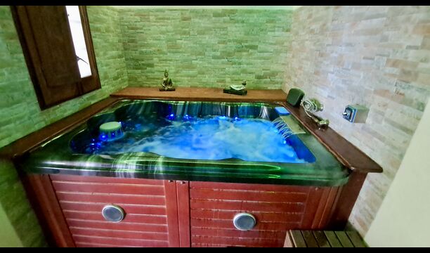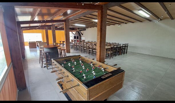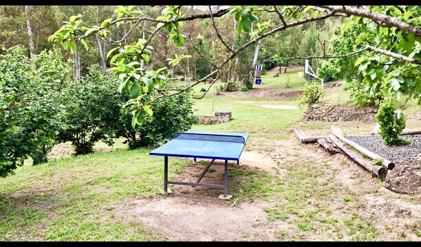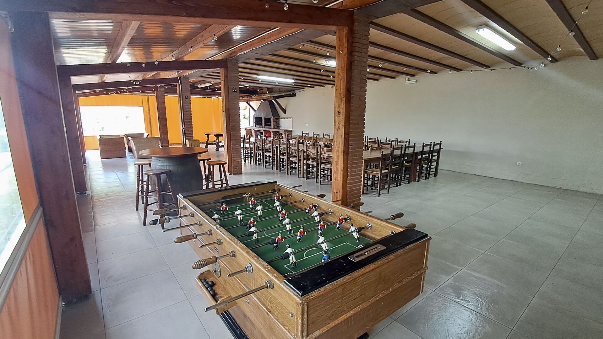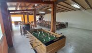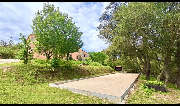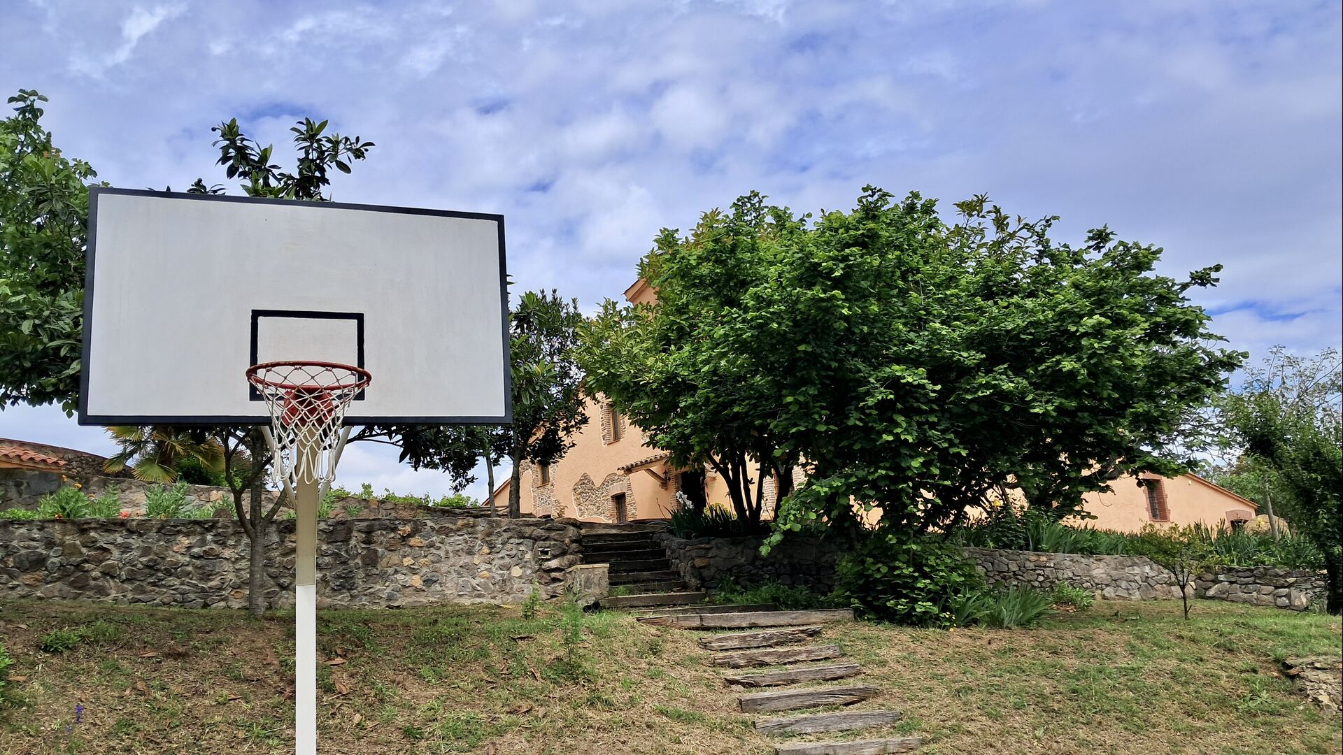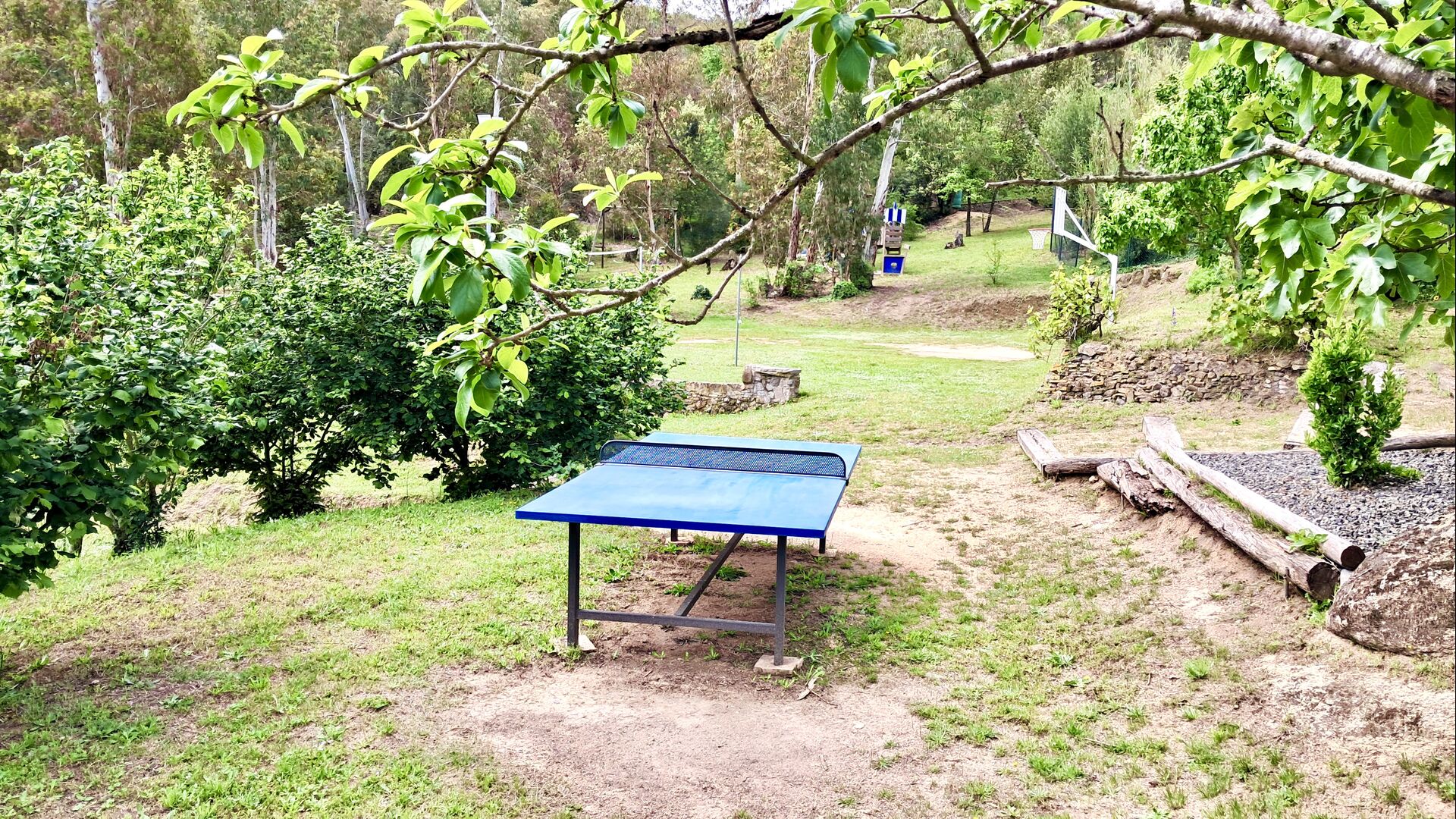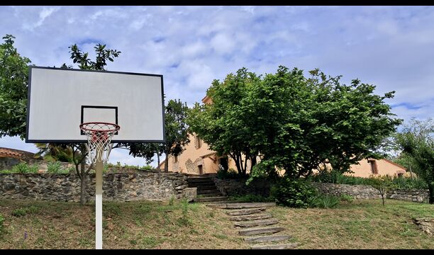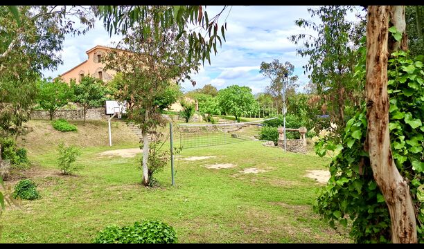 The garden has as mentioned before many facilities and activities. For the little ones, there is a small cable car, a play area with a slide, swing set and sandbox. Additionally, there are football, petanque, trampoline, basketball basket and ping-pong table.