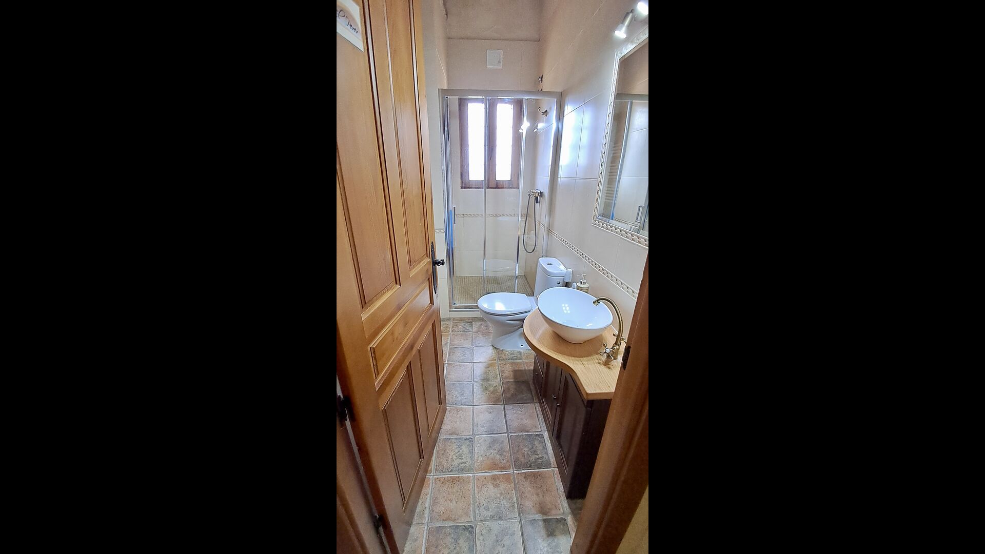 The house lies 800 meters down a dirt road that begins at the end of a residential street. Here, the holiday home lies privately and there is no disturbing neighbors. There is a parking area with shade here.
