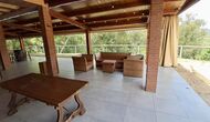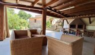 The house has a huge terrace. At one end, there is a large barbecue and a sink, where you can cook dinner. This area is covered and there are several seating areas and a nice, round table. Likewise, there are two large dining tables, so the whole holiday group can enjoy meals and the warm evenings here. There is also an extra fridge here, which is a great convenience.