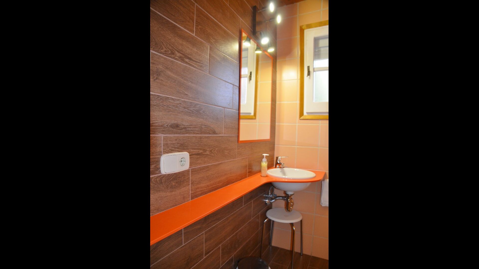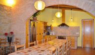 The holiday home has 5 bedrooms, one of which is for four guests and thus perfect for a family with two small children, or for a group of small children. There are also 2 double rooms and 2 tripple rooms. The large common area is one big open environment with a cozy living room, a long Spanish table and a smaller kitchen. There are also three bathrooms in the house.