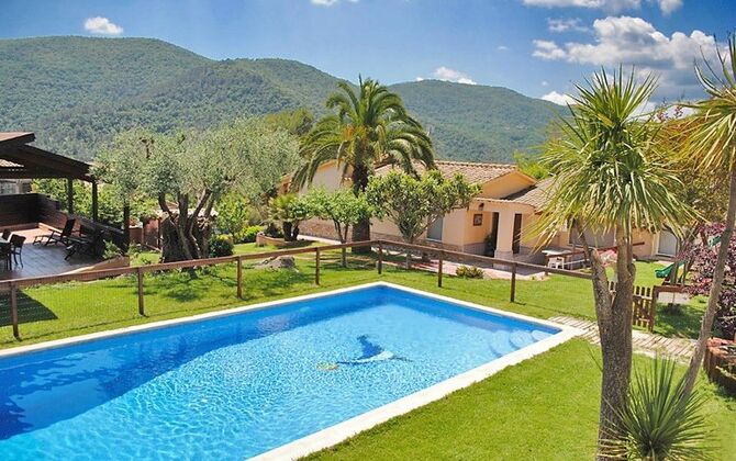 Casa de Soleña is a great and modern holiday house for 10 (+2) guests. The house is situated on a hilltop with a glorious view of the hilly Catalan landscape and has a great garden. The very nice town Banyoles is 4.5. Km. away. In addition to the weekly market, cafes and restaurants there are buses directly to Barcelona from the town, so you do not have to worry about parking and driving in Barcelona if you are going there doing your holiday.