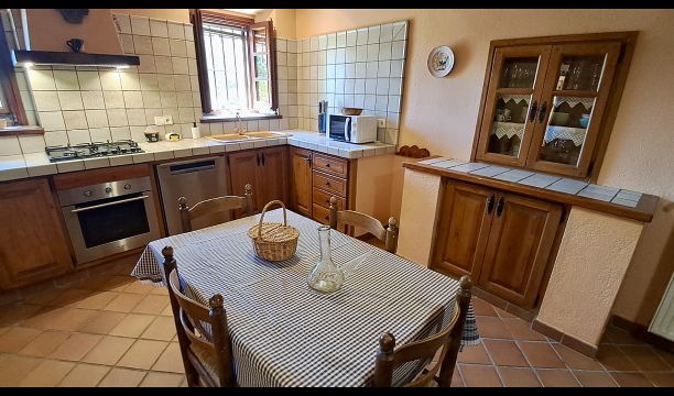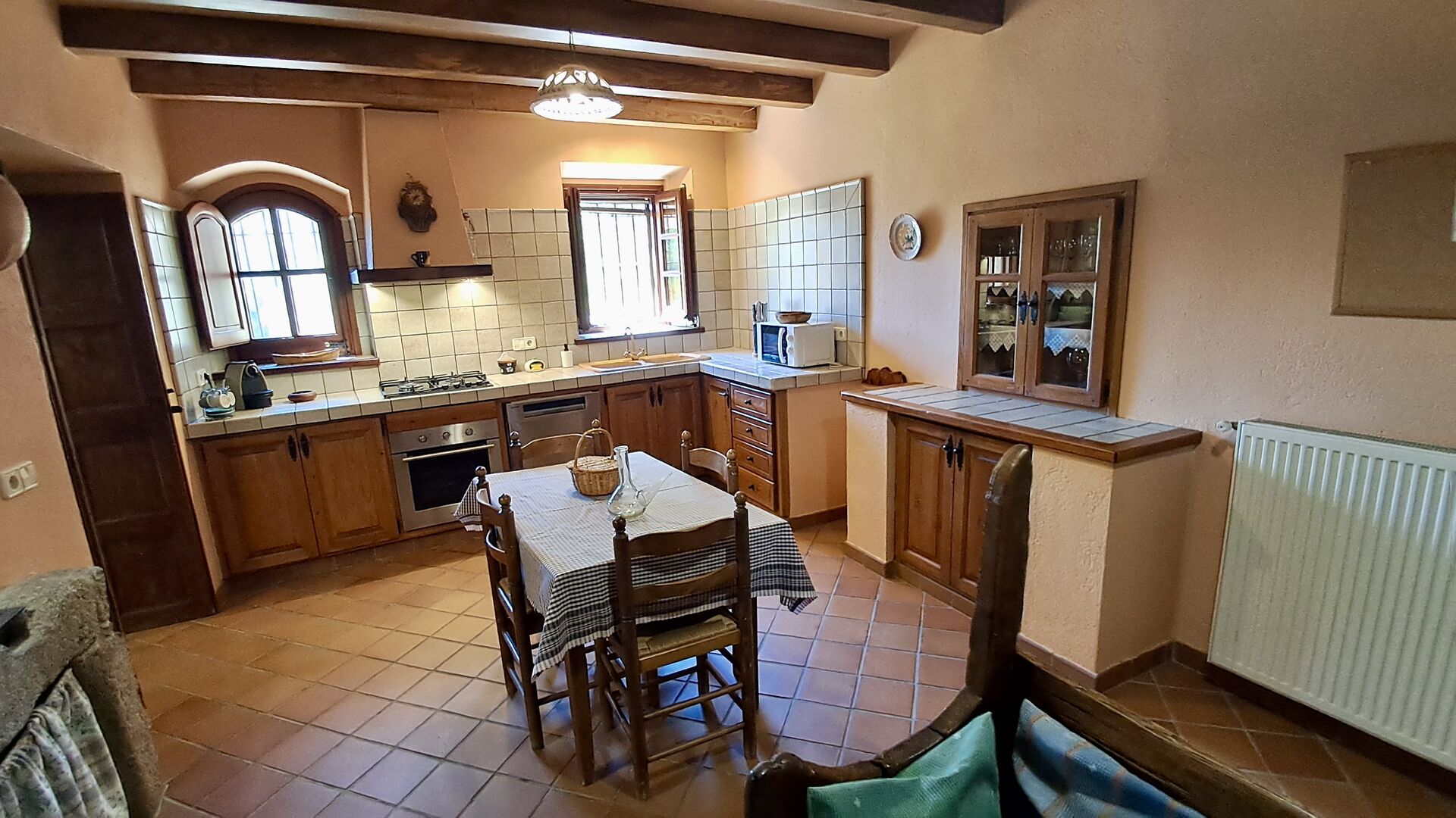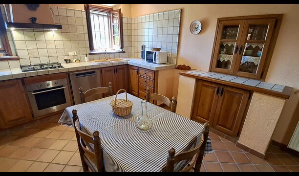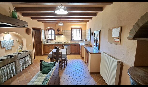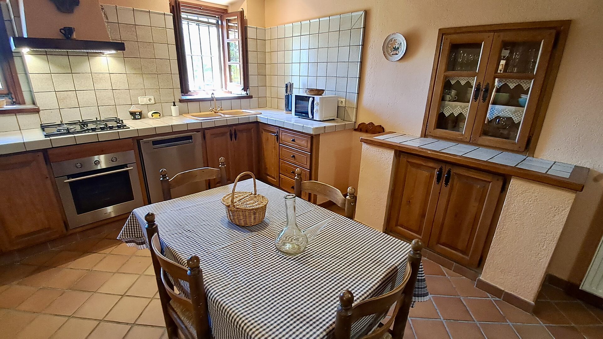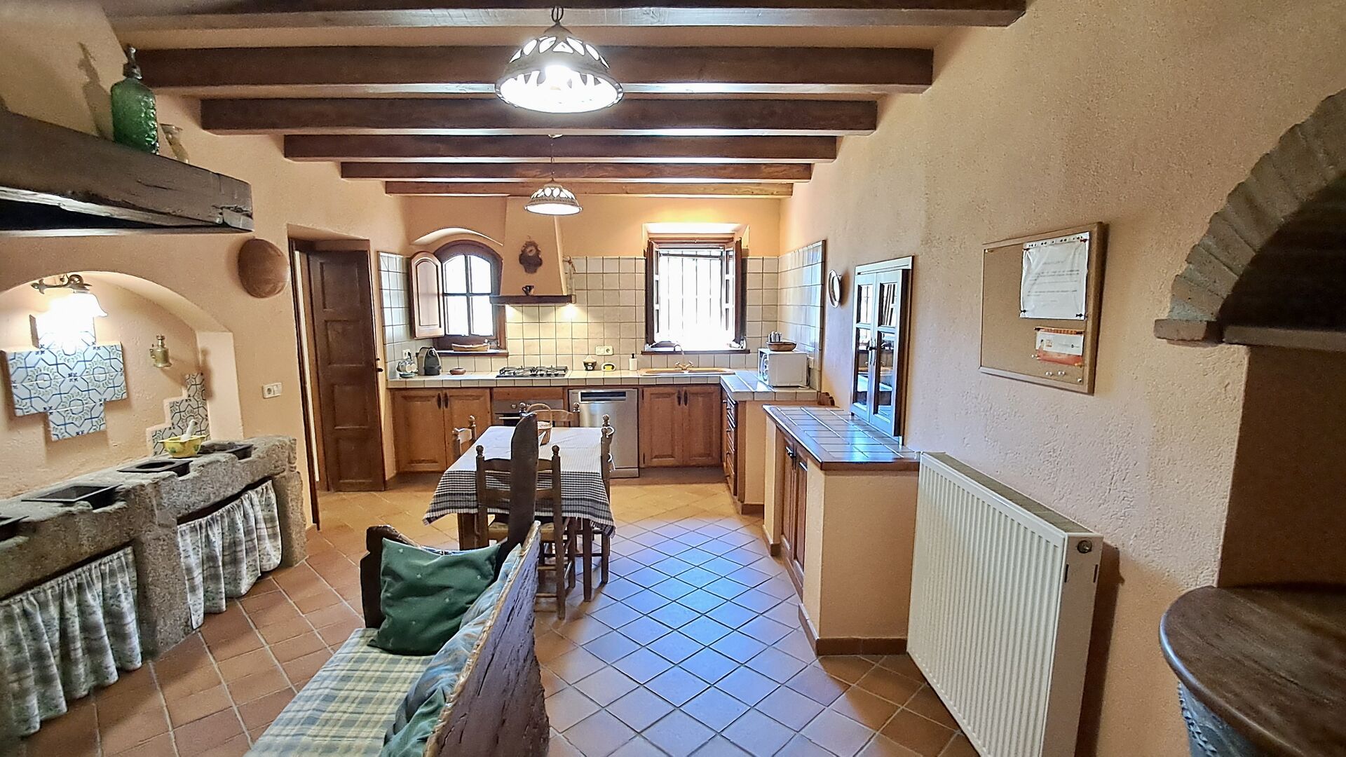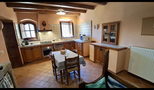 Casa Palou dispose d'un grand salon décoré d'antiquités rustiques parfaitement assorties à la ferme rustique. Dans le grand espace ouvert se trouve également une longue table à manger. La cuisine est une cuisine de campagne espagnole traditionnelle, qui a conservé les éléments liés à la tradition. Ici, les propriétaires ont conservé la cheminée de la cuisine et son long banc, où la famille préparait auparavant le dîner du jour. La cuisine est équipée de tous les équipements modernes tels qu'un lave-vaisselle, un four micro-ondes, une cuisinière et un réfrigérateur/congélateur. Dans la cuisine se trouve également une petite table à manger.