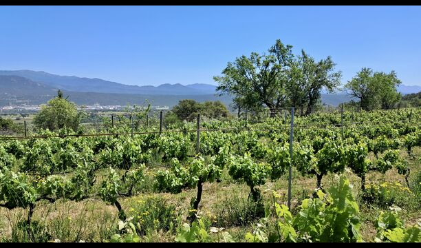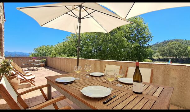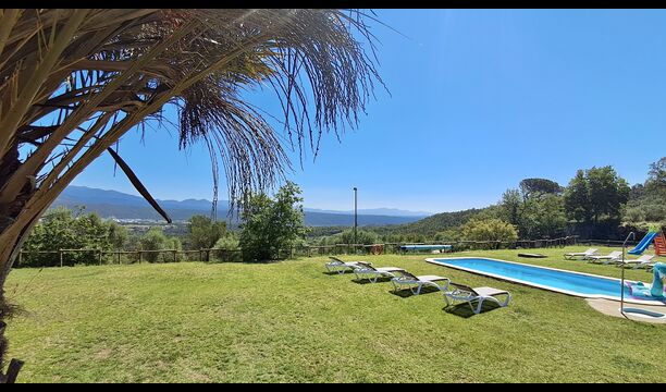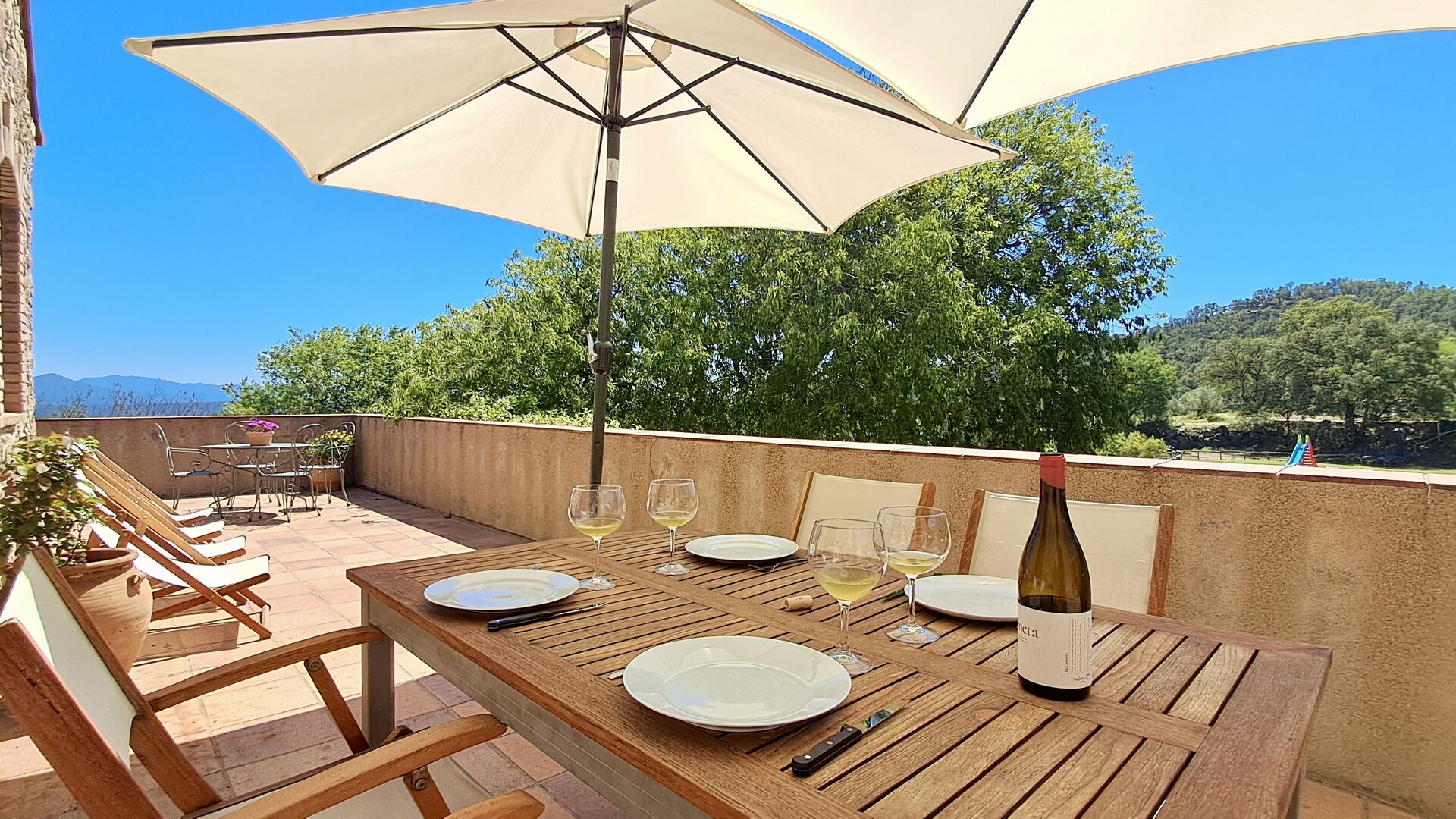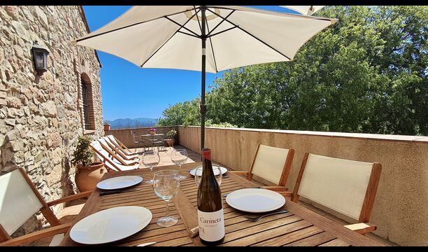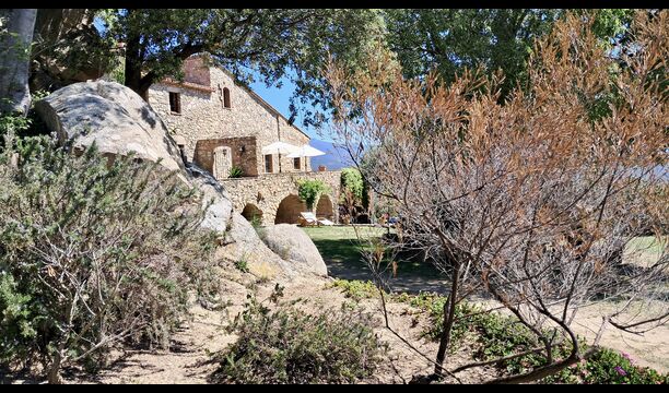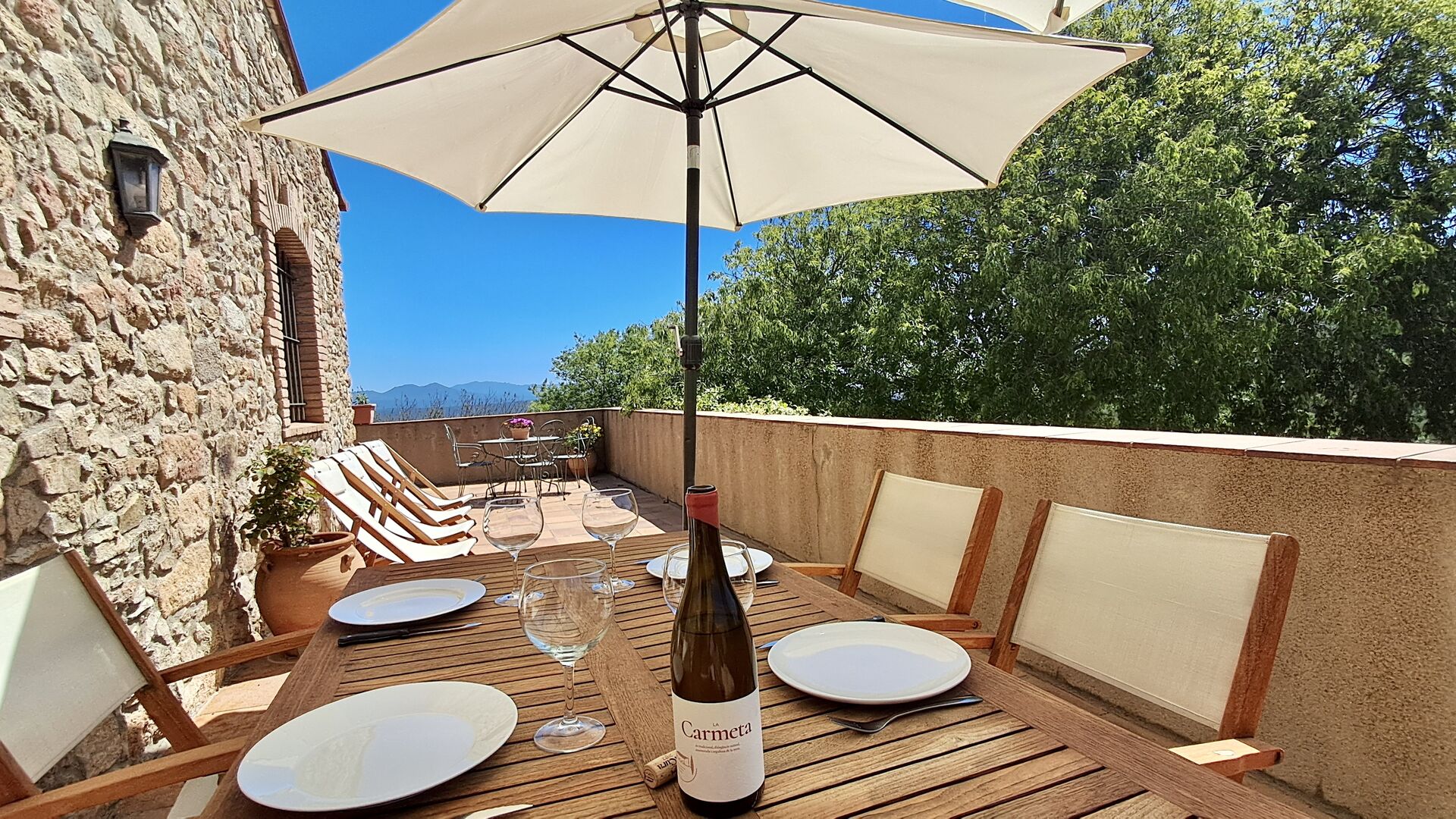 Casa Palou a le plus bel emplacement, juste au début des montagnes, vous avez donc une belle vue sur la vallée dans un sens, et dans l'autre sens les Pyrénées s'élèvent. , avec les oliviers et les vignes de la propriété comme un beau "capet" devant.