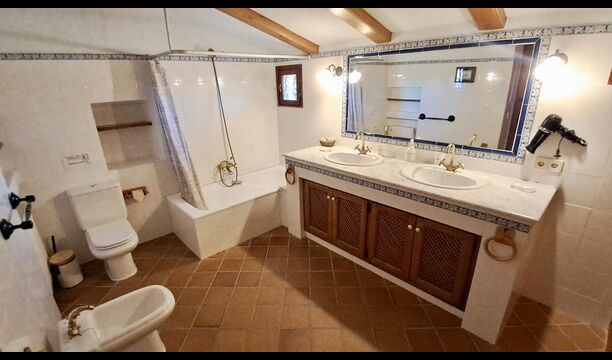 La maison dispose de quatre chambres très spacieuses, toutes joliment décorées. Voici deux chambres avec lits doubles et deux chambres avec lits jumeaux et il est également possible d'installer un lit bébé. La maison dispose de trois salles de bains et fait au total 215 m2.