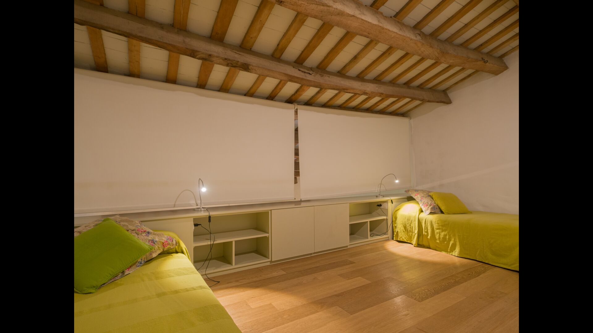 Il y a une grande chambre à deux lits au premier étage de Casa Piferan-Porxo. La deuxième chambre est sur le grenier supérieur et dispose de deux lits jumeaux, avec la possibilité d'avoir un autre lit mis en place. Il y a aussi une salle de bain au premier étage.