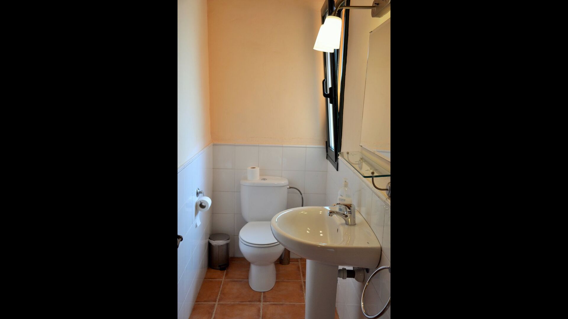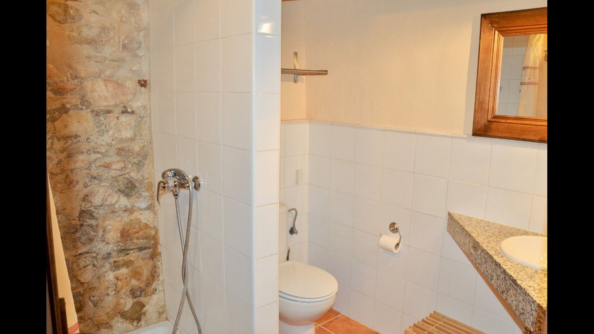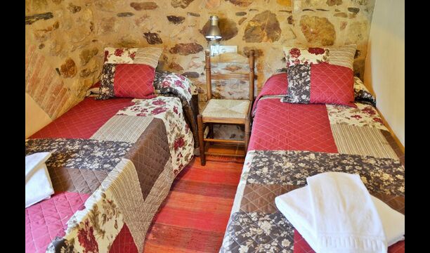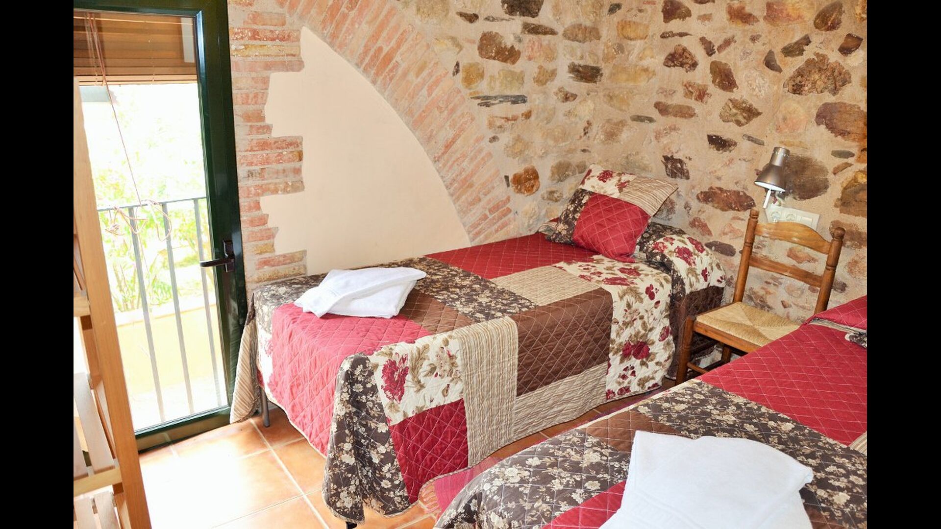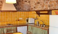 Le rez-de-chaussée comprend une salle commune avec un coin canapé avec télévision, une table à manger et une cuisine bien équipée. La plupart des murs sont en pierre et avec des poutres au plafond, ce qui donne une bonne impression du style typiquement catalan.