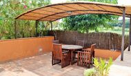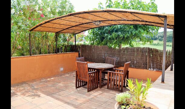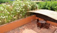 Cet appartement de deux étages se trouve seul dans le jardin et dispose d'une belle terrasse privée. Ceci est couvert afin que vous puissiez vous asseoir et profiter de l'ombre et peut-être profiter du dîner ici.