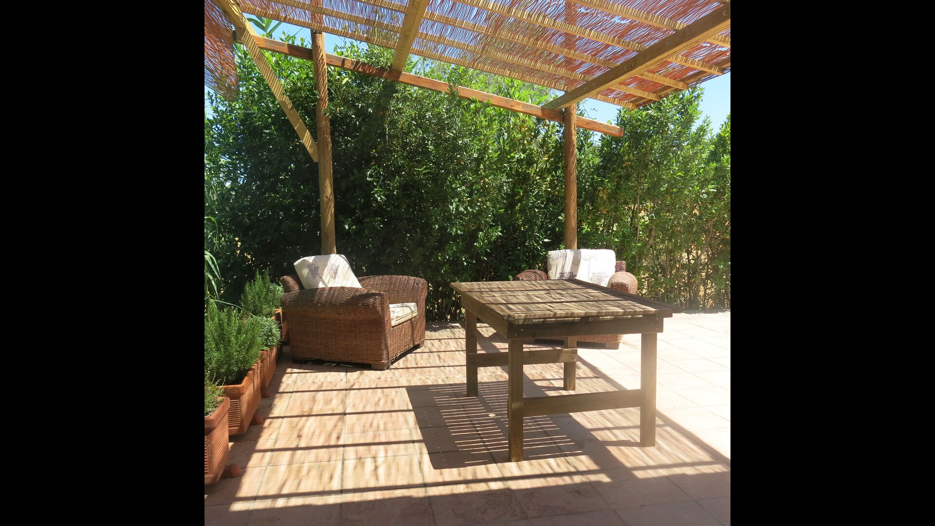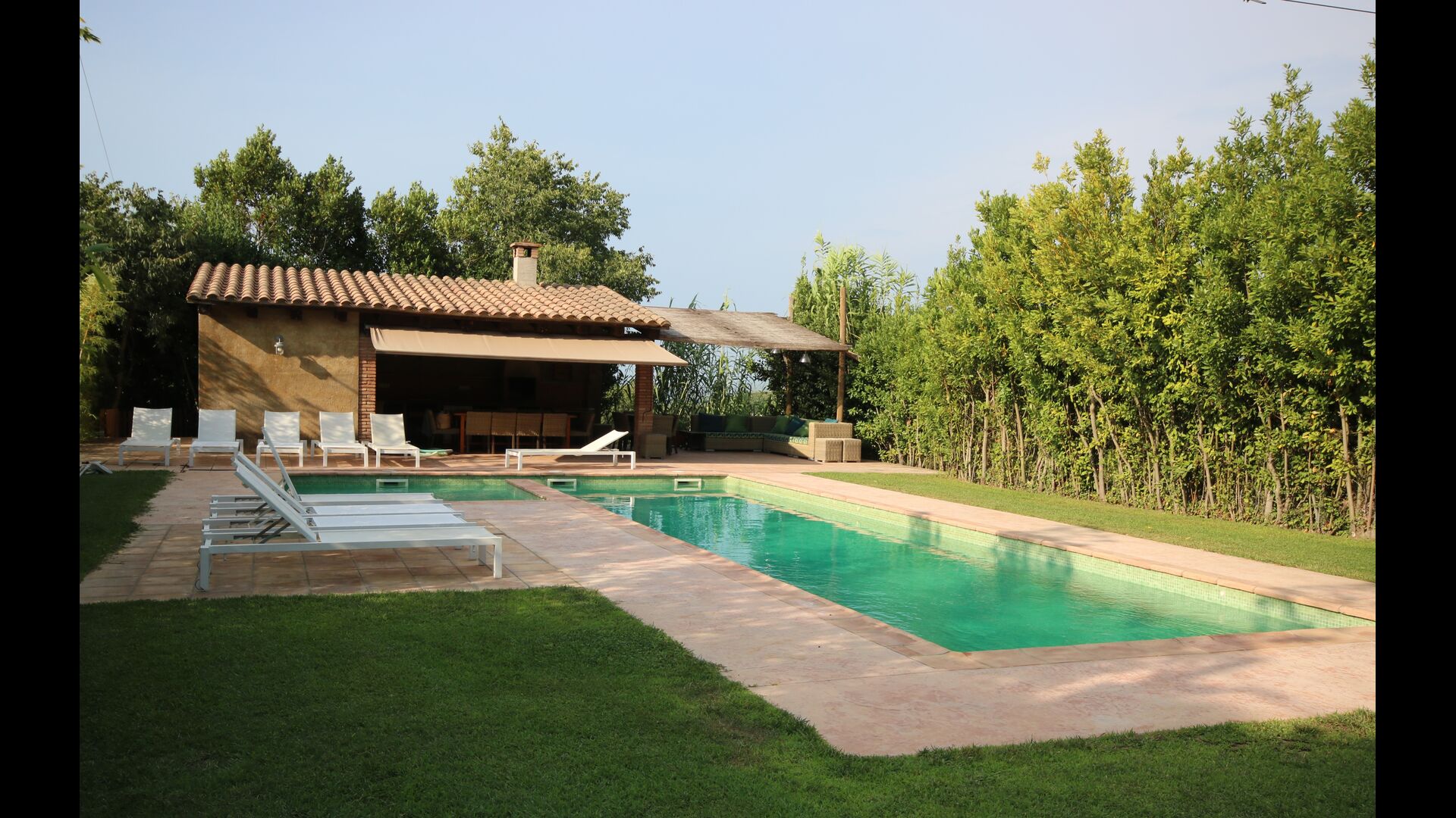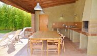 Au fond du jardin, avec une vue imprenable sur les champs, se trouve la grande piscine (clôturée pour protéger les jeunes enfants). Elle est d'eau salée et mesure 10 x 4 mètres. Un bassin plus petit est également prévu pour les plus jeunes. Au bout de la piscine, une grande terrasse couverte avec cuisine extérieure avec eau courante, réfrigérateur et barbecue vous permettra de déguster vos repas et boissons fraîches. Des toilettes sont également disponibles, vous évitant ainsi d'entrer dans la maison.