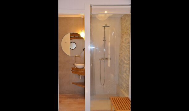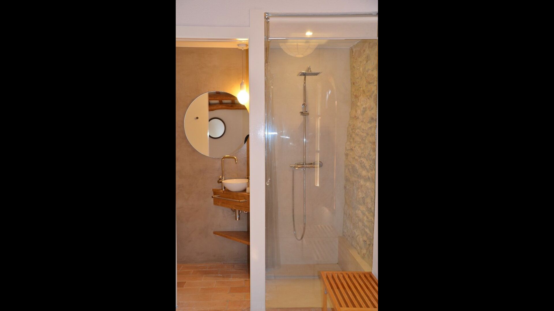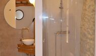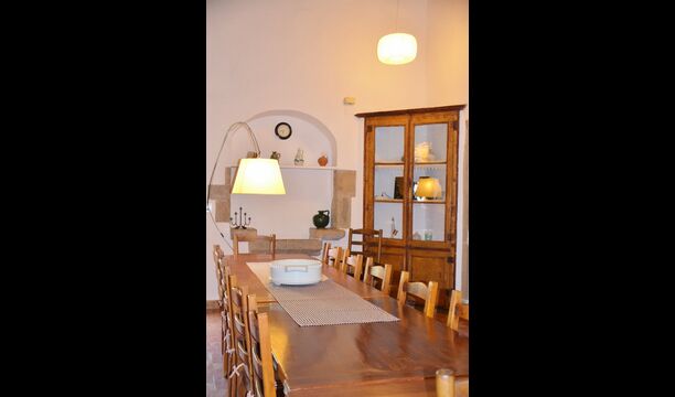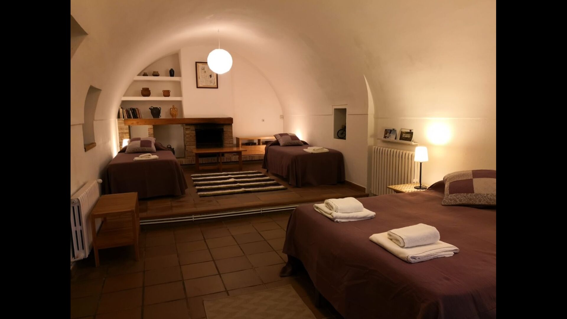 La maison est entrée au rez-de-chaussée par un beau hall avec de hauts plafonds et des arches et une très belle atmosphère créée par les calcaires et de nombreux détails authentiques. Il y a aussi un tennis de table. À cet étage, il y a un salon et une chambre double avec salle de bain privée et deux marches, une deuxième chambre familiale avec 4 lits simples. Deux marches plus haut, il y a une autre chambre double et une belle salle de bain.