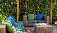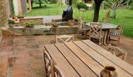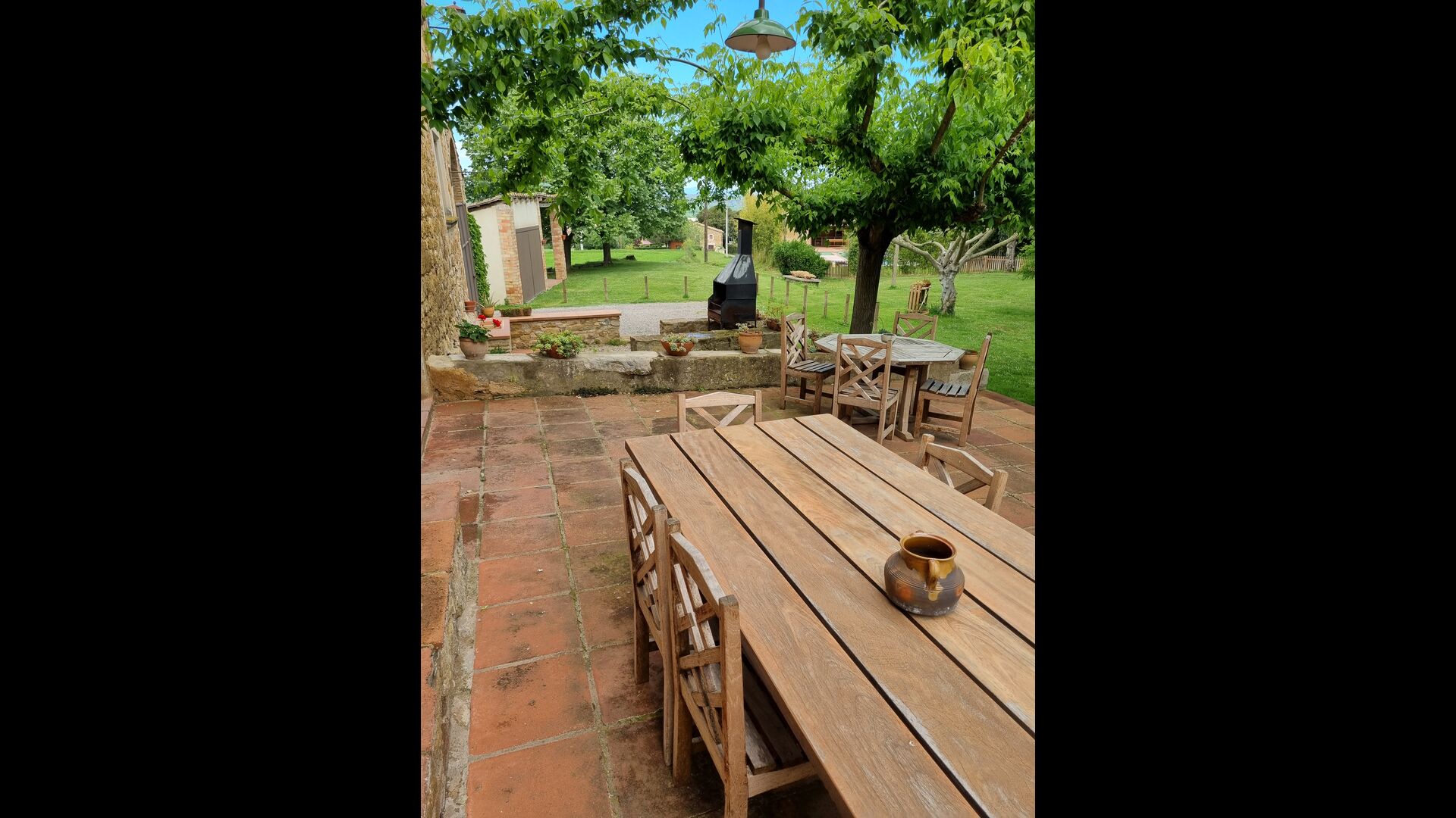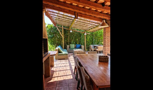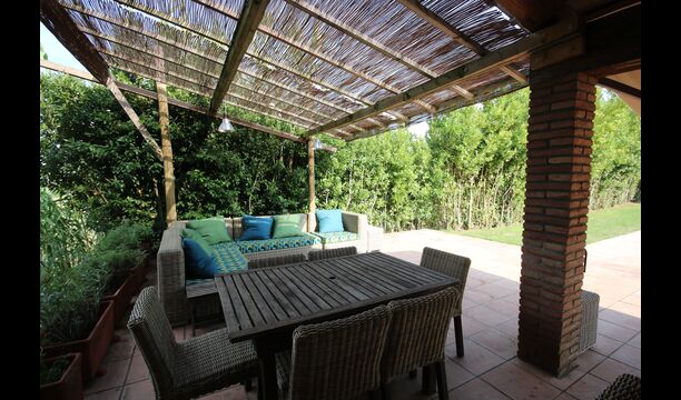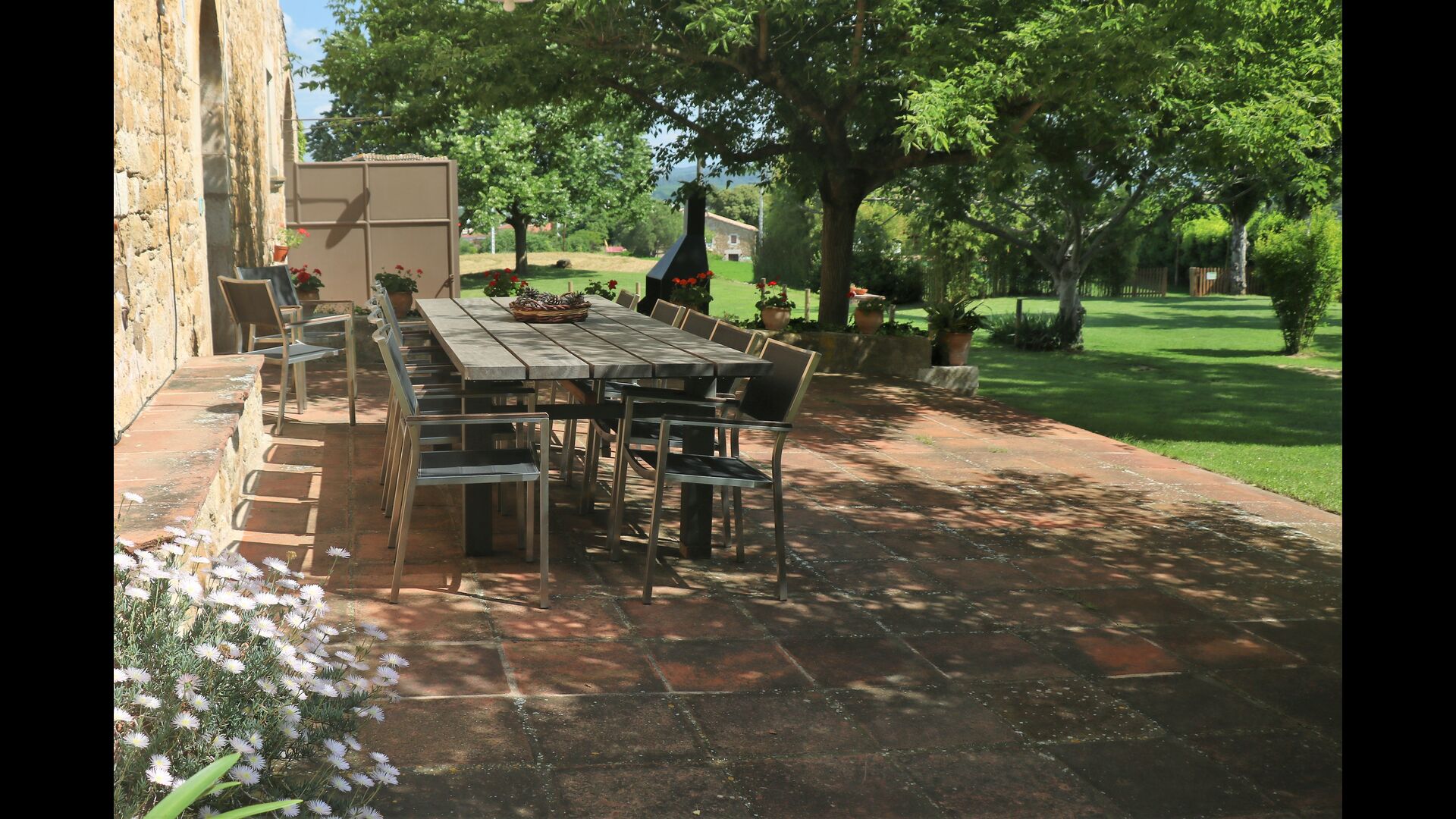 Dehors, devant la maison, vous trouverez la grande pelouse avec de nombreux coins ombragés, créés par les arbres. Voici quelques zones de terrasse plus petites pour prendre le café le matin ou pour se détendre avec un livre et un verre de vin.