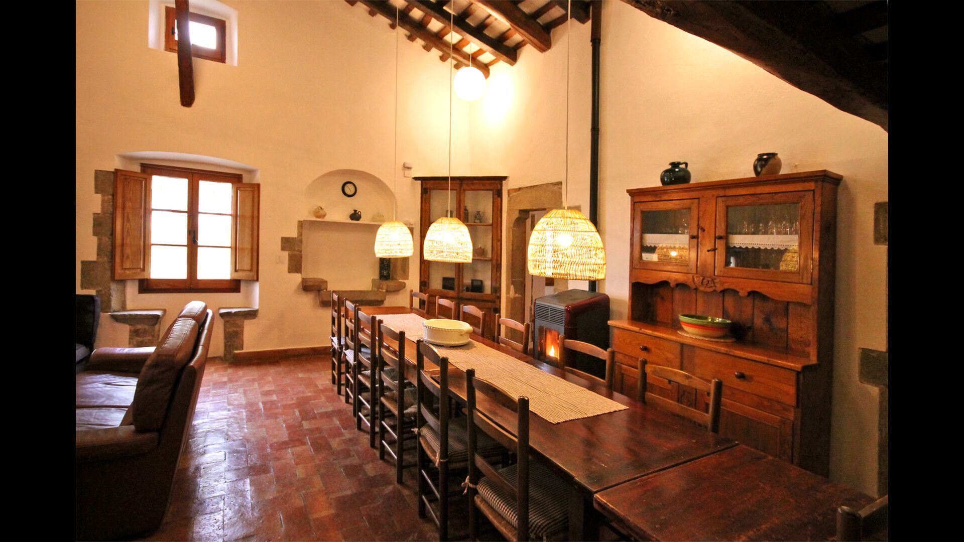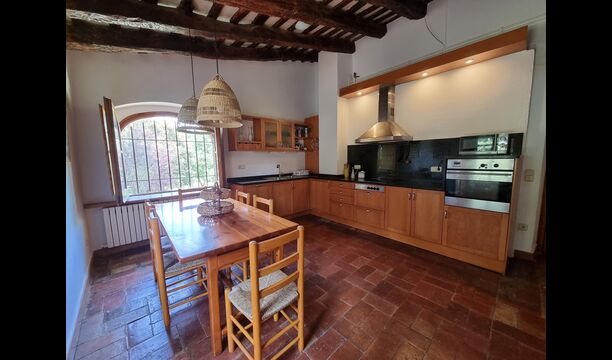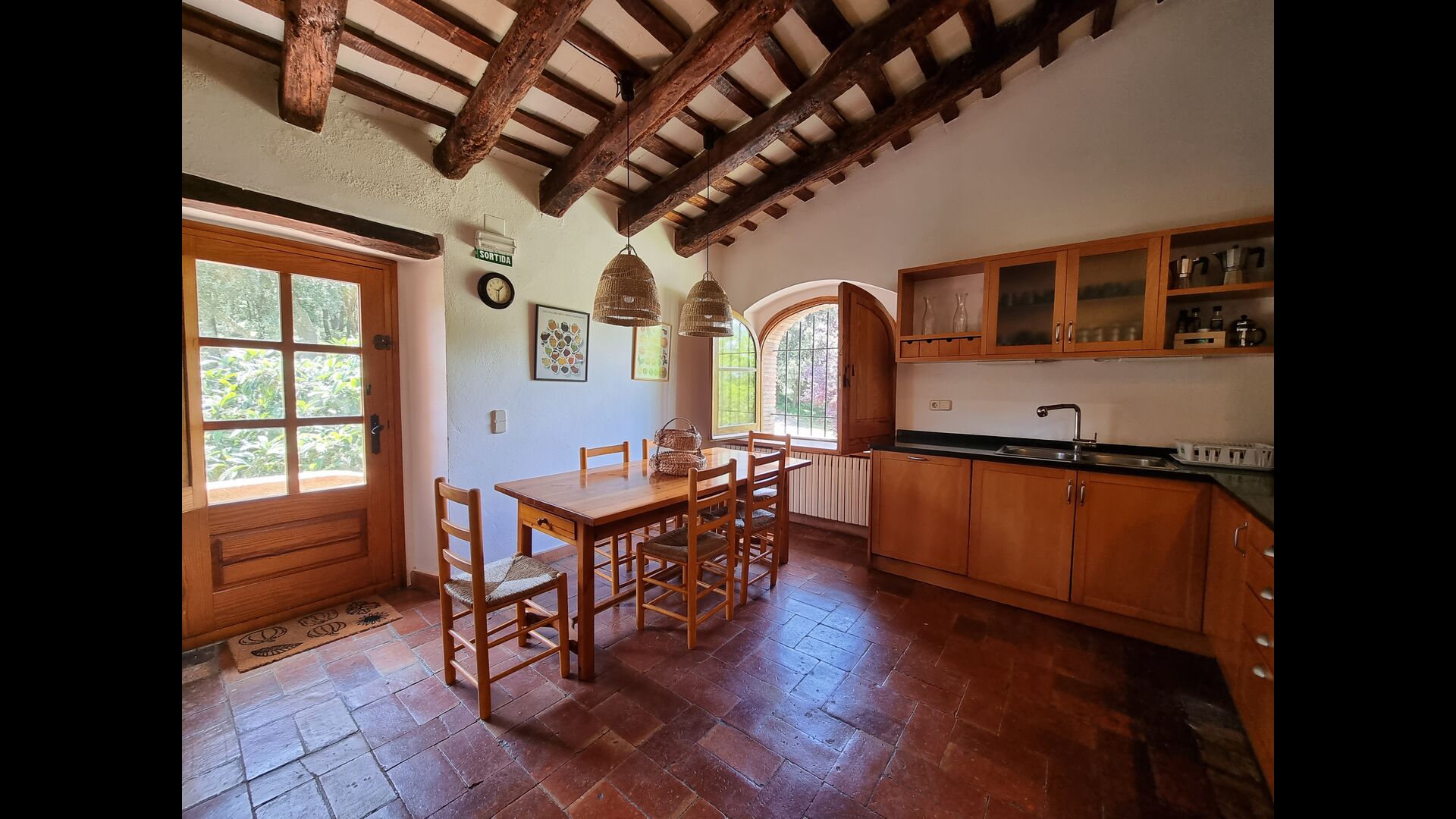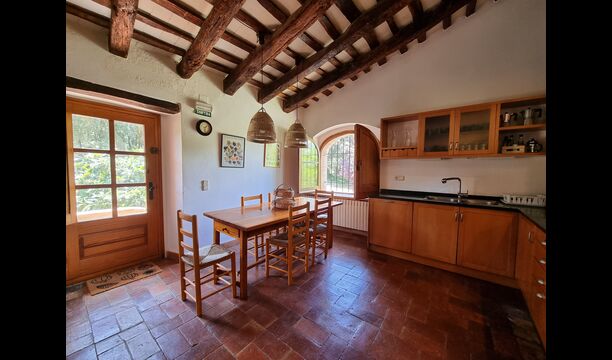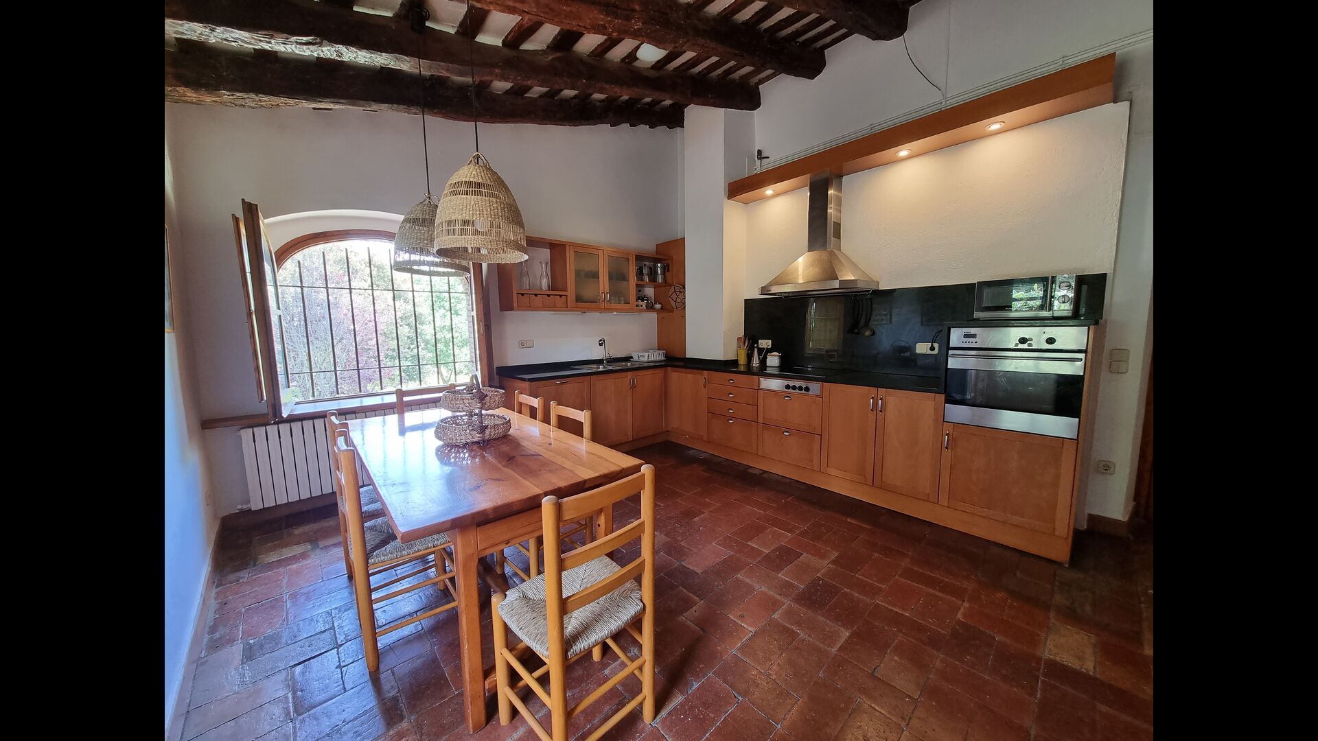 Au premier étage, il y a un très grand espace commun de style catalan plus classique, où vous pourrez vraiment ressentir la longue histoire de la maison. Dans ce grand espace, il y a un coin canapé avec TV et DVD et une longue table à manger. Dans la connexion, il y a une cuisine entièrement équipée (lave-vaisselle, cuisinière, plaques chauffantes, réfrigérateur américain, etc.) avec un petit coin repas. Dans la maison, il y a une connexion Internet WIFI.