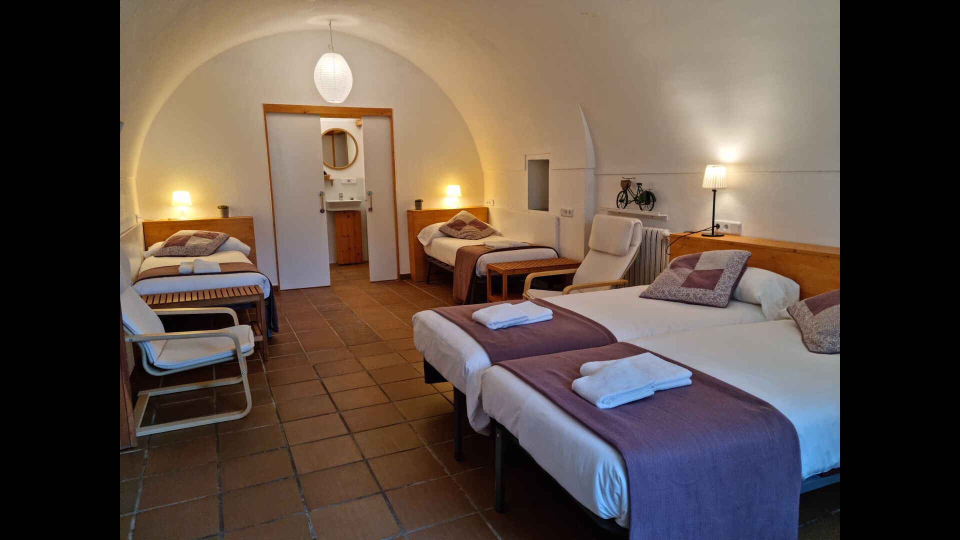 Depuis la zone commune, vous avez accès à cinq chambres supplémentaires, dont deux doubles avec lit double, une double avec deux lits simples et une triple avec 3 lits simples. Les chambres ont une très belle vue sur le paysage et sur le village. A cet étage, il y a deux salles de bain à partager.
