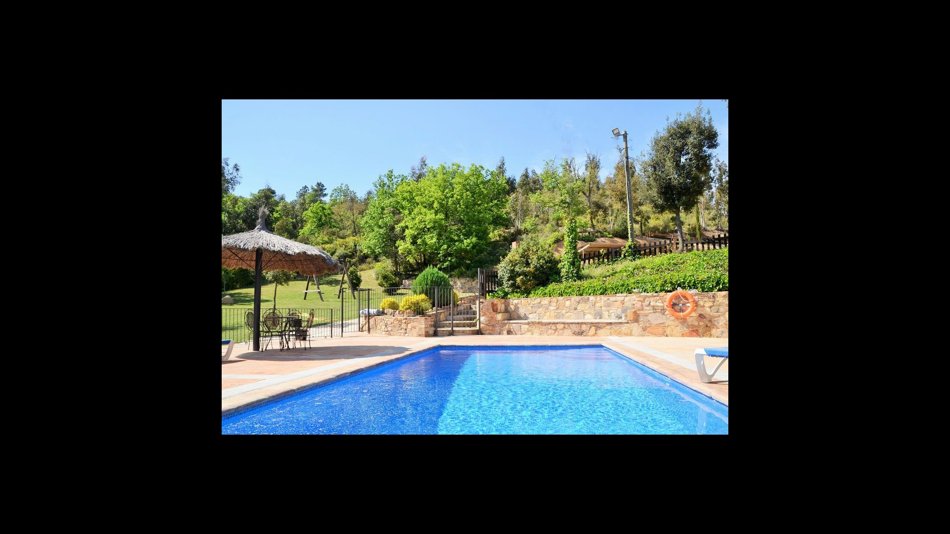 Les installations extérieures sont magnifiques et le jardin est très grand. Vous y trouverez une piscine clôturée et sécurisée, avec de nombreuses chaises longues et un espace de détente couvert, vous permettant de savourer une collation ou un verre de vin au bord de la piscine. La piscine est idéale pour les enfants, car elle a des marches romaines et elle est également clôturée afin que les plus jeunes ne puissent pas entrer sans surveillance.