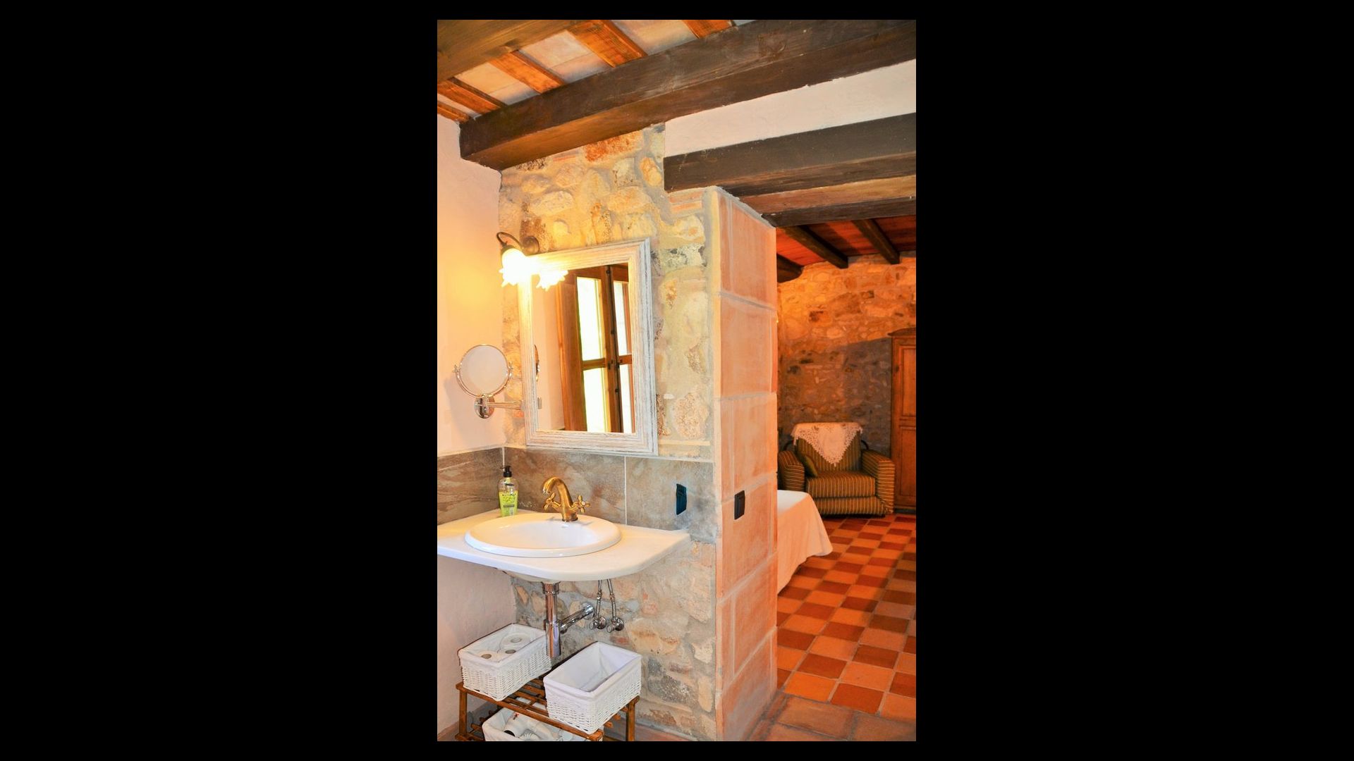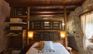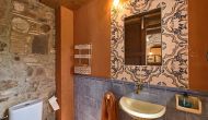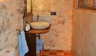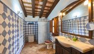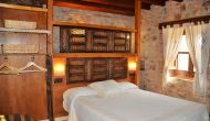 Au premier étage, il y a un petit coin salon et 4 chambres modernes, toutes avec salle de bains. Une chambre a un lit double et une salle de bain intégrée avec un demi mur, très joliment résolu. La deuxième chambre est très grande, avec deux petits lits doubles, donc elle peut accueillir de 2 + 2 personnes (enfants) et une salle de bain en suite.