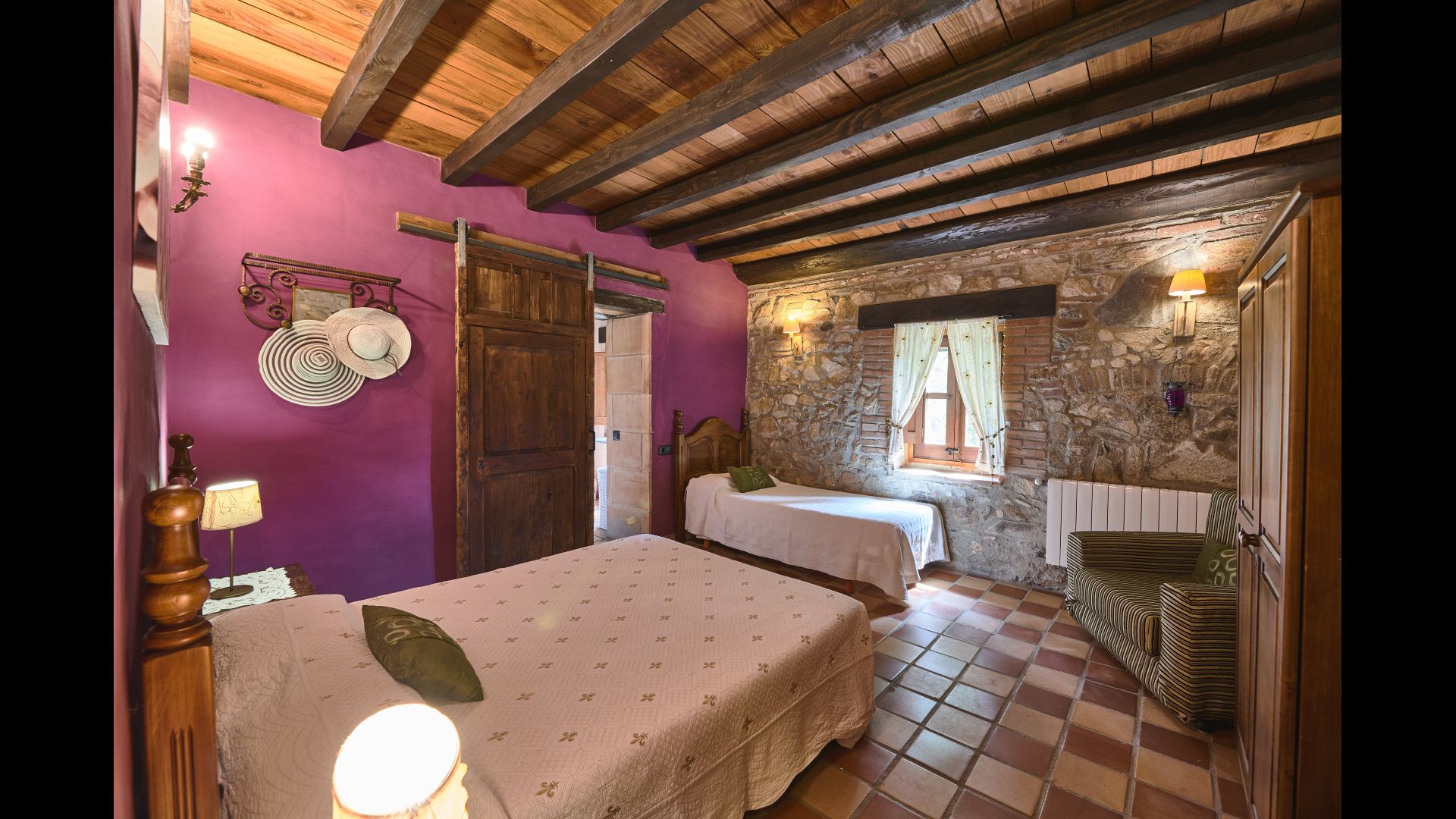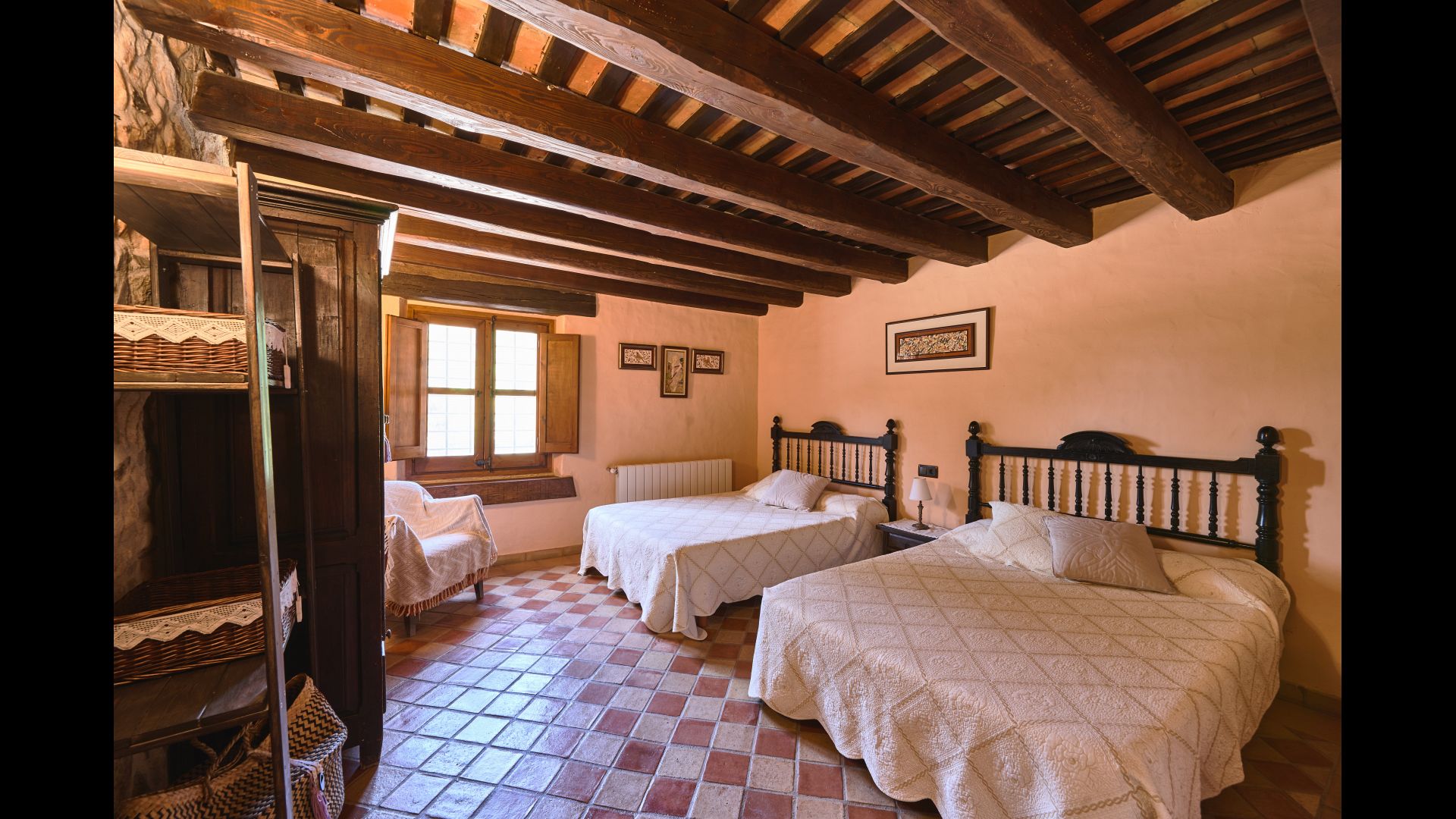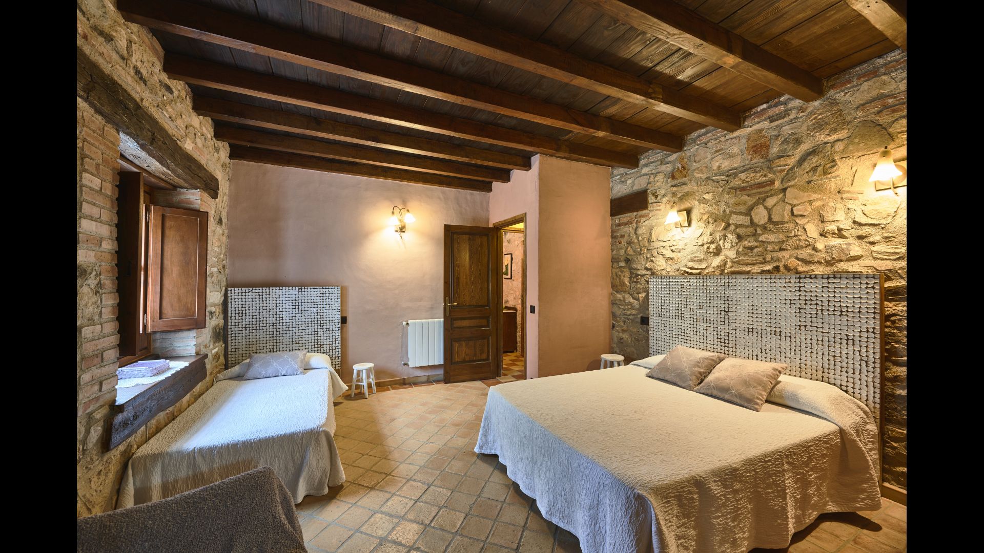 La troisième chambre peut être aménagée en chambre double ou en chambre lits jumeaux et dispose d'une très grande salle de bains privative. La quatrième chambre est une chambre triple avec un lit double et un lit simple et une salle de bain privée.