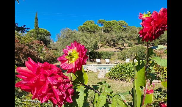 Le jardin regorge de plantes méditerranéennes, de fleurs colorées et d’arbres fruitiers, dont un citronnier qui ajoute une touche fraîche et naturelle à l’atmosphère.