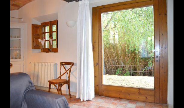 Le charmant appartement de vacances est situé face au grand jardin. La maison aux murs de pierre dégage une atmosphère très authentique et rustique. L'appartement dispose d'une terrasse où vous pourrez savourer vos repas faits maison lors des chaudes soirées catalanes.