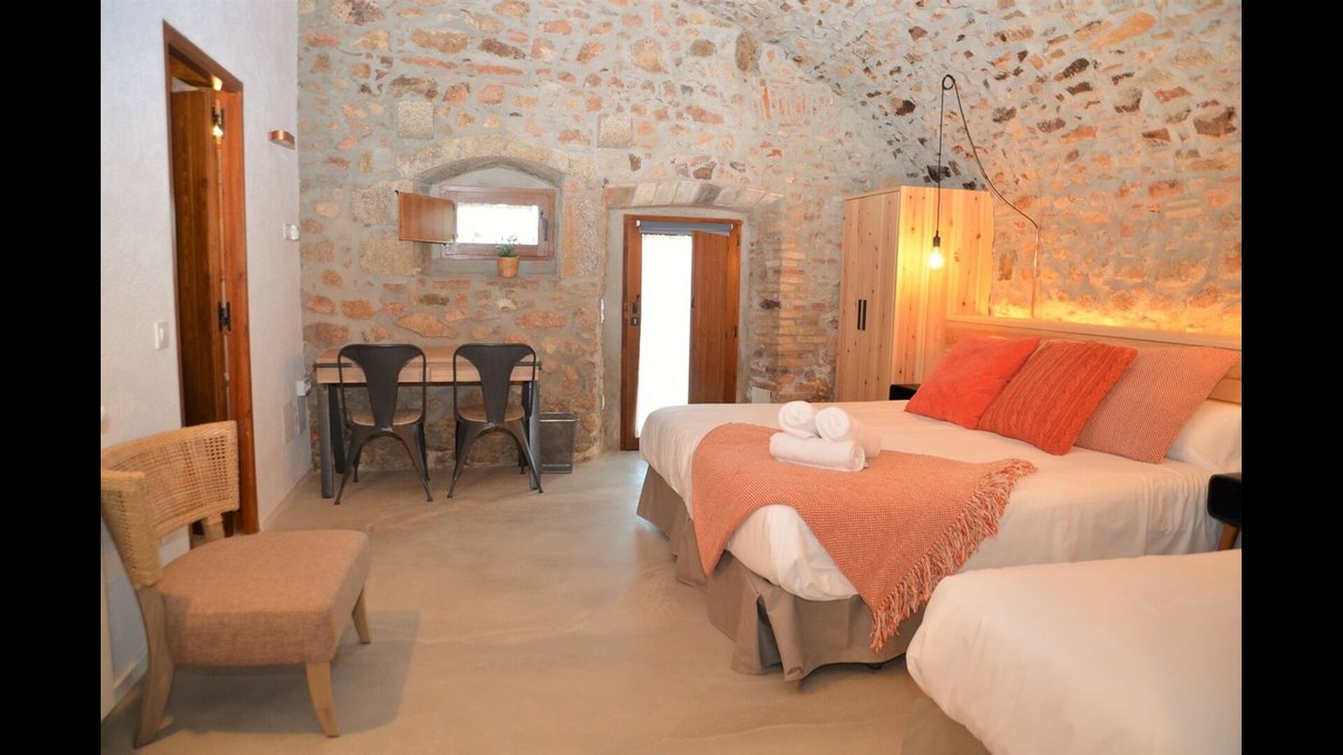 Ce que nous appelons le château était à l’origine un lieu d’intérêt religieux. Le bâtiment se compose d'un monastère et d'une église qui date de 1690 et qui a été activement utilisé par les moines jusqu'en 1822. Des parties du monastère et de l'église ont été reconstruites dans les années 1800. Le bâtiment bien préservé contient une quantité incroyable d’histoire, ce qui est également perceptible lorsque vous vous promenez sur le terrain. La maison de vacances est maintenant décorée avec un mobilier et des outils modernes. Avec son extérieur ancien, elle allie parfaitement l'ancien et le moderne et le nouveau et le moderne. La grande chose à propos de cela est que vous obtenez une expérience culturelle excitante sans perdre l'accès à de nouveaux appareils intelligents tels que le WiFi-Internet. Les chambres de La Monastir de Santes ont été spécialement conçues par un jeune designer.