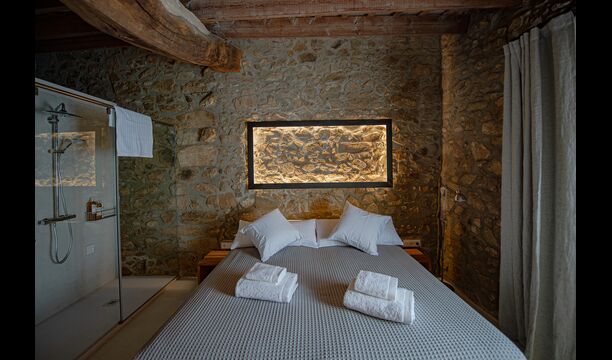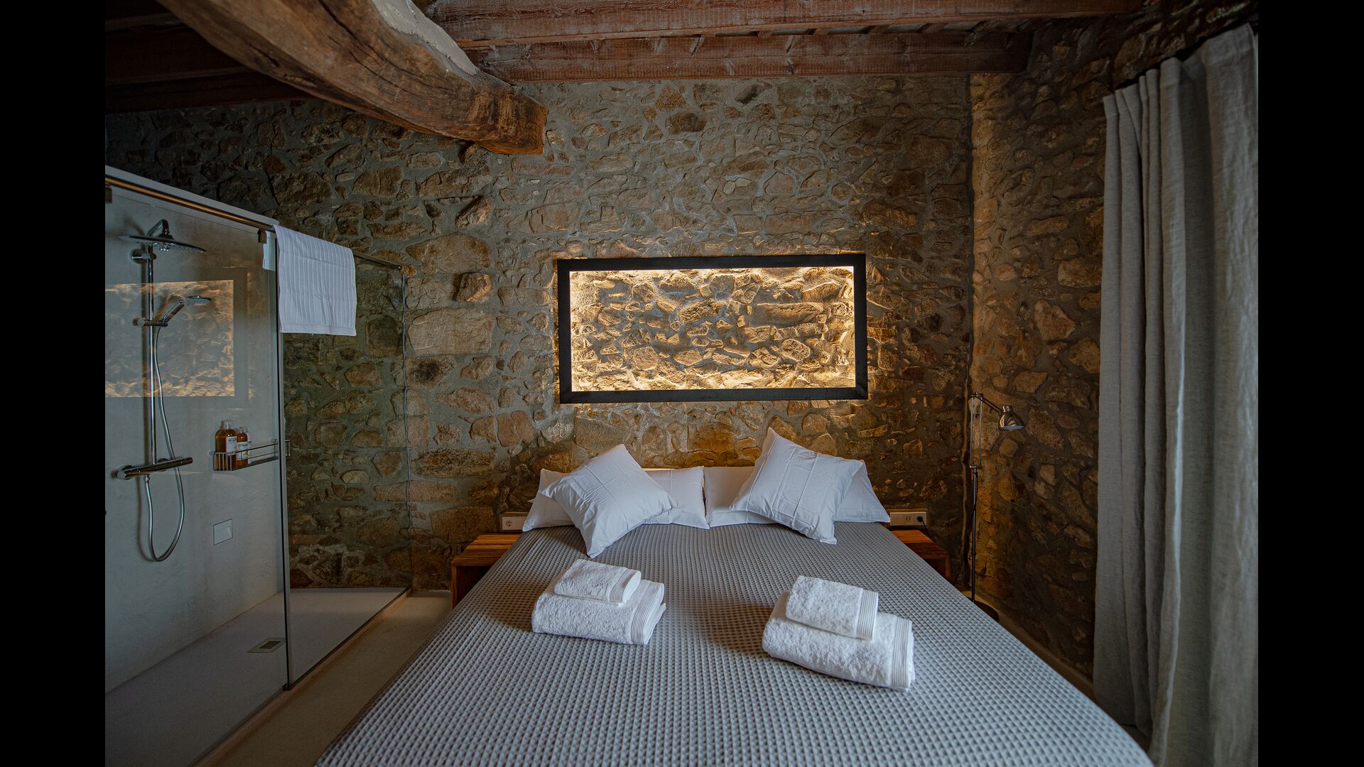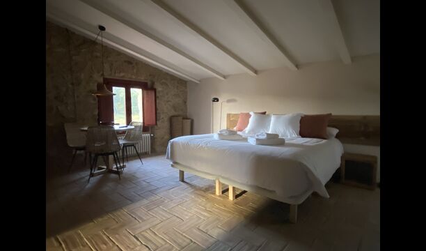 El Mas se compose de quatre maisons ou appartements rustiques dotés d'un confort moderne, qui offrent sept chambres de charme spacieuses avec chauffage à biomasse, climatisation, kits de salle de bain écologiques, chaussons et serviettes de qualité. Les deux bâtiments principaux disposent d'une cuisine entièrement équipée avec un accès facile au jardin pour manger à l'extérieur.