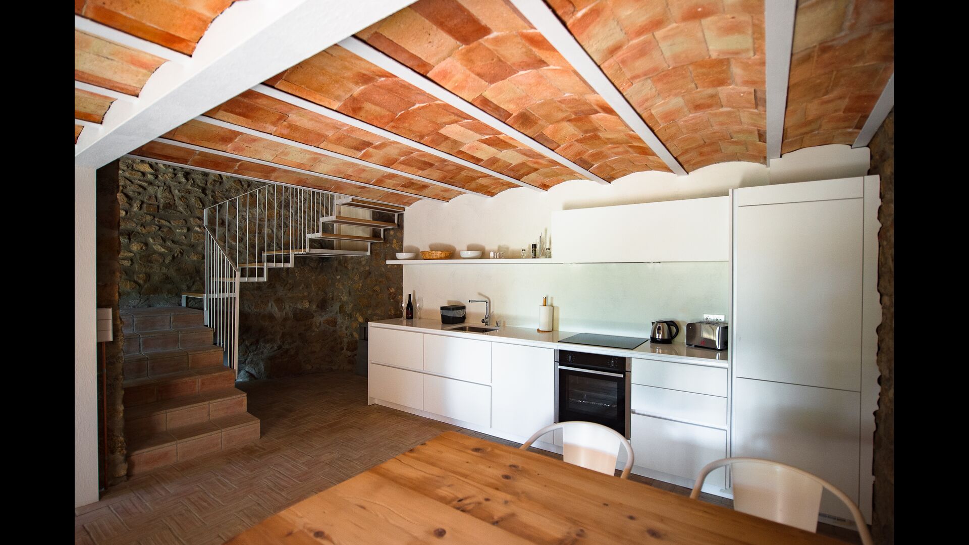 Le premier des bâtiments comprend l'espace commun au rez-de-chaussée, avec cuisine, salon et salle à manger pour les grands groupes, au cas où vous préféreriez manger à l'intérieur. Au premier étage, vous trouverez «l'appartement Migjorn».
