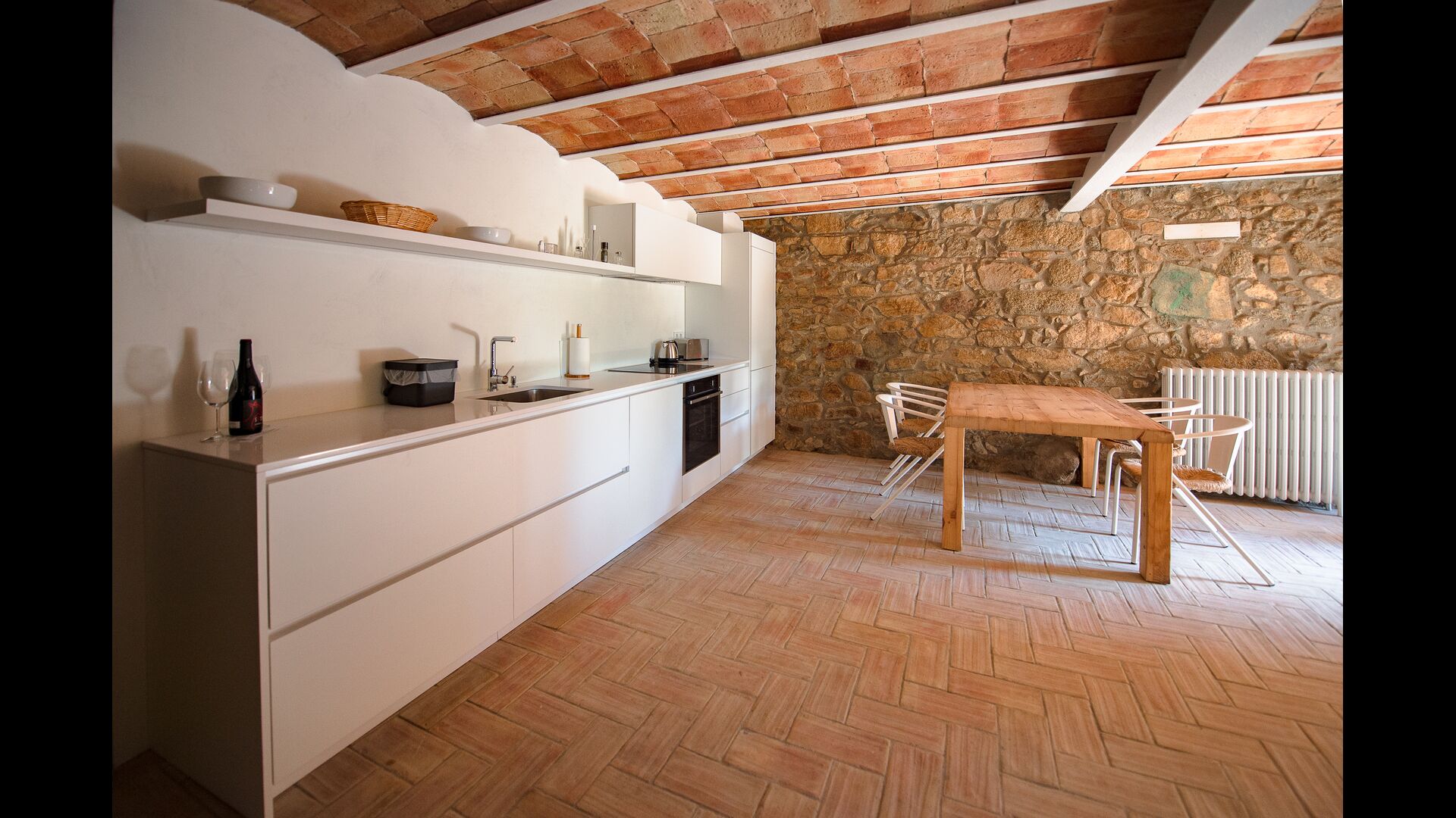 Cette pierre de granit «Mas» est devenu un hébergement rural durable, avec un jardin biologique, une cuisine maison et une petite cave pour déguster l'Empordà; vins. Nous aimons aussi emmener les plus petits cueillir les légumes du jardin.