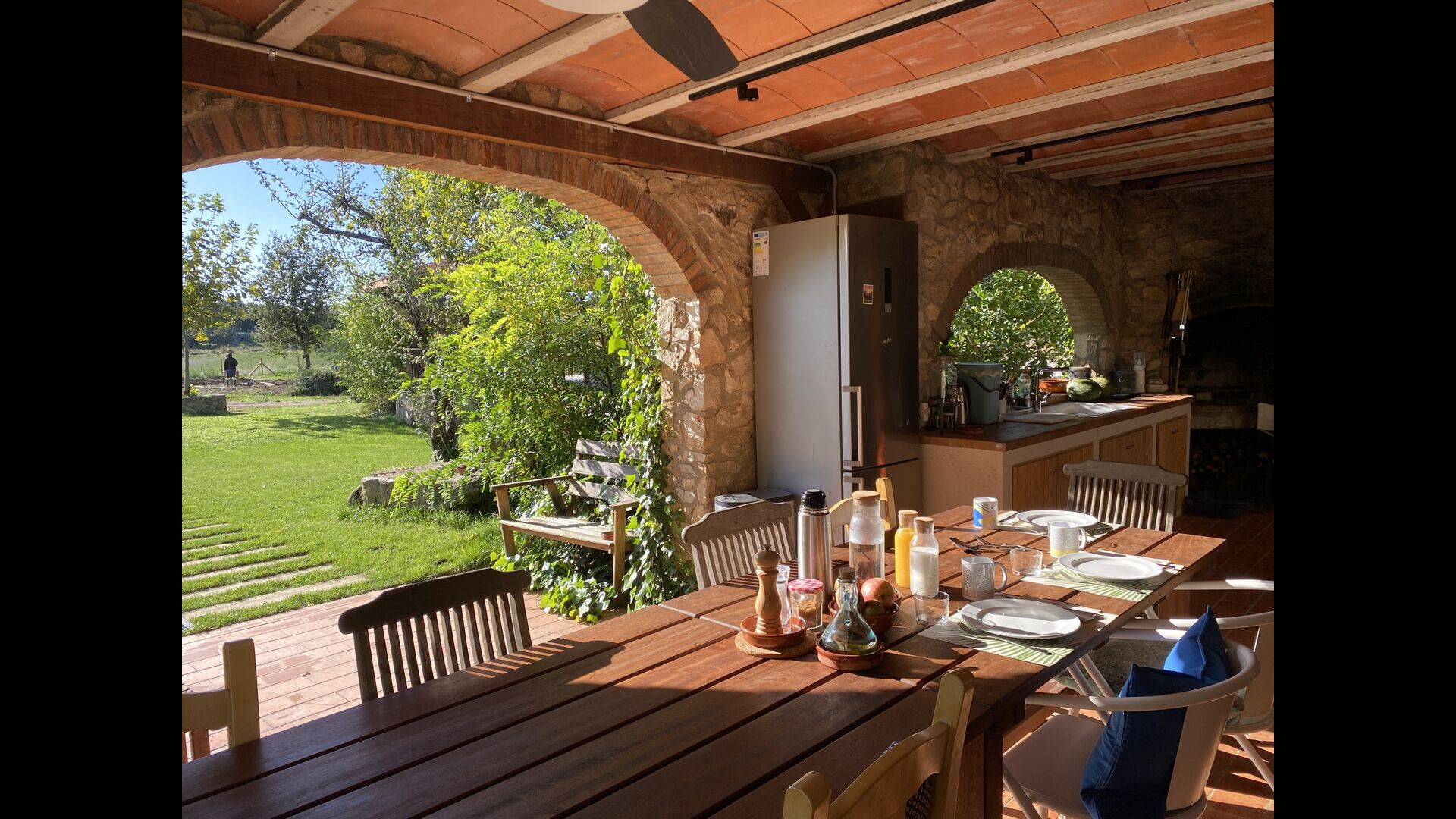Dans le jardin, il y a de nombreux espaces et coins différents,deux grands porches avec barbecue et aussi un magnifique belvédère en pierre et bois, le tout au bord de la piscine et du jacuzzi, tous deux d'eau salée. Vous trouverez également des équipements sportifs tels que des vélos, des raquettes, un filet, des ballons, un but et des quilles traditionnelles catalanes. Il convient également de mentionner la multitude d'itinéraires de randonnées pédestres, cyclistes ou VTT qui entourent le Mas.