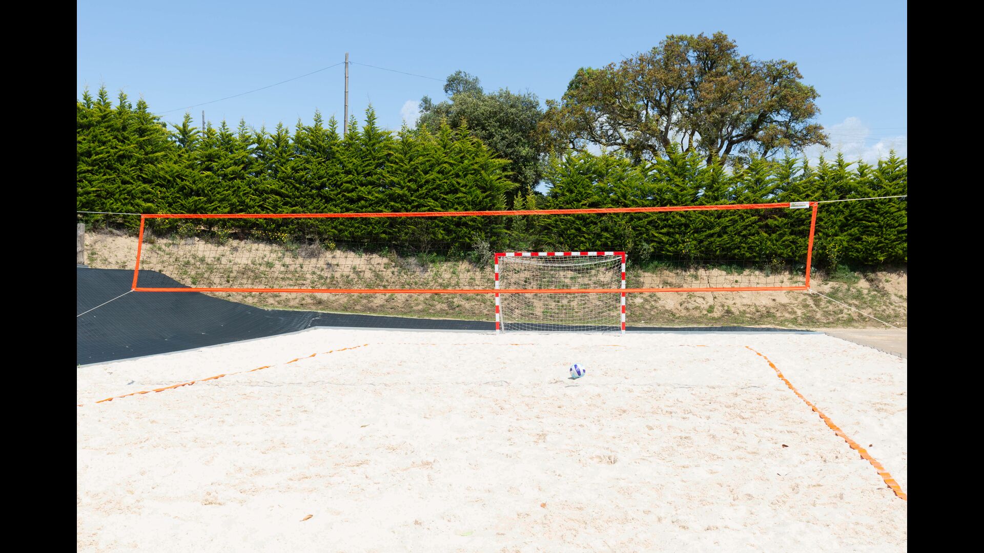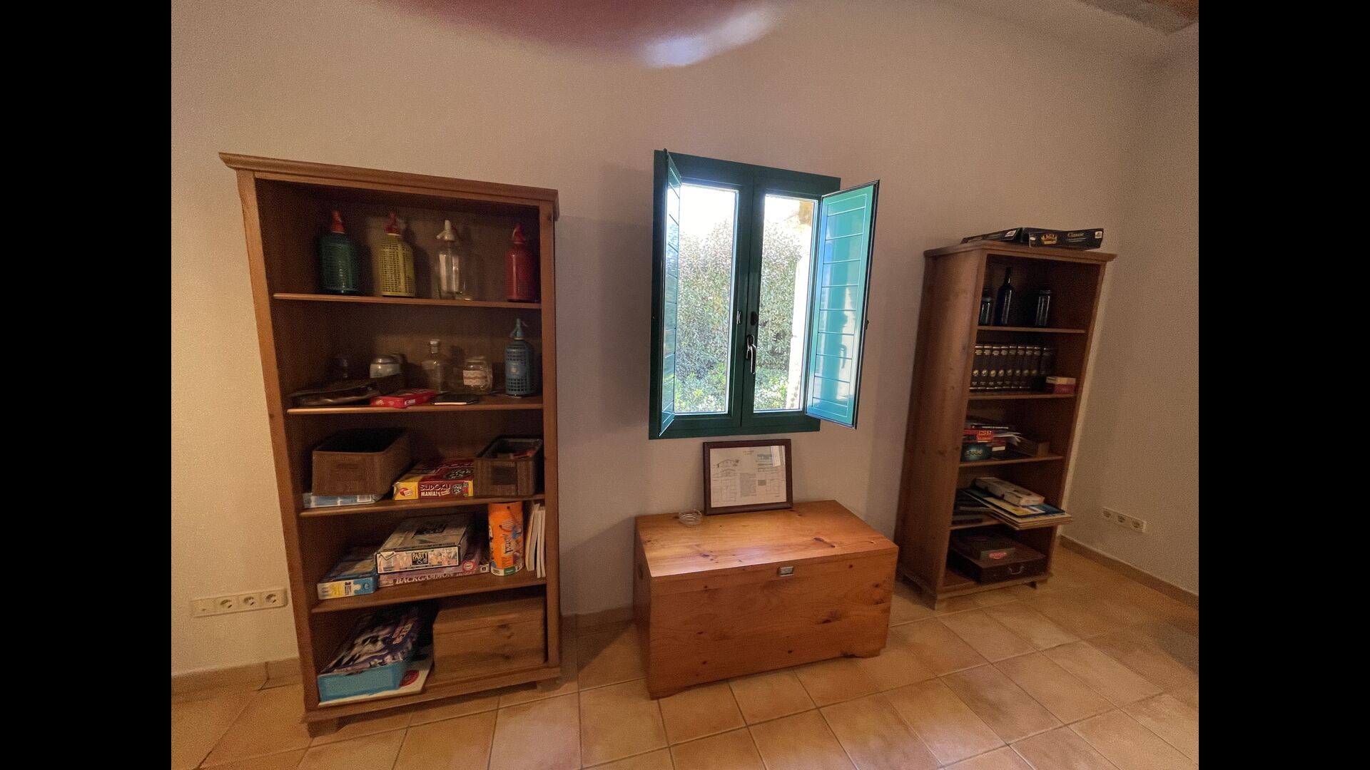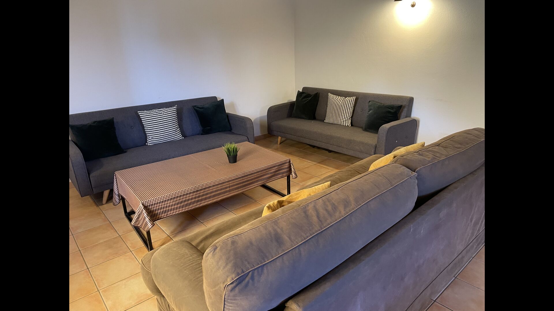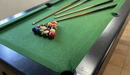 Le grand salon comprend une table à manger et 3 canapés. Il y a aussi une TV. Il y a aussi la salle de jeux, contenant un baby-foot, des jeux de fléchettes et un billard, et dans le jardin, vous trouverez également un configuration de tennis de table. Beaucoup de choses pour garder les enfants - et adultes - divertis ! Également au premier étage, vous trouverez 2 chambres - les deux sont des chambres doubles.