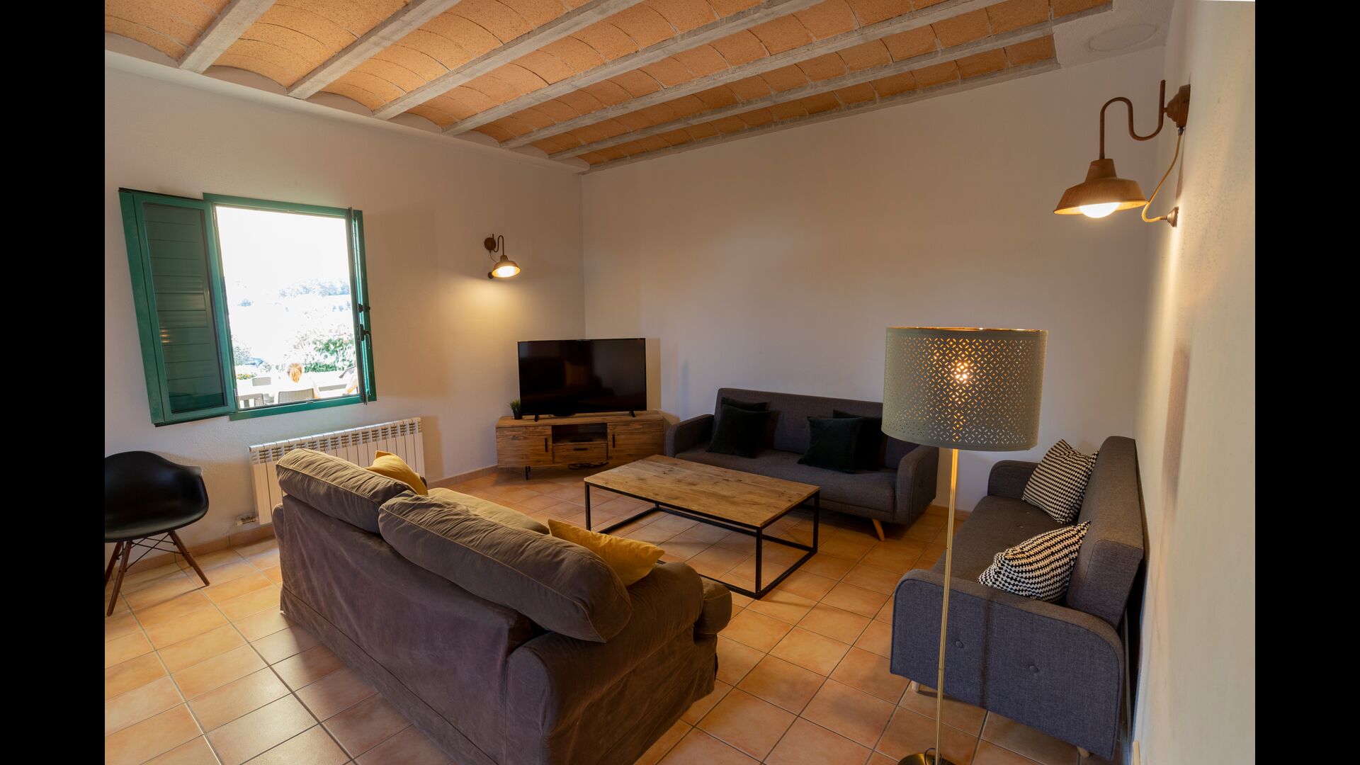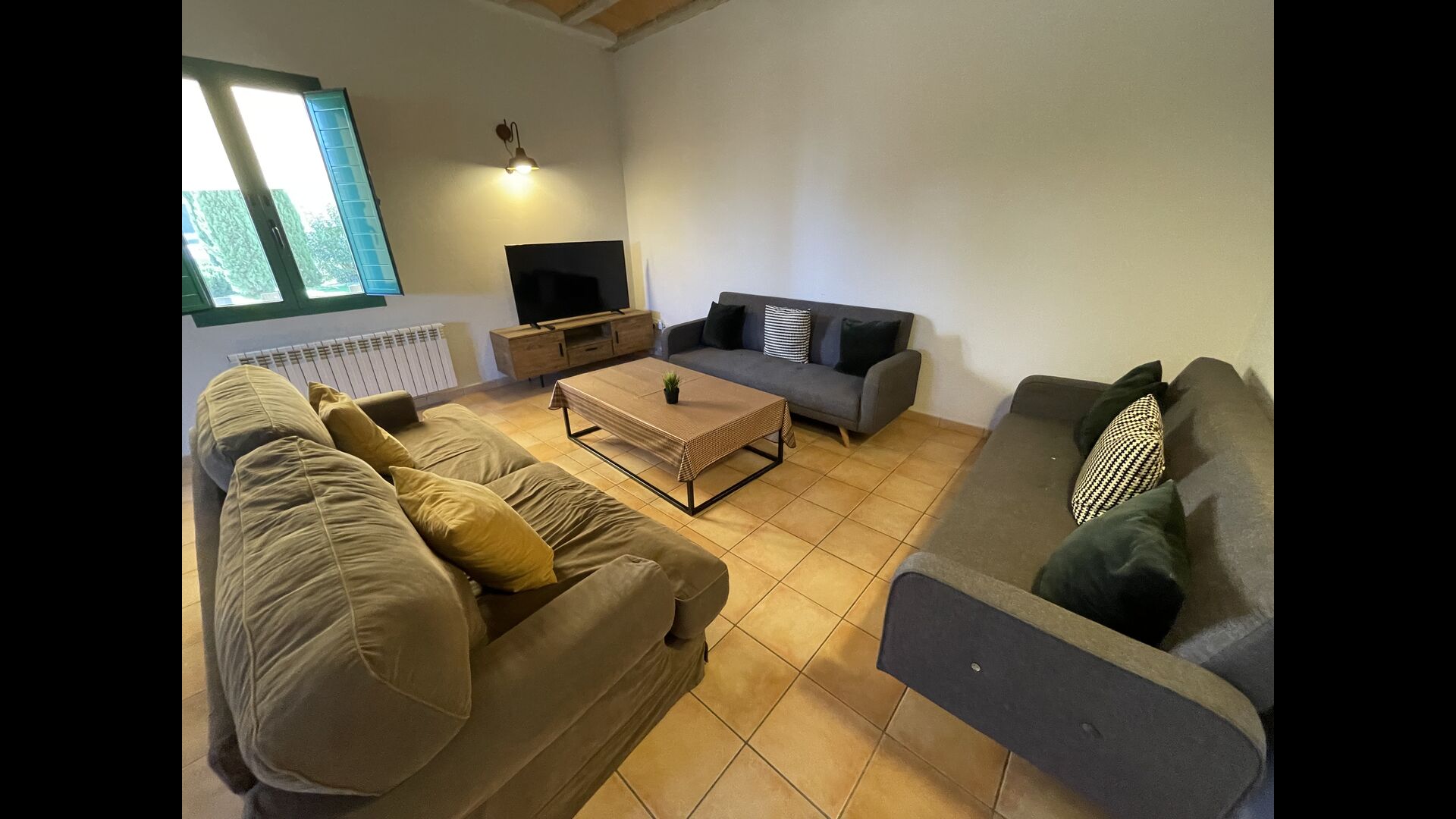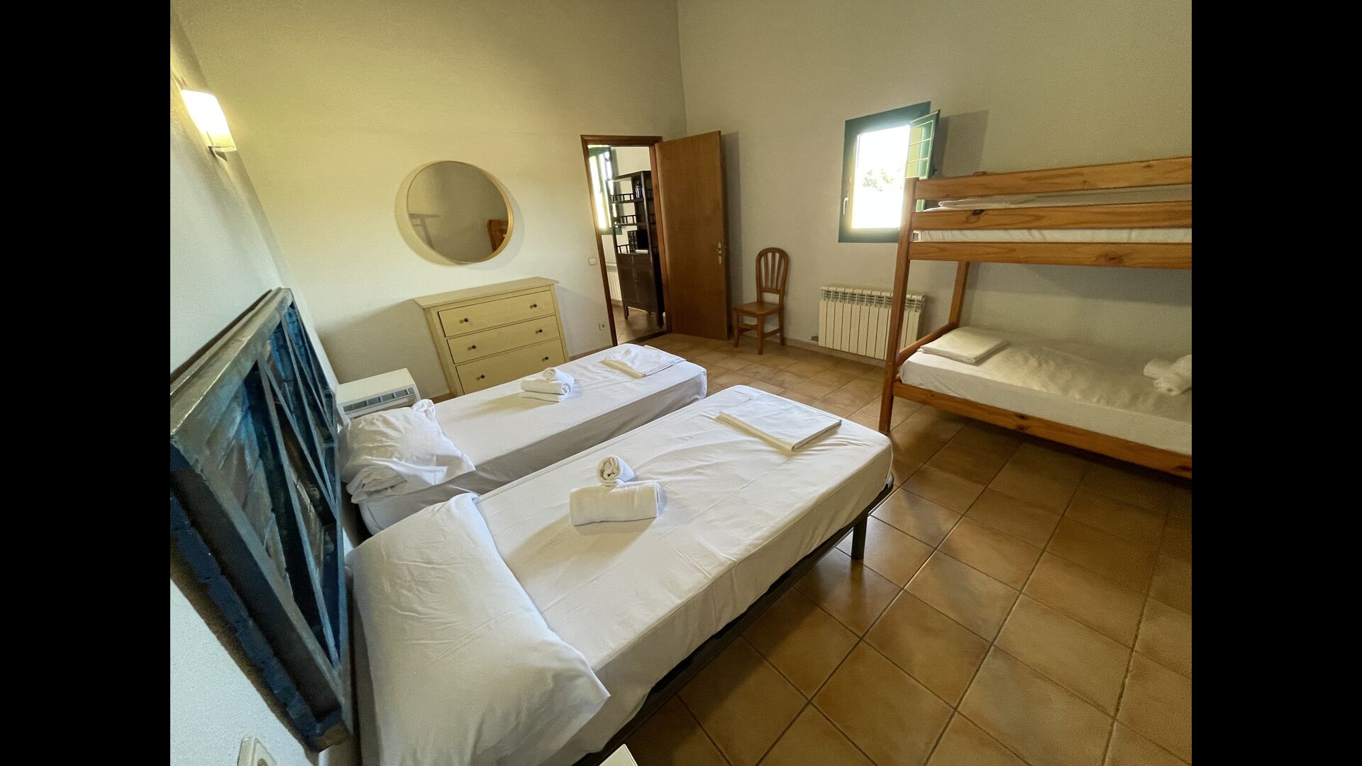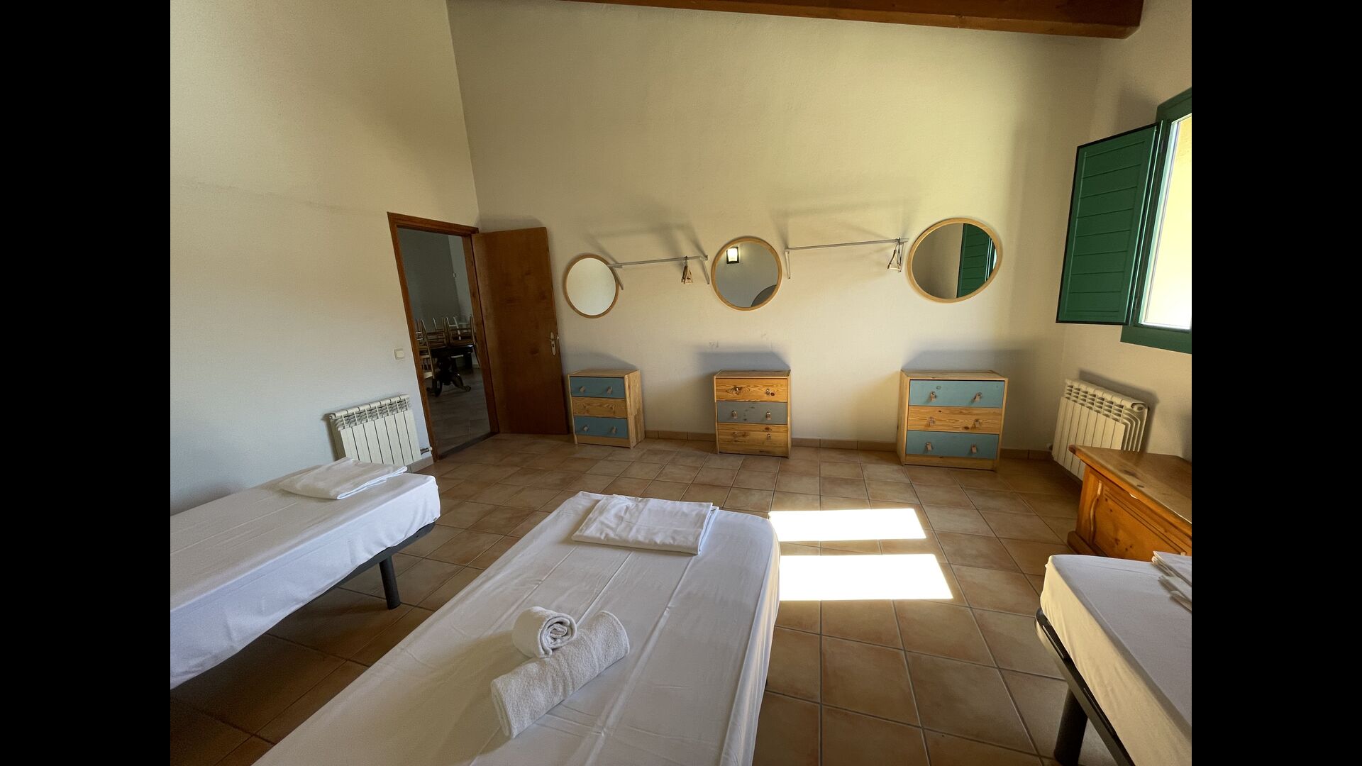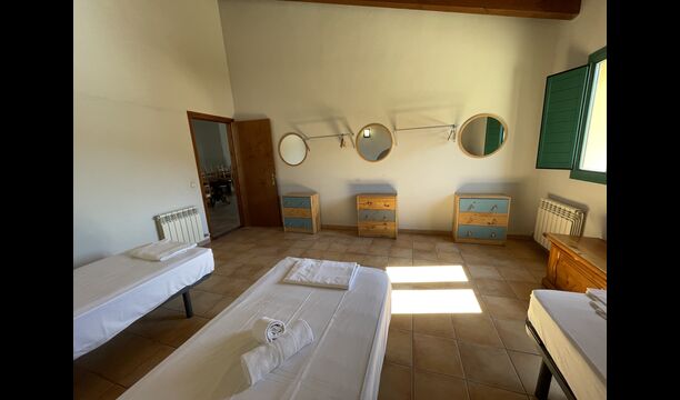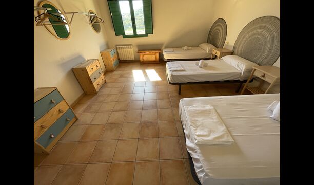 Les salles de bains sont toujours des salles de bains "style camping". Il y en a 3 au total, deux d'entre eux avec 4 cabines de toilettes, 4 cabines de douche et 4 lavabos et une salle de bain avec 3 au lieu de 4 des équipements susmentionnés, vous aurez donc beaucoup des sanitaires si vous trouvez l'agencement agréable. Si vous recherchez une maison spacieuse pour en faire votre base de départ d'où vous pourrez explorer facilement et accéder</strong > les merveilles de la Catalogne, cette maison pourrait être faite pour vous !