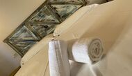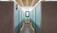 Vous trouverez également deux des trois salles de bains. Les deux Les salles de bains disposent de 4 cabines de toilettes, de 4 cabines de douche et de 4 lavabos.