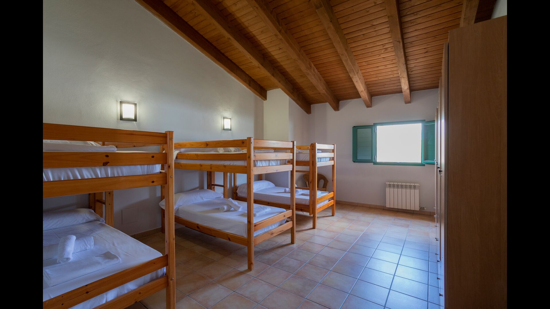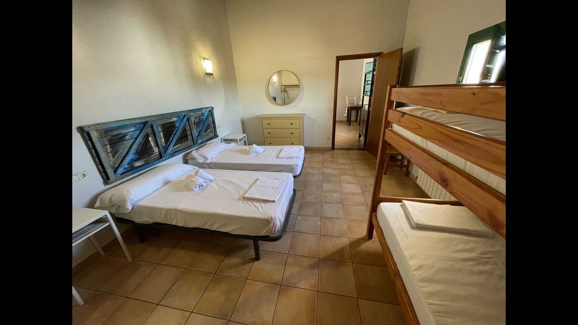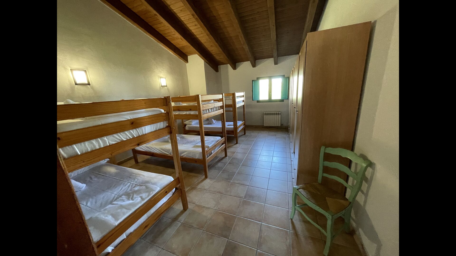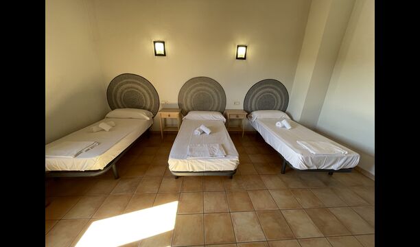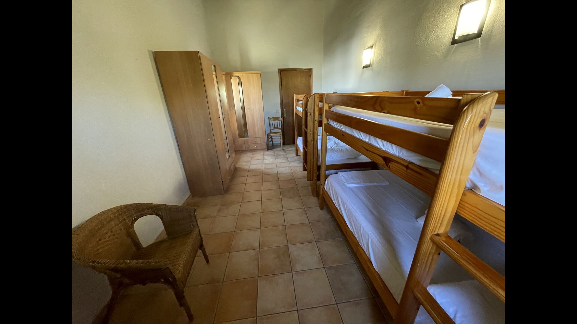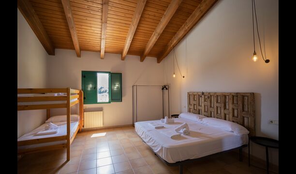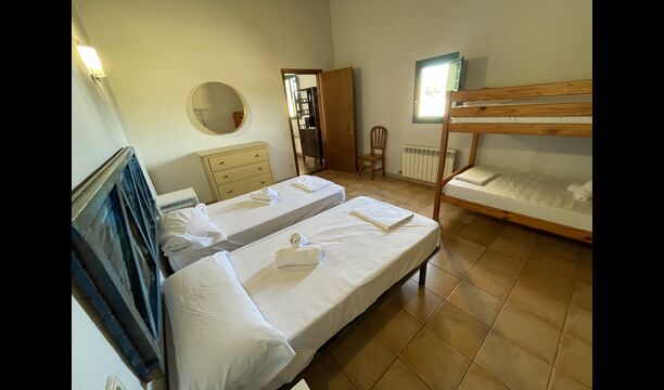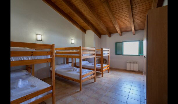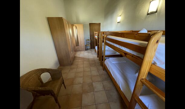 1 chambre double avec un lit simple supplémentaire (idéal pour les parents avec 1 petit enfant) ; 2 chambres avec 2 lits simples et 1 lit superposé chacune ; 1 chambre avec 3 lits simples, 1 chambre avec 2 lits superposés et 1 chambre strong> avec 3 lits superposés.