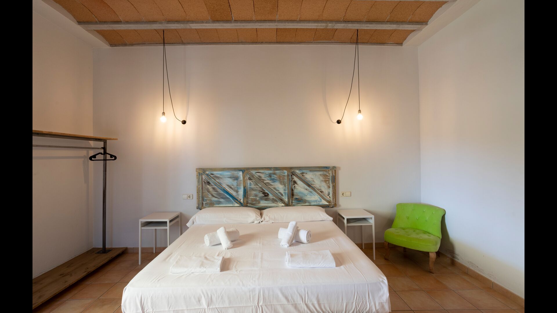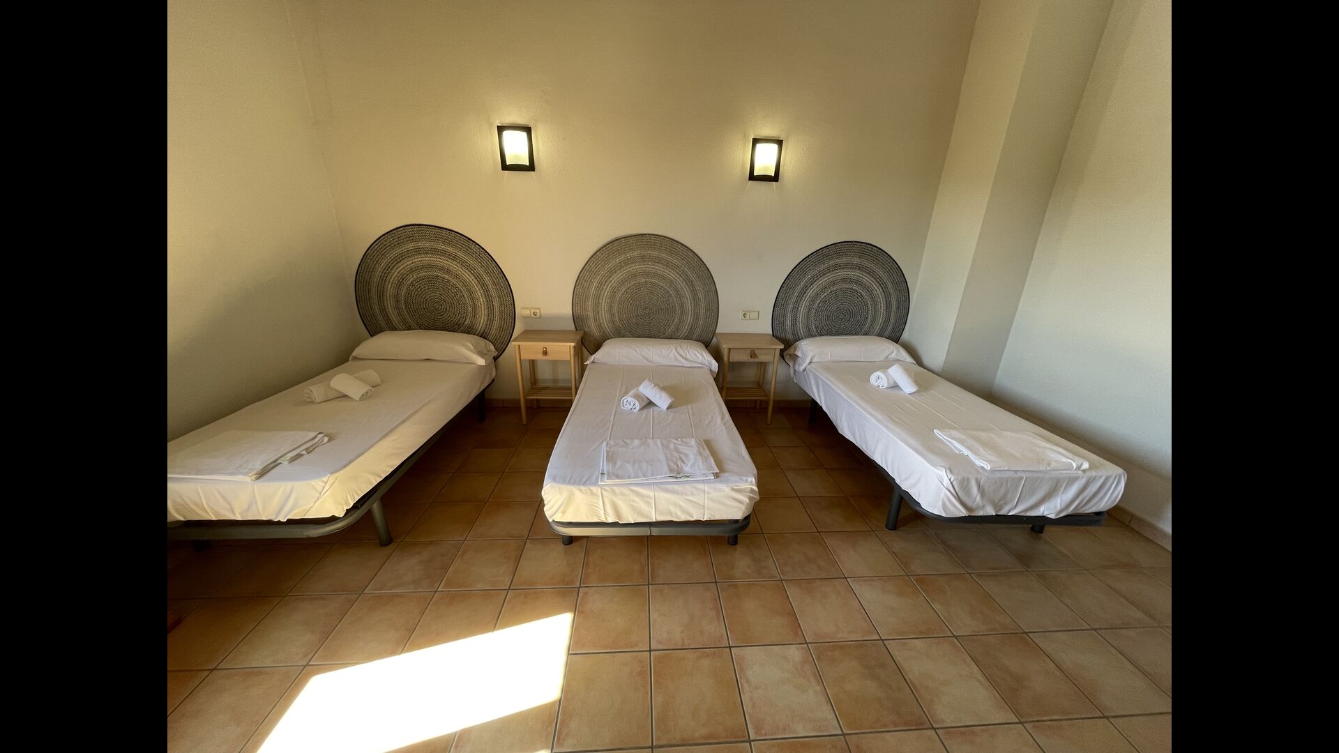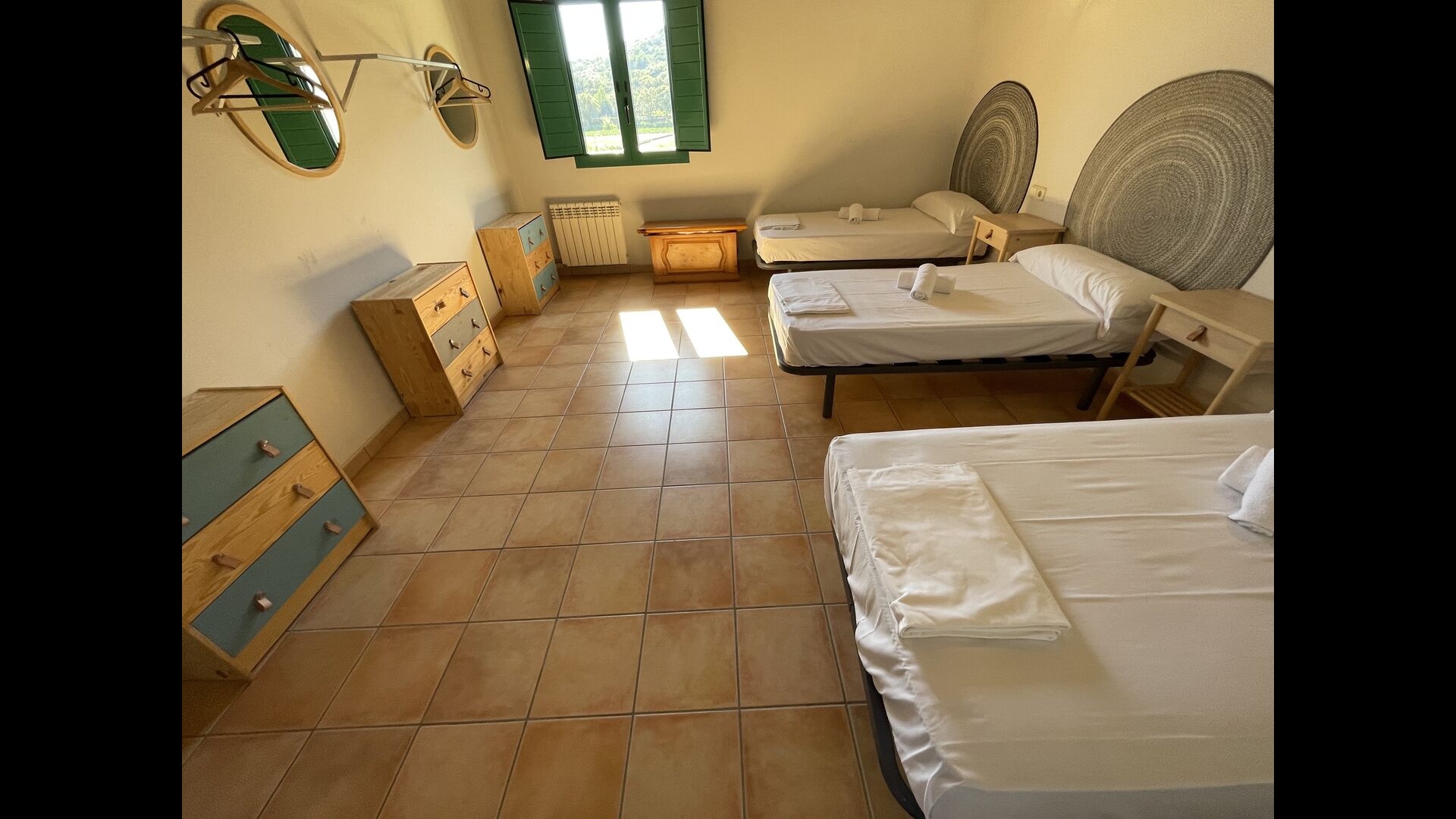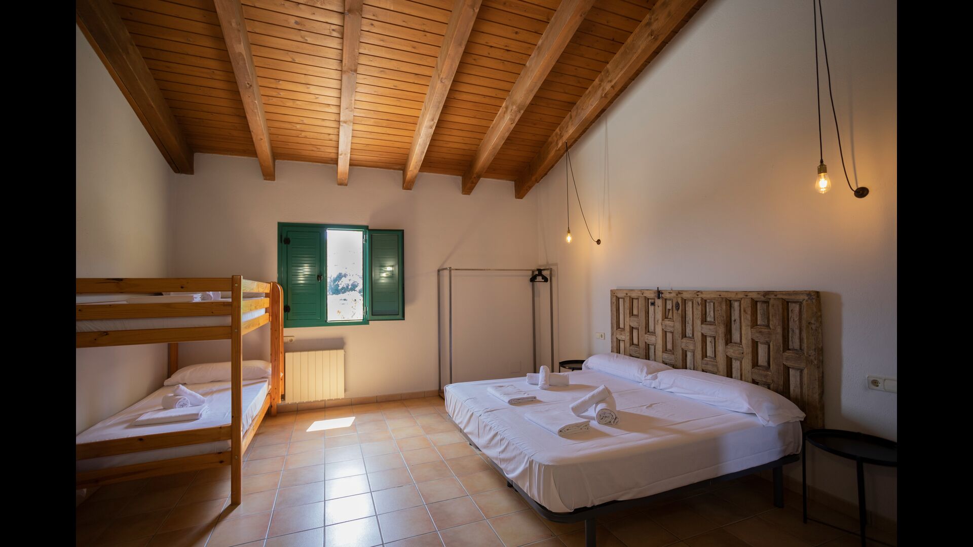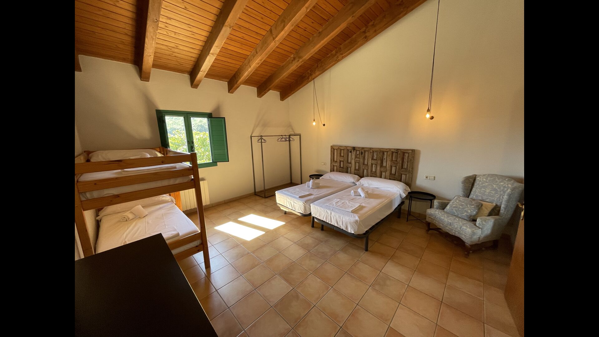 1 chambre double avec un lit simple supplémentaire (idéal pour les parents avec 1 petit enfant) ; 2 chambres avec 2 lits simples et 1 lit superposé chacune ; 1 chambre avec 3 lits simples, 1 chambre avec 2 lits superposés et 1 chambre strong> avec 3 lits superposés.
