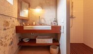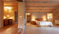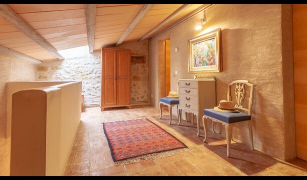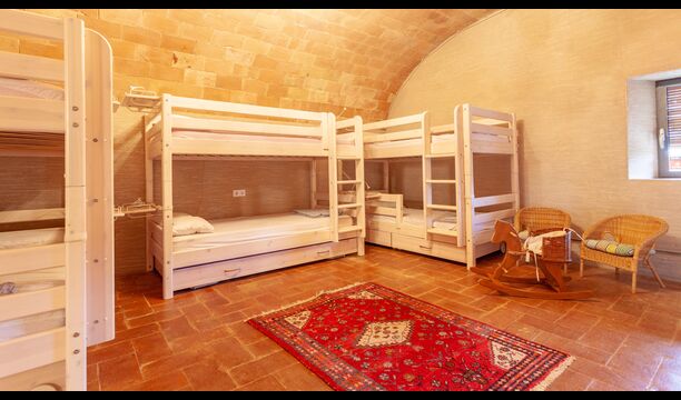 Cet étage comprend également cinq chambres : trois chambres doubles, une chambre avec deux lits simples et une chambre avec trois lits superposés pouvant accueillir jusqu’à six enfants, ainsi que deux salles de bains avec douche.