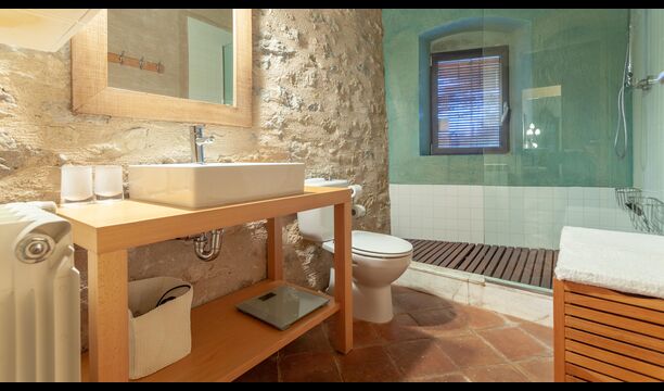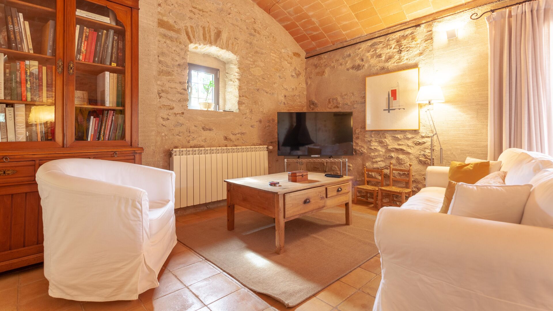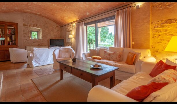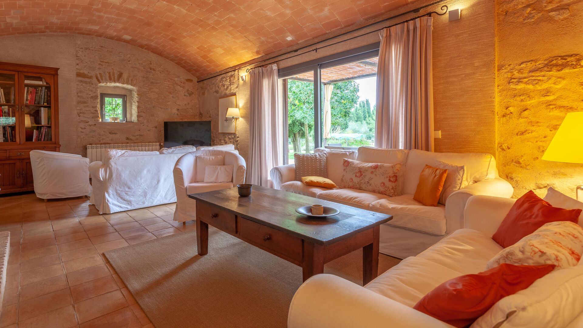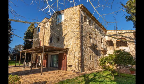 Masia catalane exclusive du XVIIe siècle, agrandie au XIXe siècle et entièrement restaurée au XXIe siècle, située dans la paisible campagne de Corçà, Baix Empordà, à seulement quelques minutes des plus belles plages et des villages pittoresques de la Costa Brava.