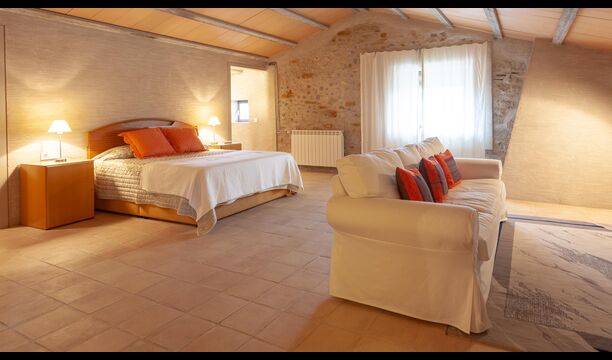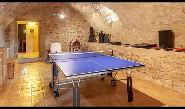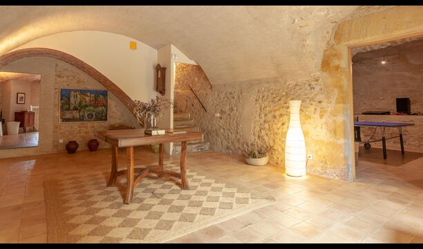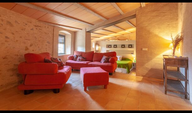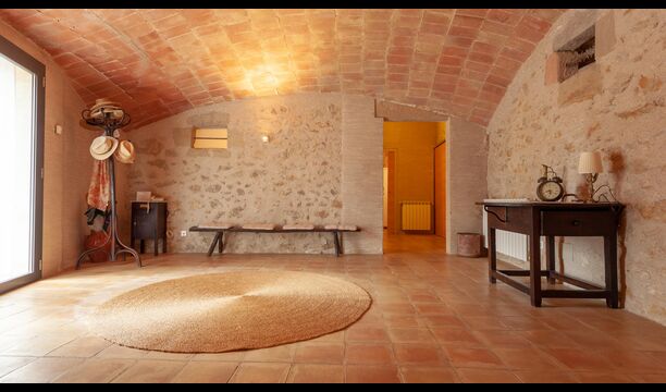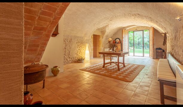 La masia offre de vastes espaces intérieurs répartis sur trois niveaux, combinant charme historique et confort contemporain.