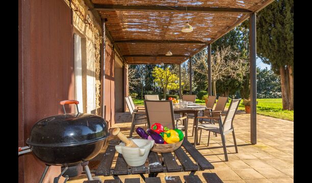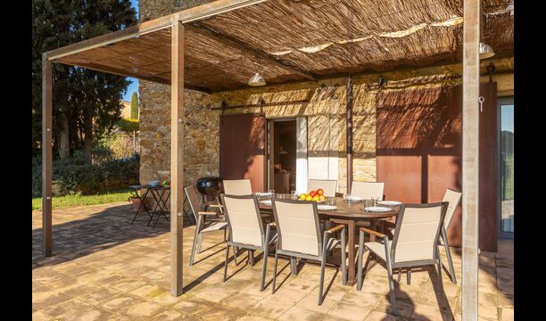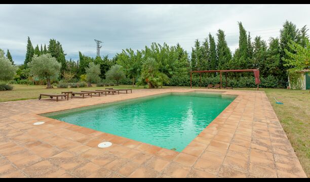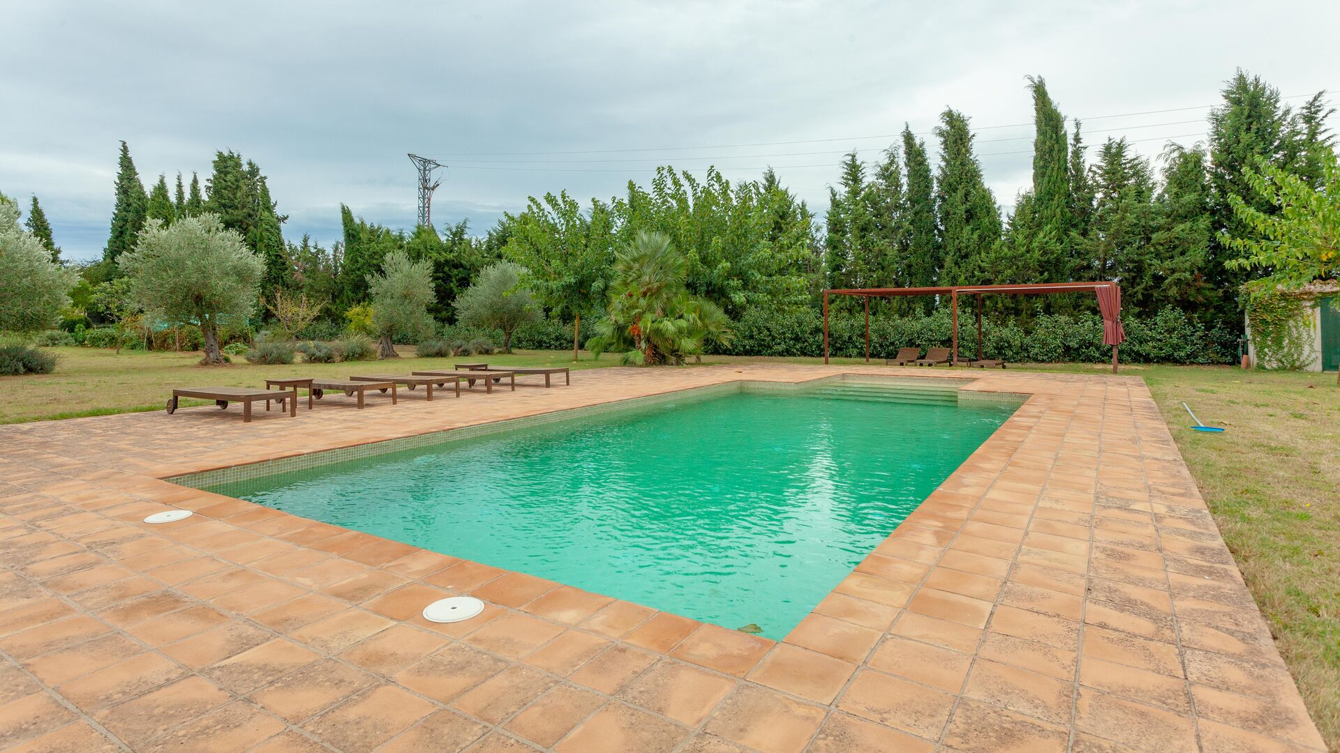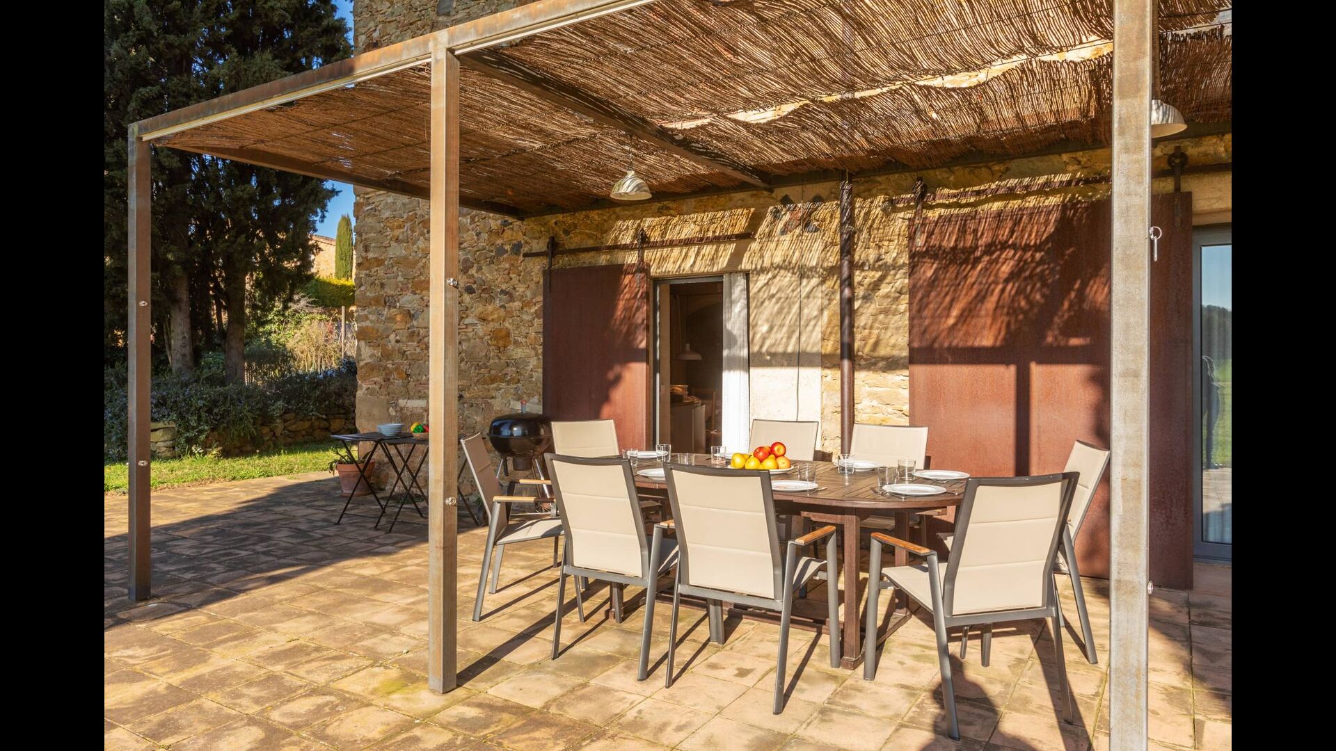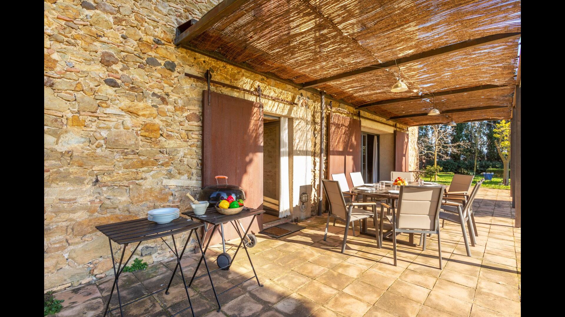 À l’extérieur, la piscine privée ainsi que plusieurs terrasses et porches offrent des espaces parfaits pour se détendre, dîner et profiter des vues ouvertes sur la campagne et de l’atmosphère paisible de l’Empordà.