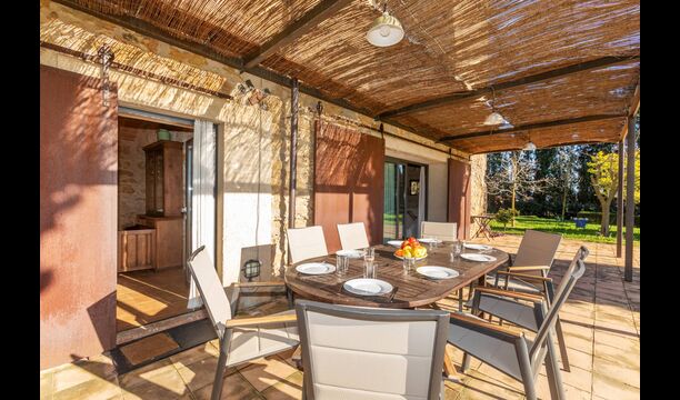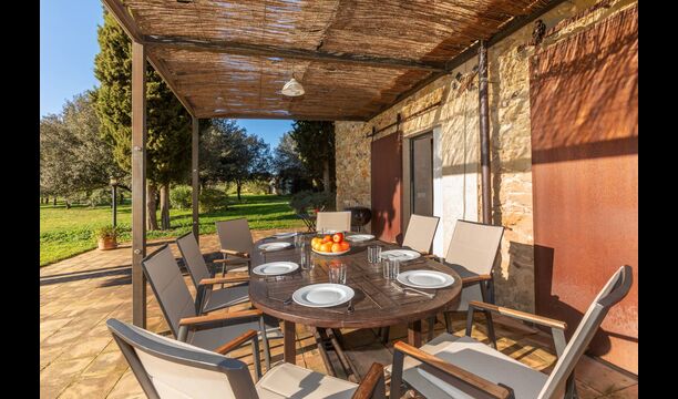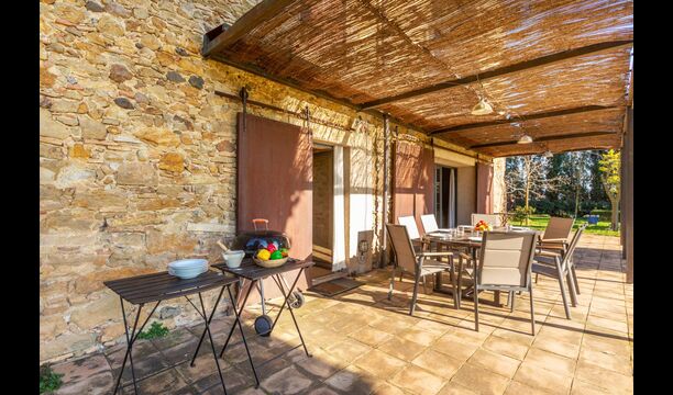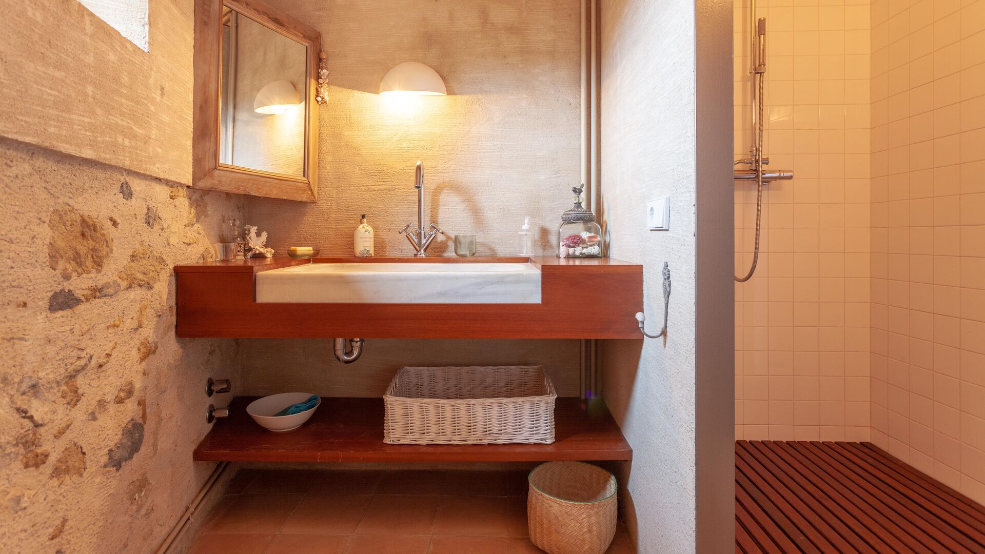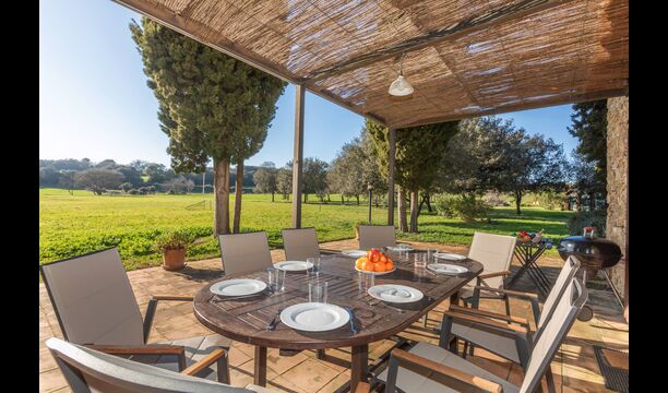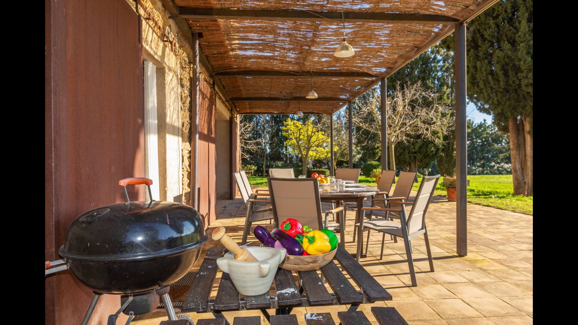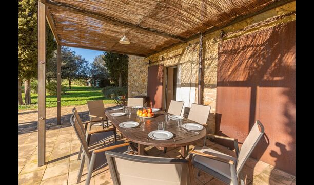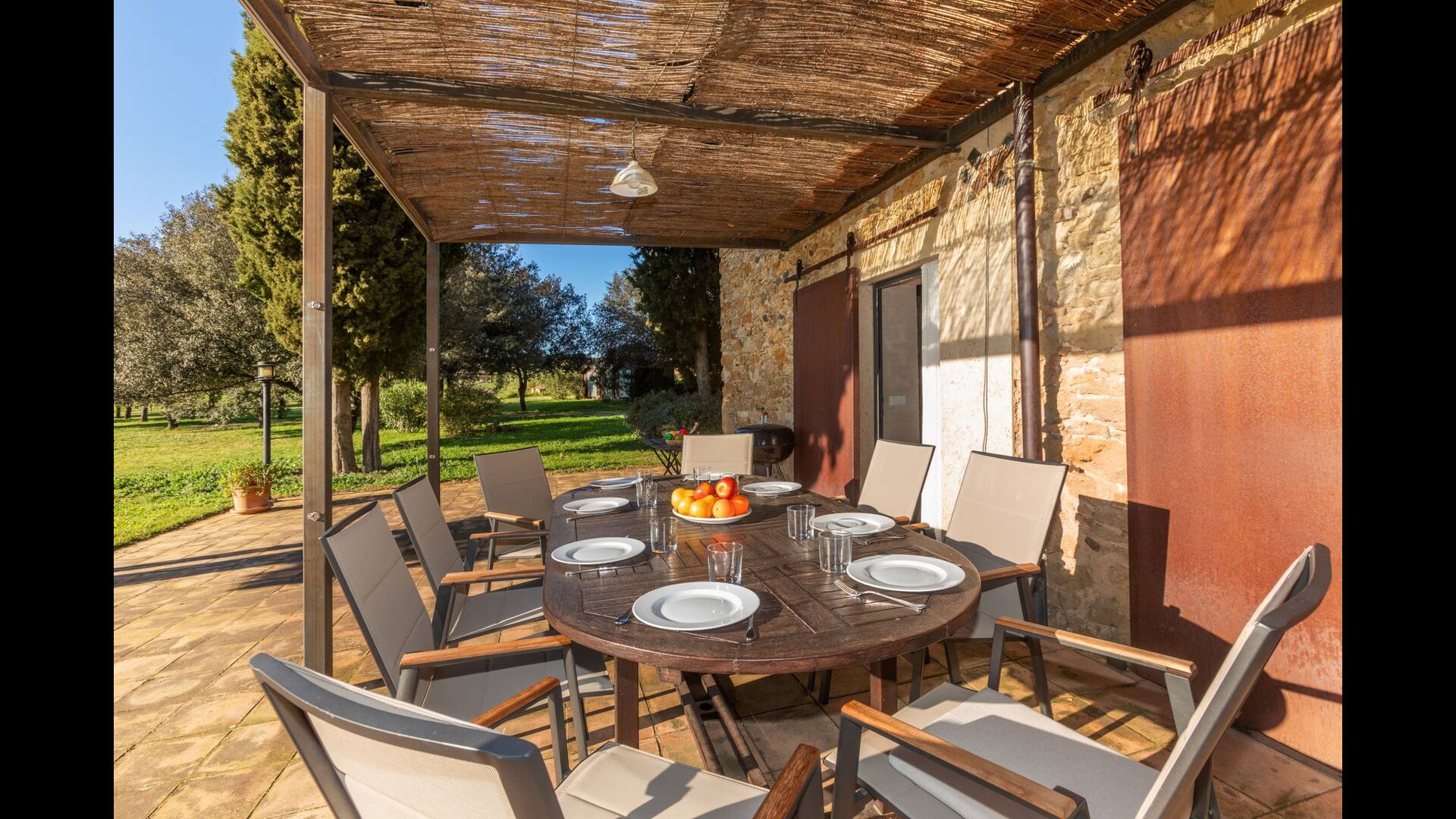 À l’extérieur, la piscine privée ainsi que plusieurs terrasses et porches offrent des espaces parfaits pour se détendre, dîner et profiter des vues ouvertes sur la campagne et de l’atmosphère paisible de l’Empordà.