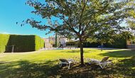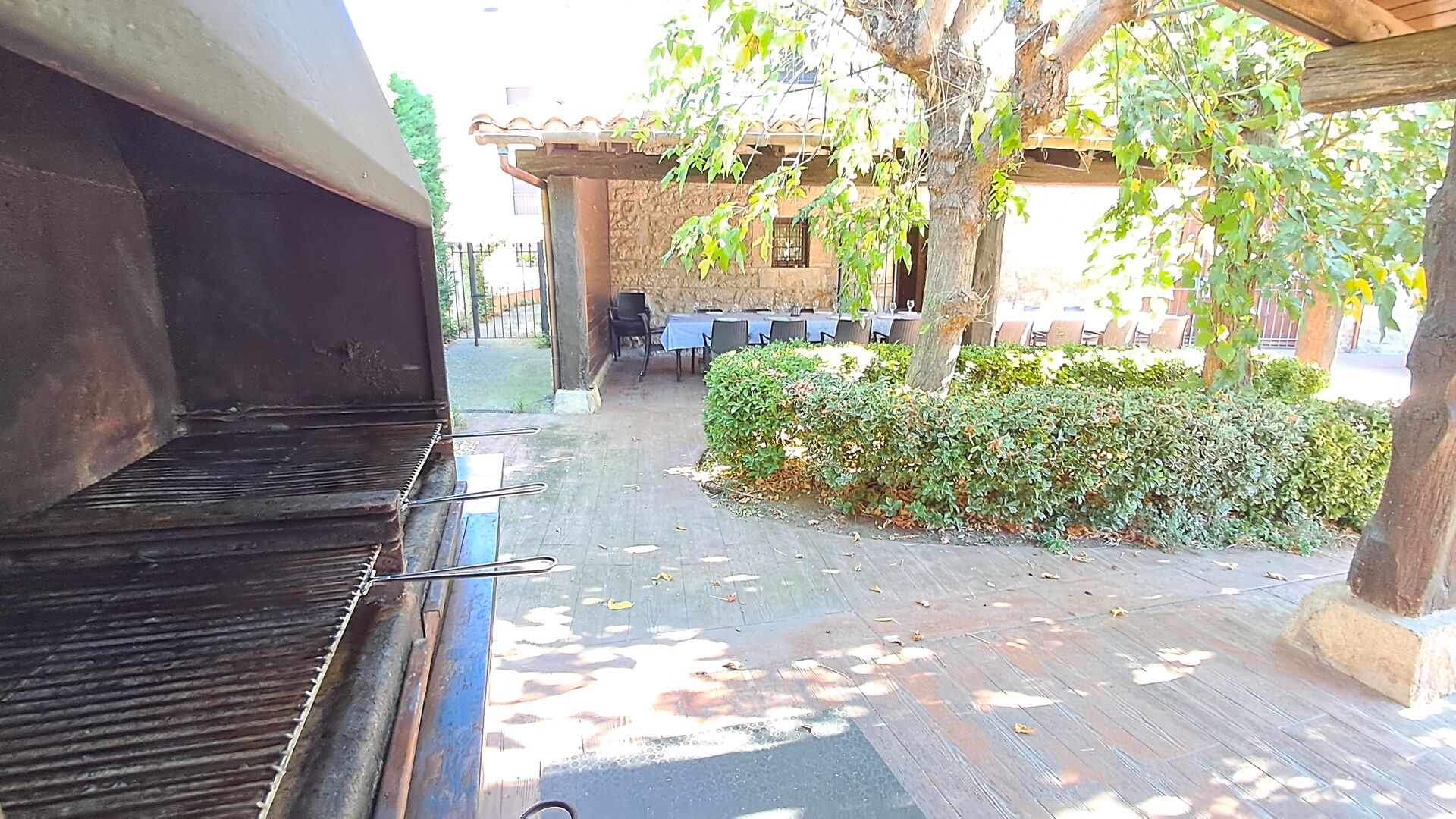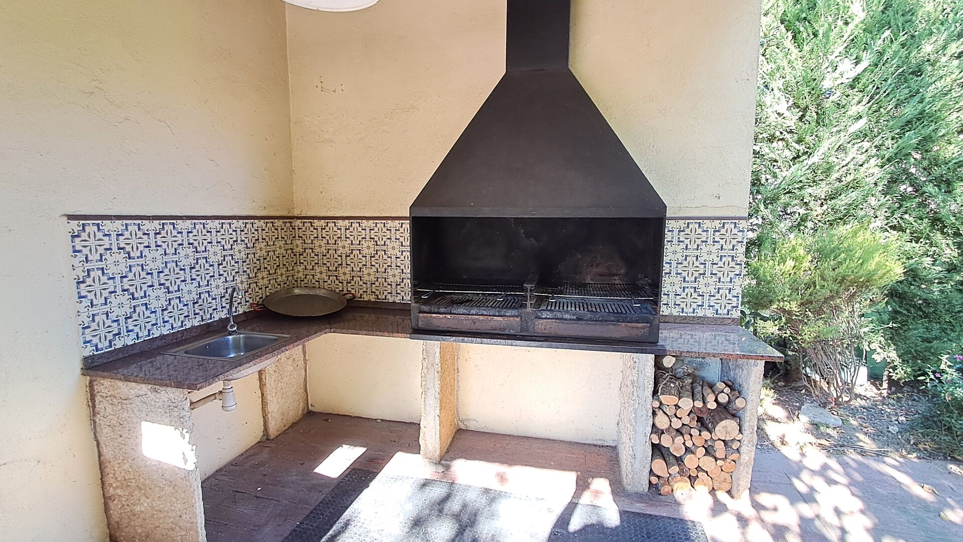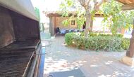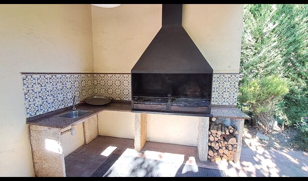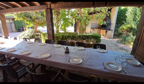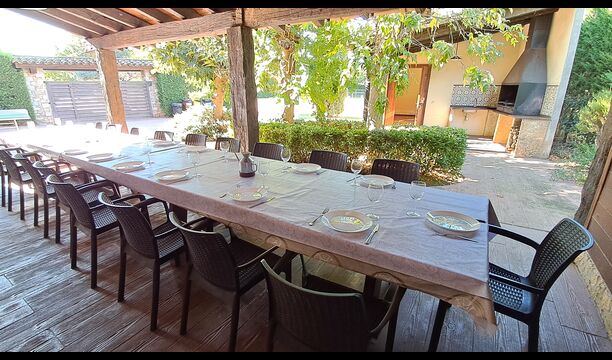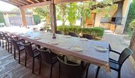Dans le jardin, juste à côté de la maison, il y a une immense terrasse couverte où se trouve un grand barbecue et une cuisine extérieure. À côté de cela, il y a une longue table à manger. Ici, vous pourrez cuisiner et savourer un dîner fait maison pendant les chaudes soirées.