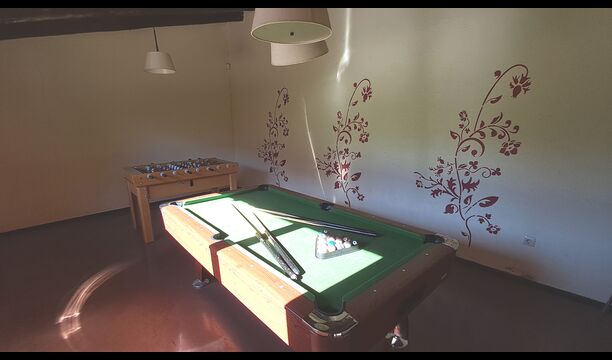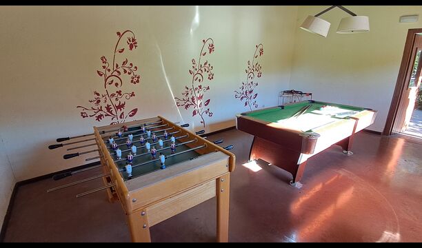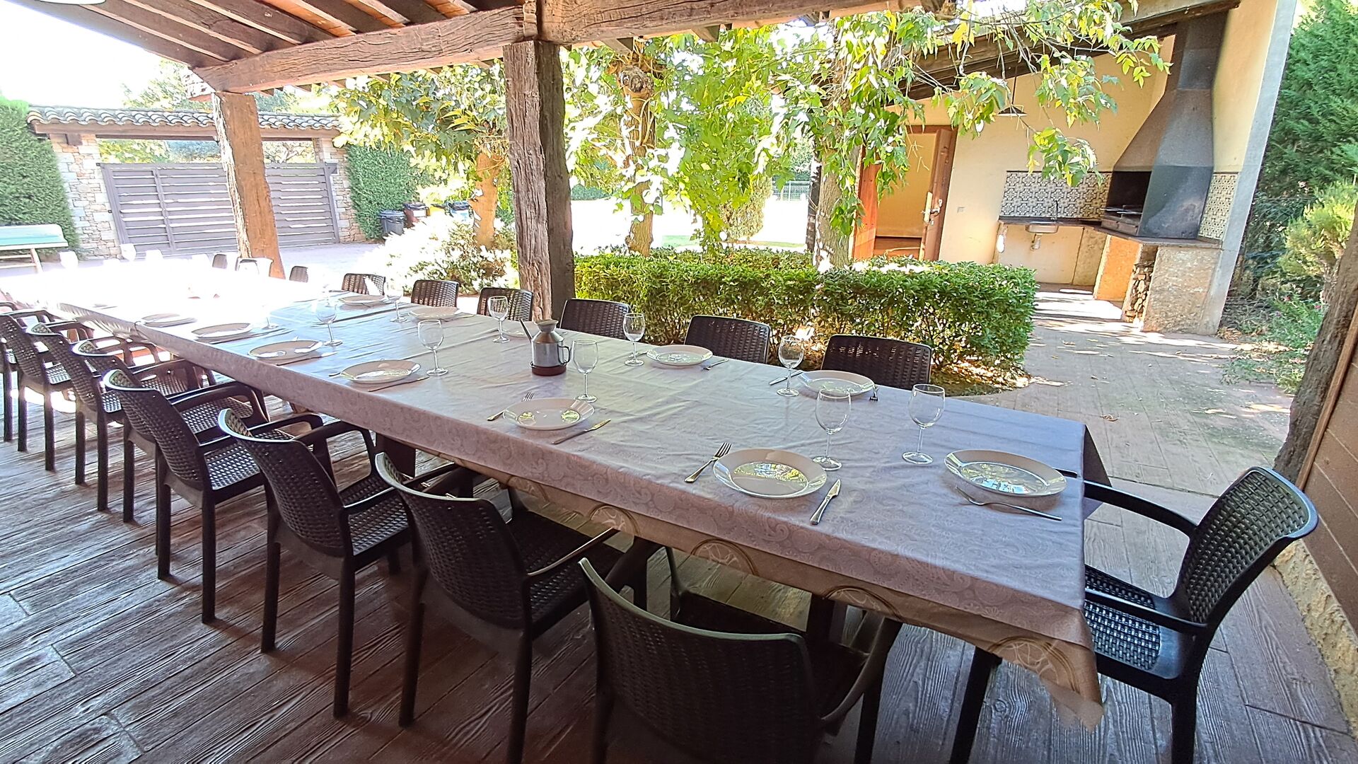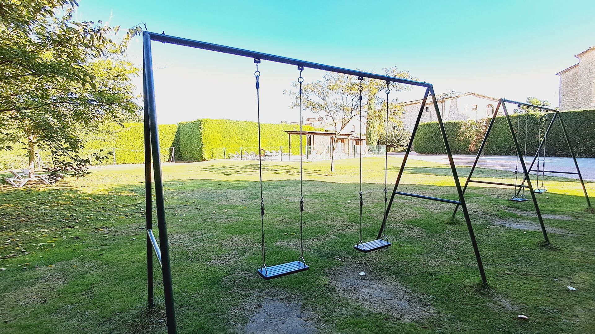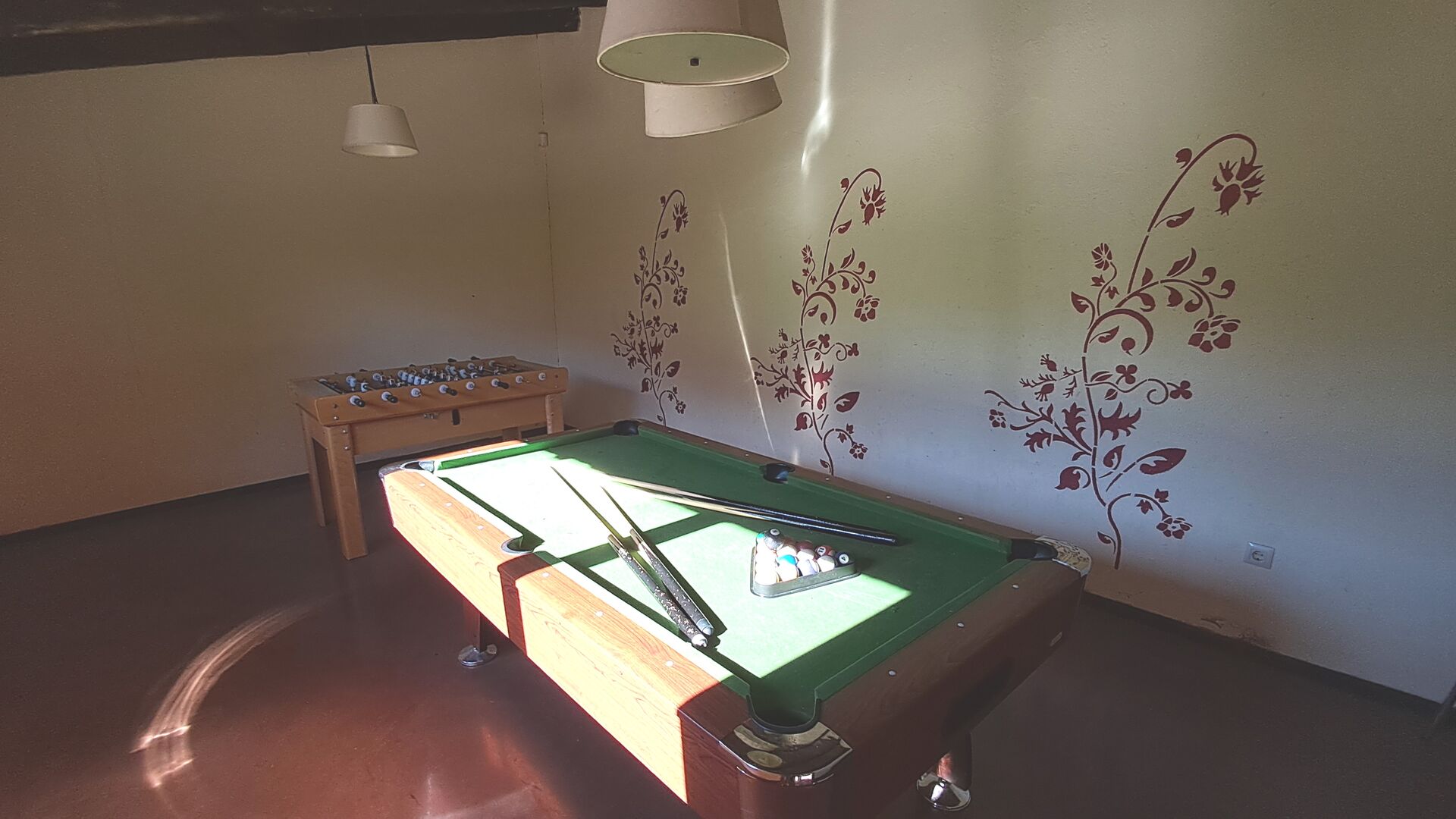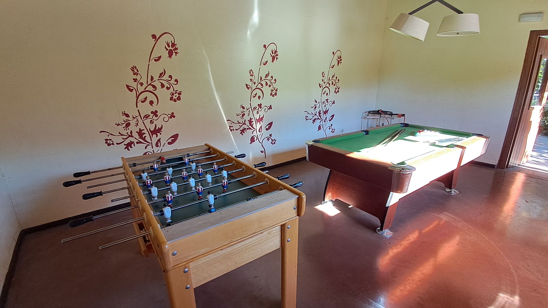 L'unique particularité de cette maison de vacances est la combinaison de la ville et du jardin avec piscine, qui offre de nombreuses activités: dans la piscine de 72 m2 et clôturée, vous pouvez nager, jouer ou simplement vous rafraîchir dans la chaleur et vous pourrez vous détendre sur les chaises longues à côté. Sur la grande pelouse, vous pouvez jouer à des jeux de ballon, il y a des balançoires pour les plus petits du groupe de vacances et vous pouvez jouer au tennis de table. De plus, au rez-de-chaussée, il y a une petite salle de jeux avec billard et baby-foot. Plus loin, dans la rue, il y a une boulangerie, des supermarchés et des bars. À Masia de las Flores, vous pouvez rester avec de jolies installations dans la cour et des magasins à proximité de la porte d’entrée. Ce n’est pas chose courante.