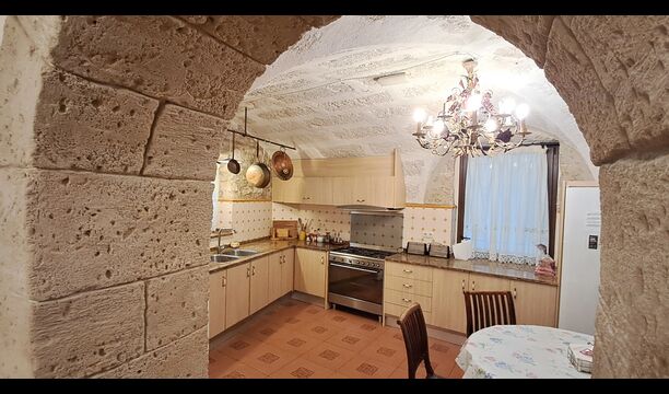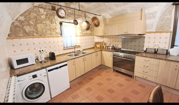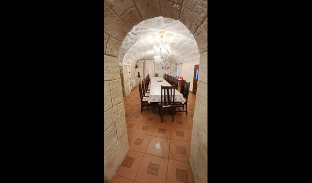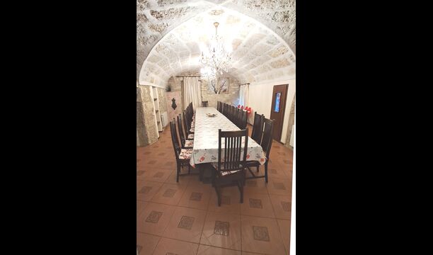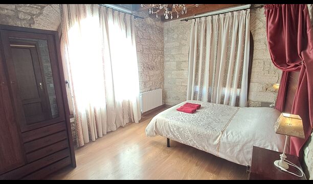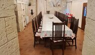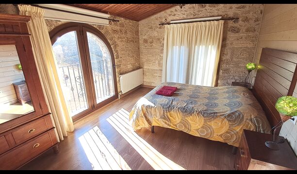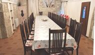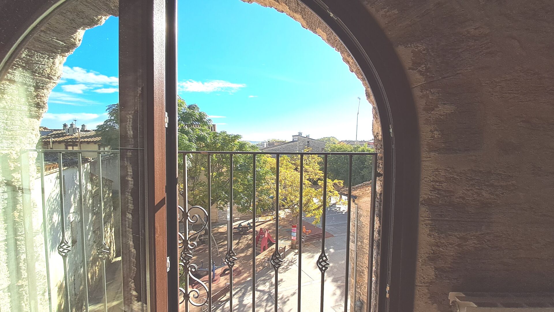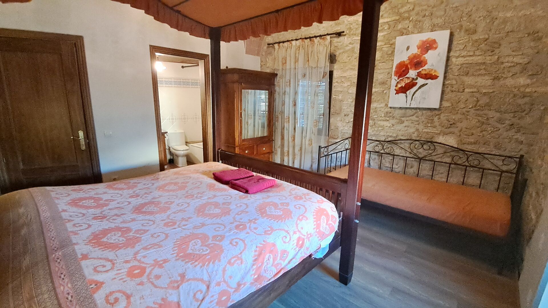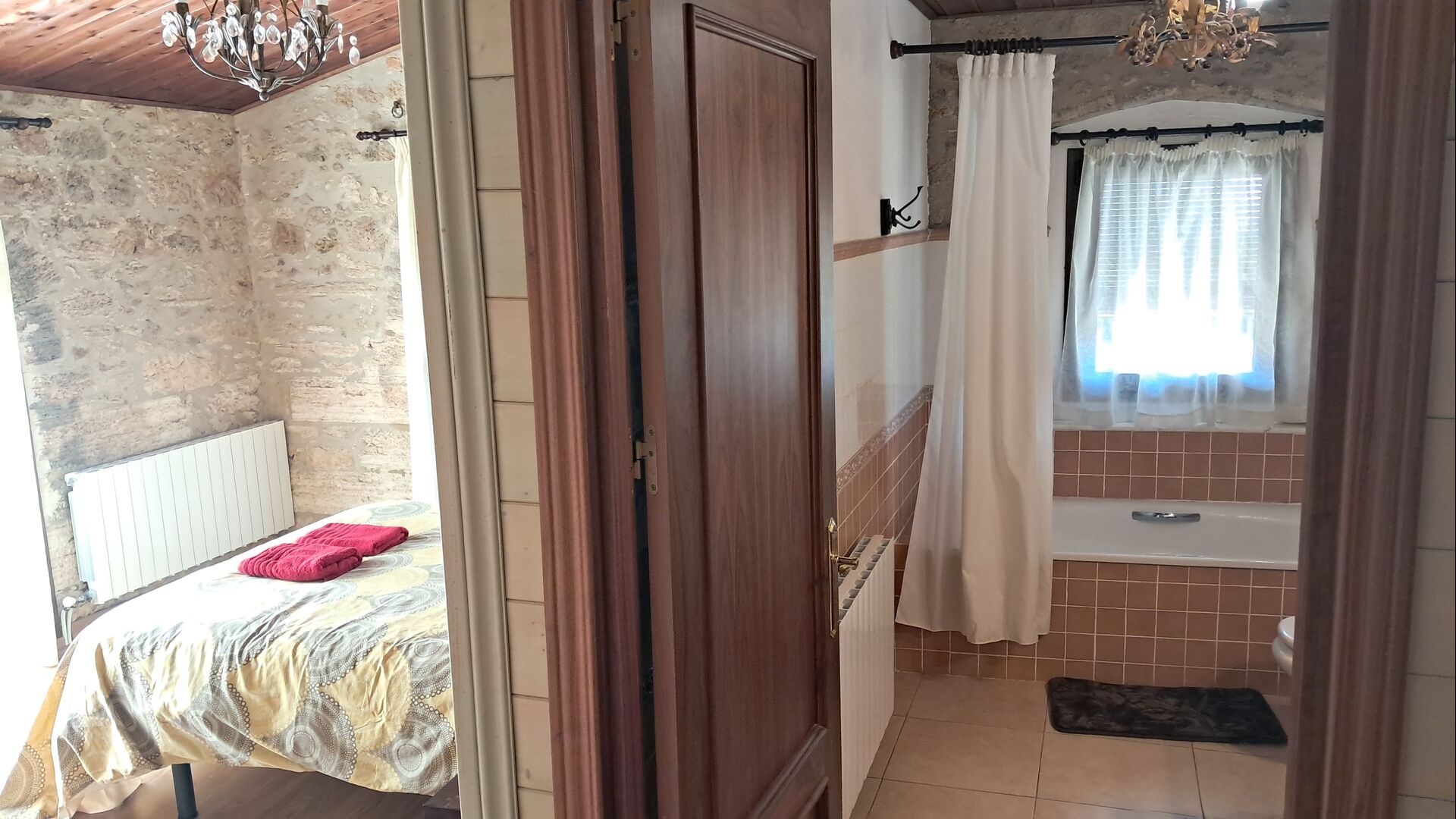 La maison est située à côté de la grande église de la ville et vous entrez dans la maison de vacances directement depuis la magnifique place de l'église. Lorsque vous entrez dans la Masia de las Flores, qui mesure 710 m2, vous rencontrez un beau salon avec de grands canapés confortables et une télévision à écran plat. L'intérieur de la maison est très beau: le plafond incurvé et les belles portes cintrées créent une atmosphère agréable et spacieuse. Ici, au rez-de-chaussée, il y a aussi une cuisine et une longue table à manger.