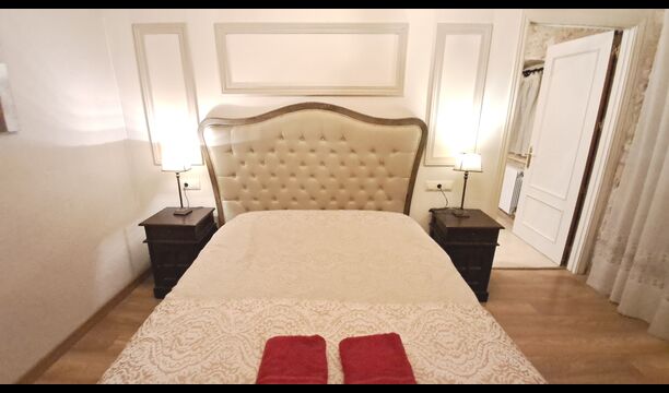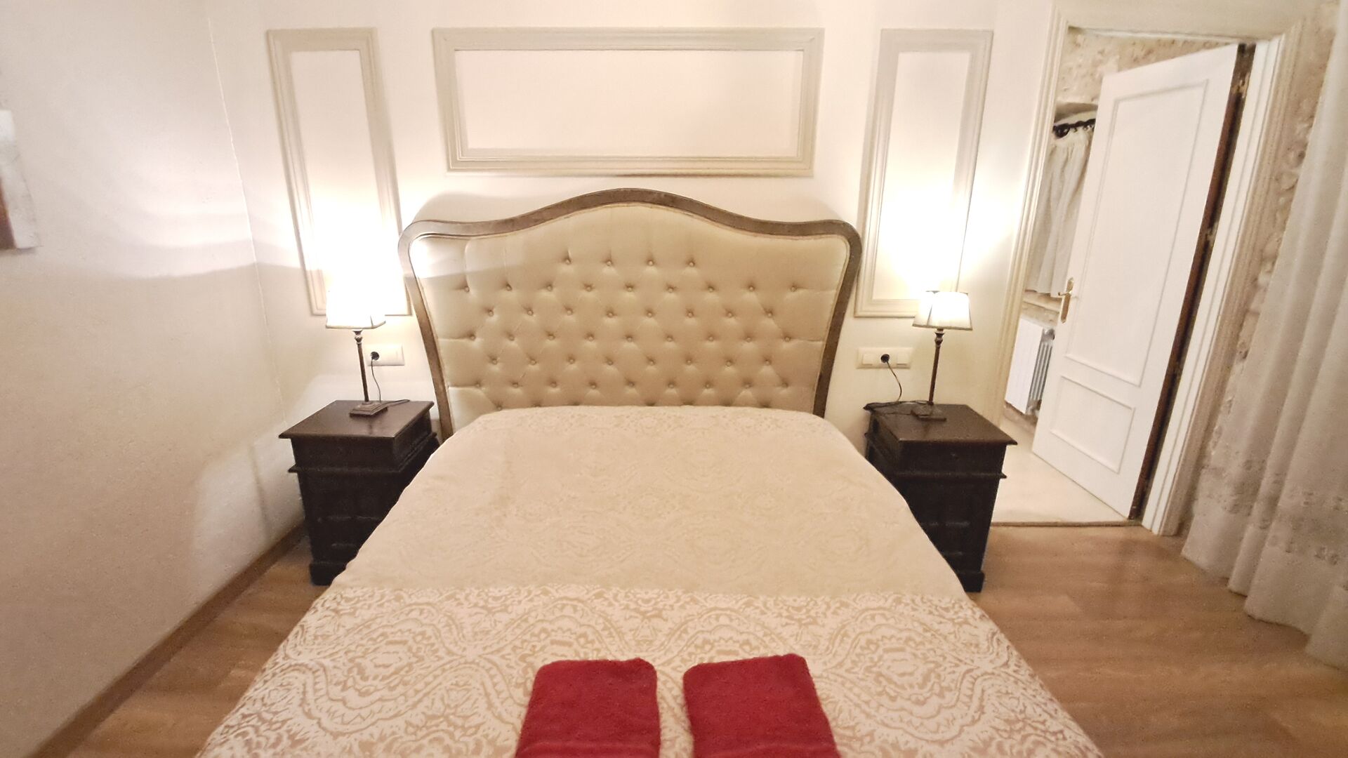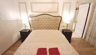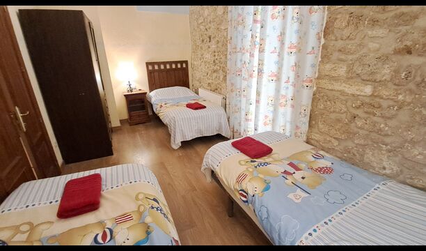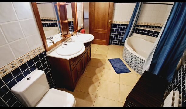 Comme dans le reste de la maison de vacances, les chambres sont d'un niveau élevé - les propriétaires ont vraiment mis la peine à concevoir. Ils sont tous décorés différemment, mais ce qu’ils partagent, c’est leur volume et leur qualité. Lorsque vous voyagez beaucoup de gens ensemble, il peut être agréable de se retirer et de profiter du calme seul, et les chambres sont parfaites pour cela. Au total, au premier et deuxième étage, il y a 11 chambres, dont 7 doubles et 4 triples. Celles-ci incluent une chambre de fille avec une literie rose et une chambre de garçon avec des lits bleus. 7 des chambres ont leur propre salle de bain, où trois d'entre elles ont une baignoire. Il y a 8 salles de bains modernes et spacieuses dans l'appartement.