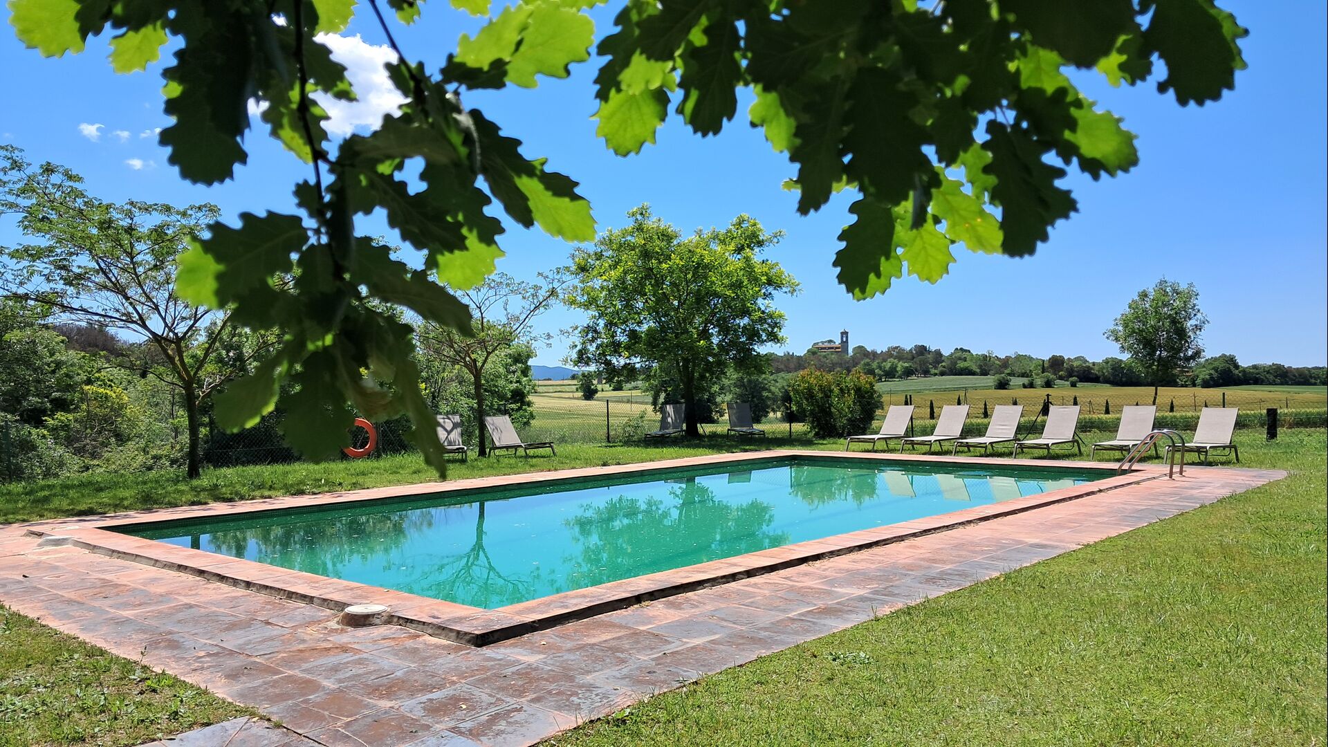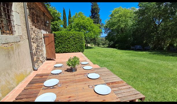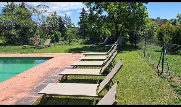 La grande piscine clôturée de 12x6 mètres est l’atout majeur du jardin, avec chaises longues, zones ombragées et beaucoup d’espace pour se détendre au soleil catalan. Le domaine comprend également :