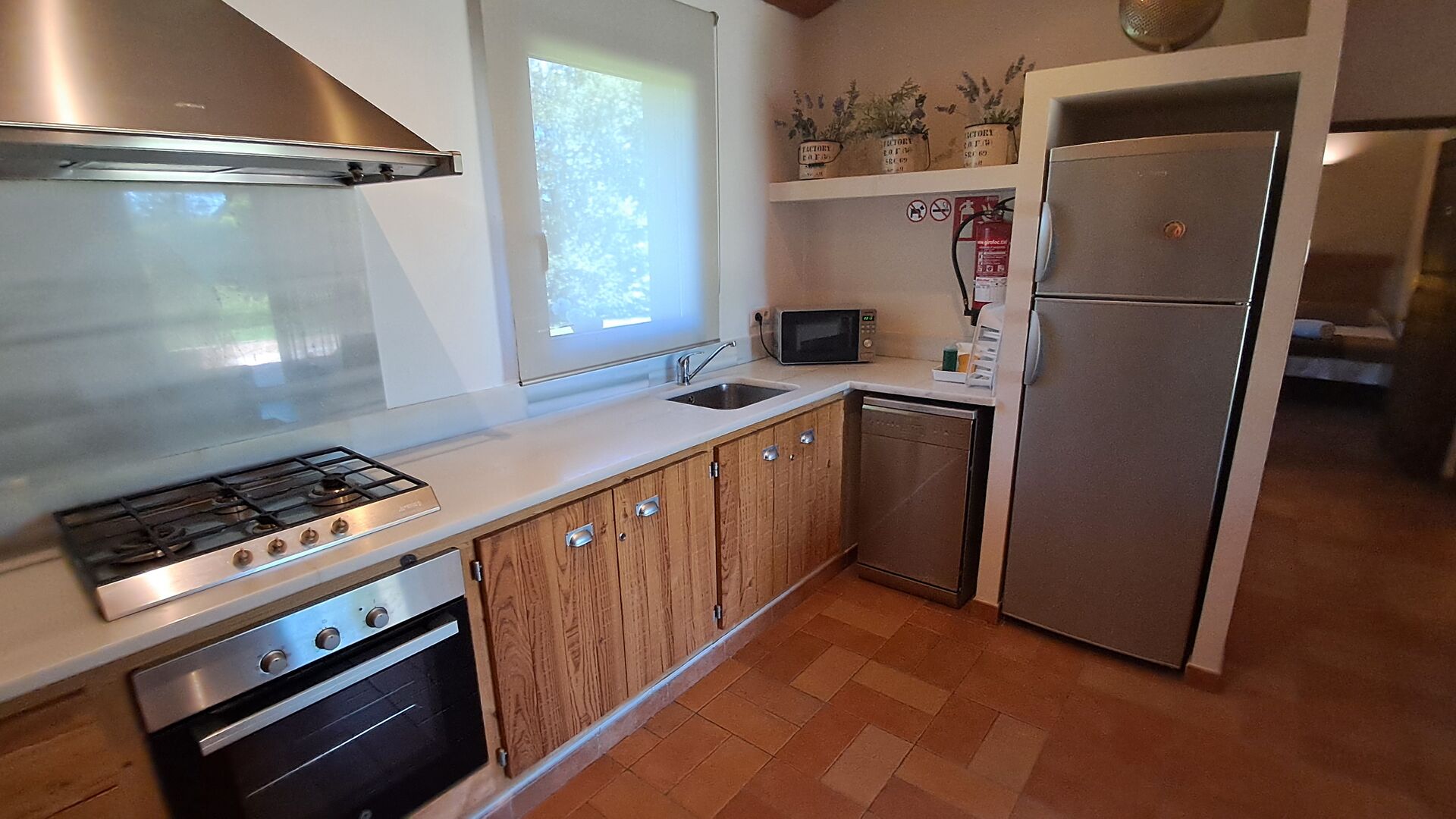 La masía combine le confort moderne avec le charme rustique traditionnel. Entourée de champs et de nature, elle offre une atmosphère relaxante tout en gardant un accès facile à la vie urbaine et aux expériences culturelles. Un petit village voisin propose des commerces locaux, comme une boucherie, idéale pour savourer un barbecue catalan à la maison.