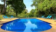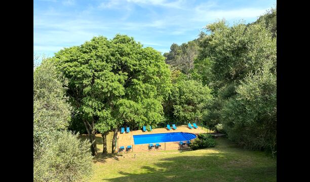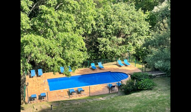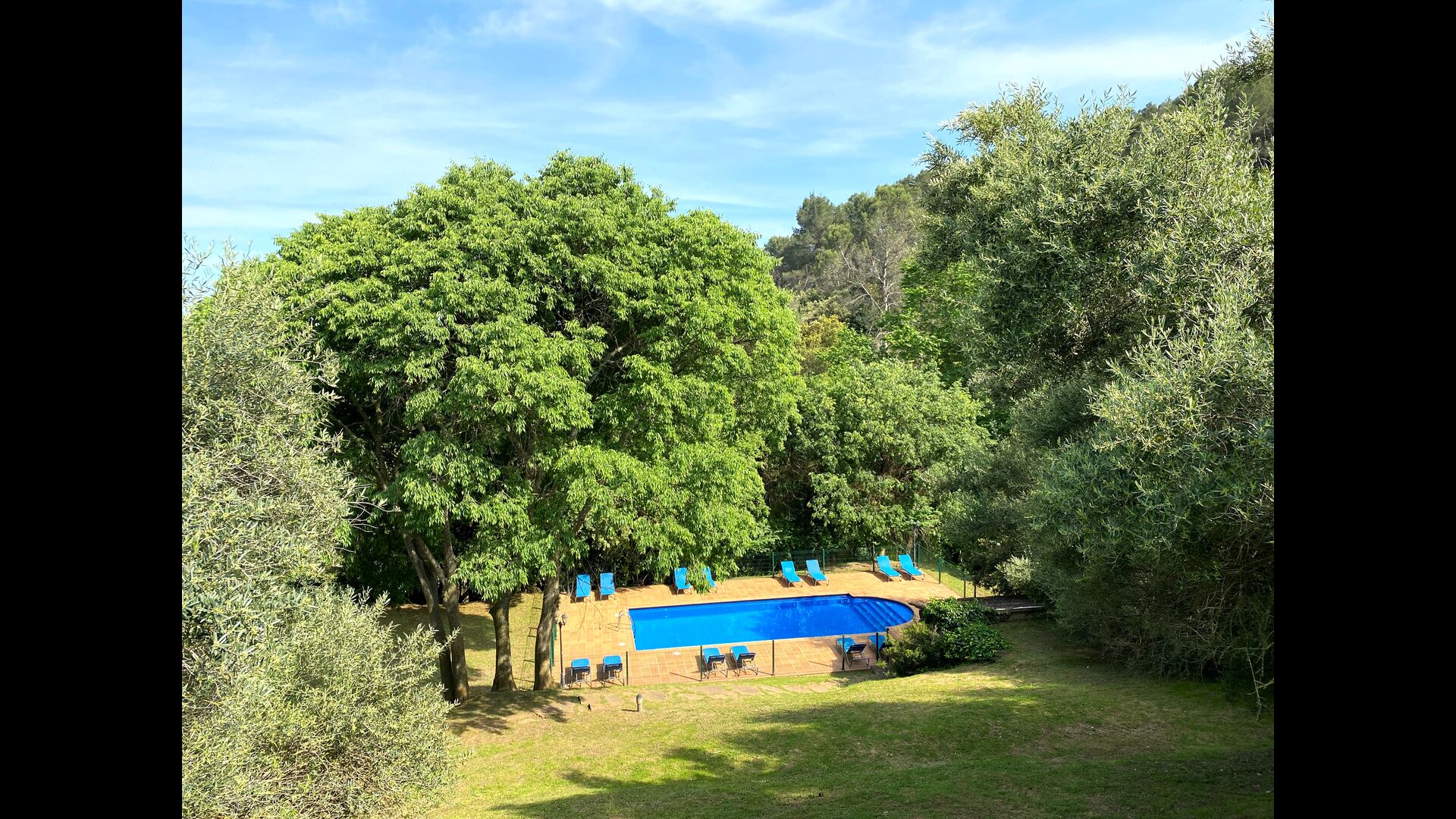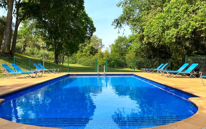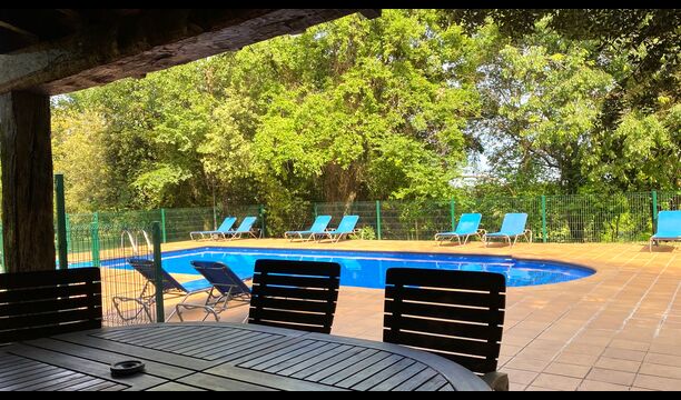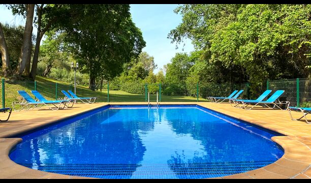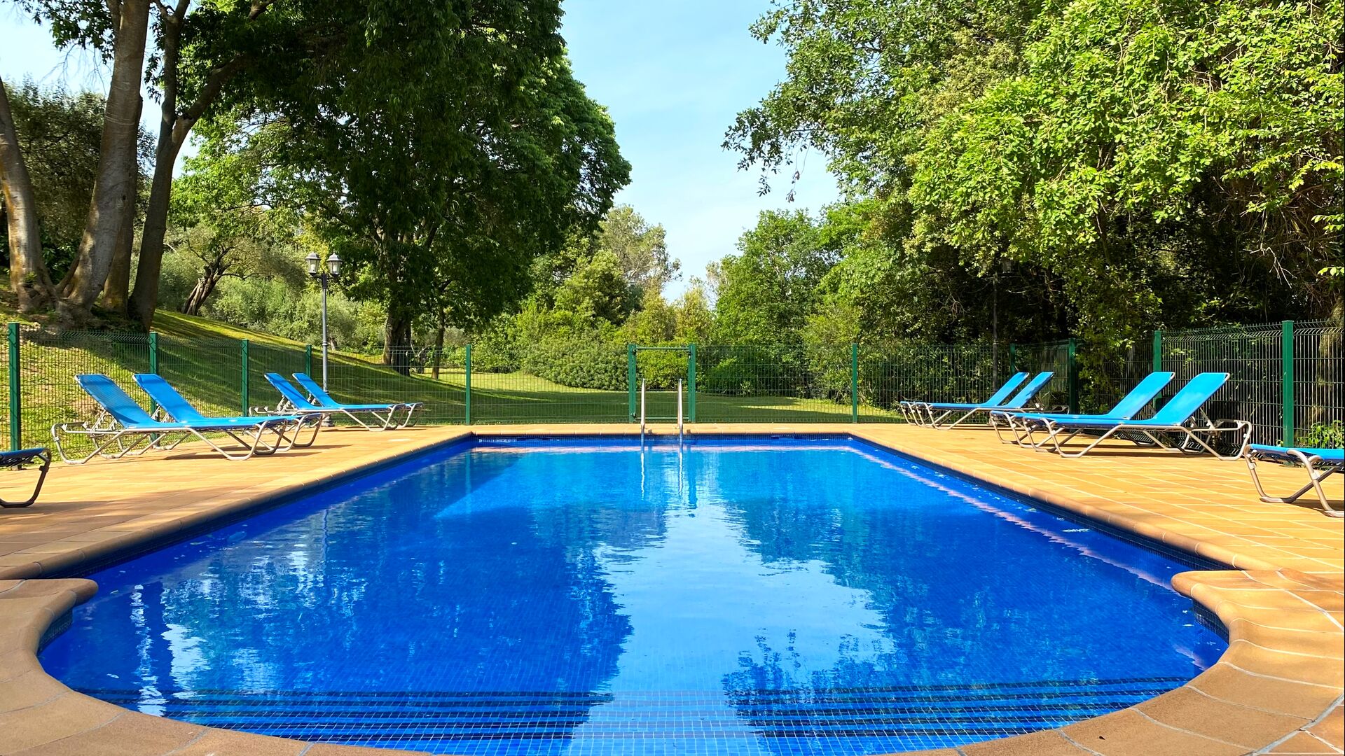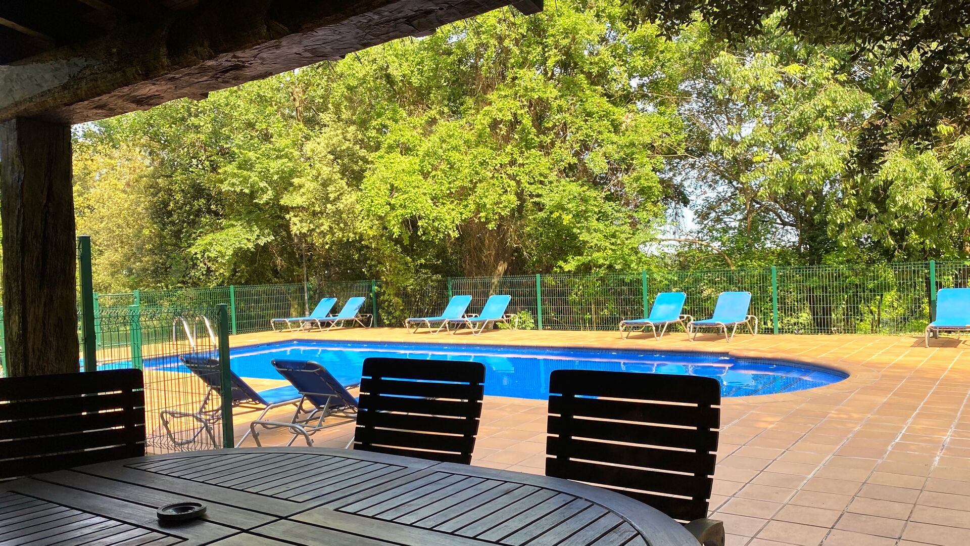 La piscine est située dans un environnement verdoyant sous la maison. Il est presque situé dans un champ d'oliviers. Il est bien équipé avec de nombreuses chaises longues et une terrasse couverte. De plus, les orangers et les mandariniers ajoutent à la sensation d'être seuls dans la nature catalane. Pour les enfants, le jardin a une petite piste de football avec des buts de football. La maison dispose de trois grandes terrasses avec des sièges et des chaises longues. Il y a plusieurs zones de barbecue.