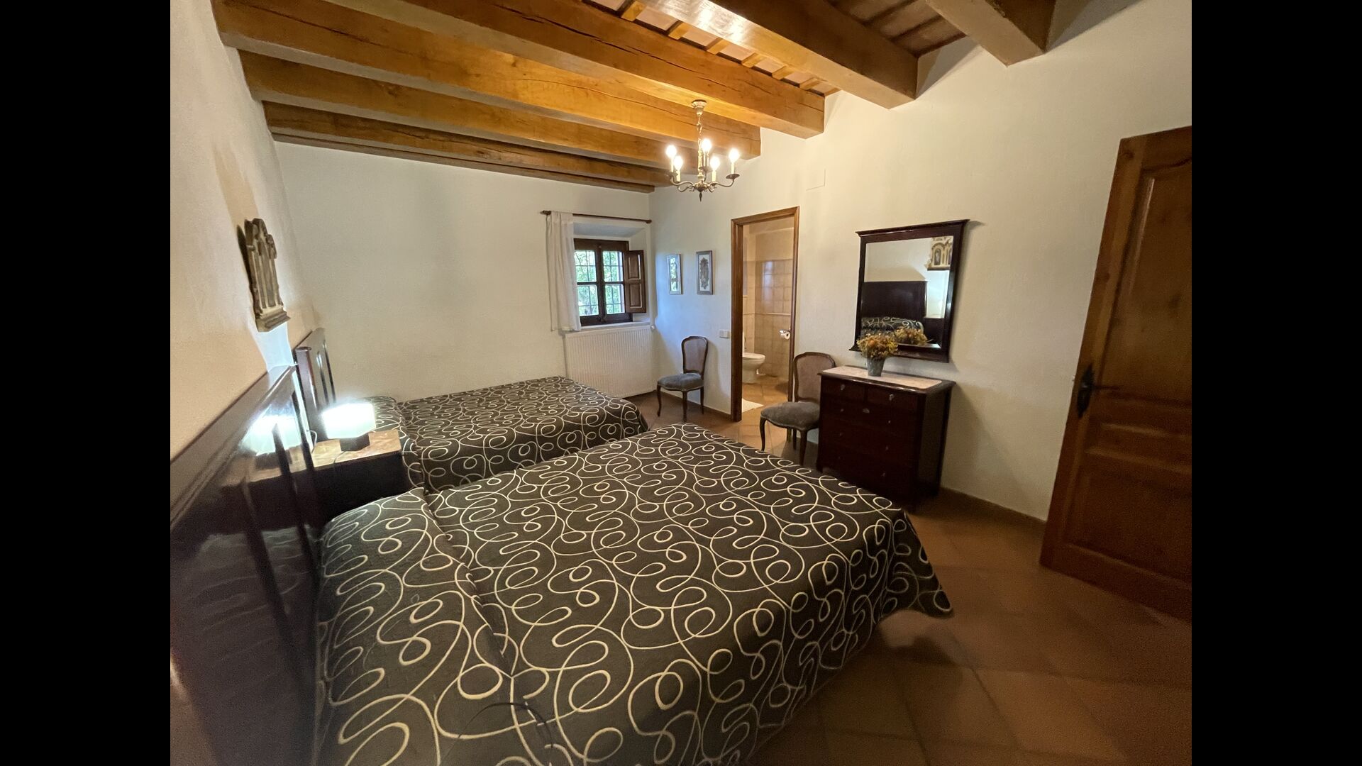 En montant les escaliers jusqu'au premier étage, vous entrez dans l'unité «Mirador». Cet appartement a une immense terrasse avec une vue magnifique sur le paysage. C'est l'endroit évident à rassembler, quand vous êtes un grand groupe. Aussi la salle commune à l'intérieur est immense et avec de hauts plafonds. Il y a une table à manger, un coin canapé avec télévision et un accès à la cuisine séparée avec un autre coin repas et un lave-vaisselle, un four, des plaques chauffantes, un four micro-ondes, etc. Il y a un accès à 3 chambres, une chambre double, une chambre double et une chambre simple . Il y a une salle de bain avec douche.