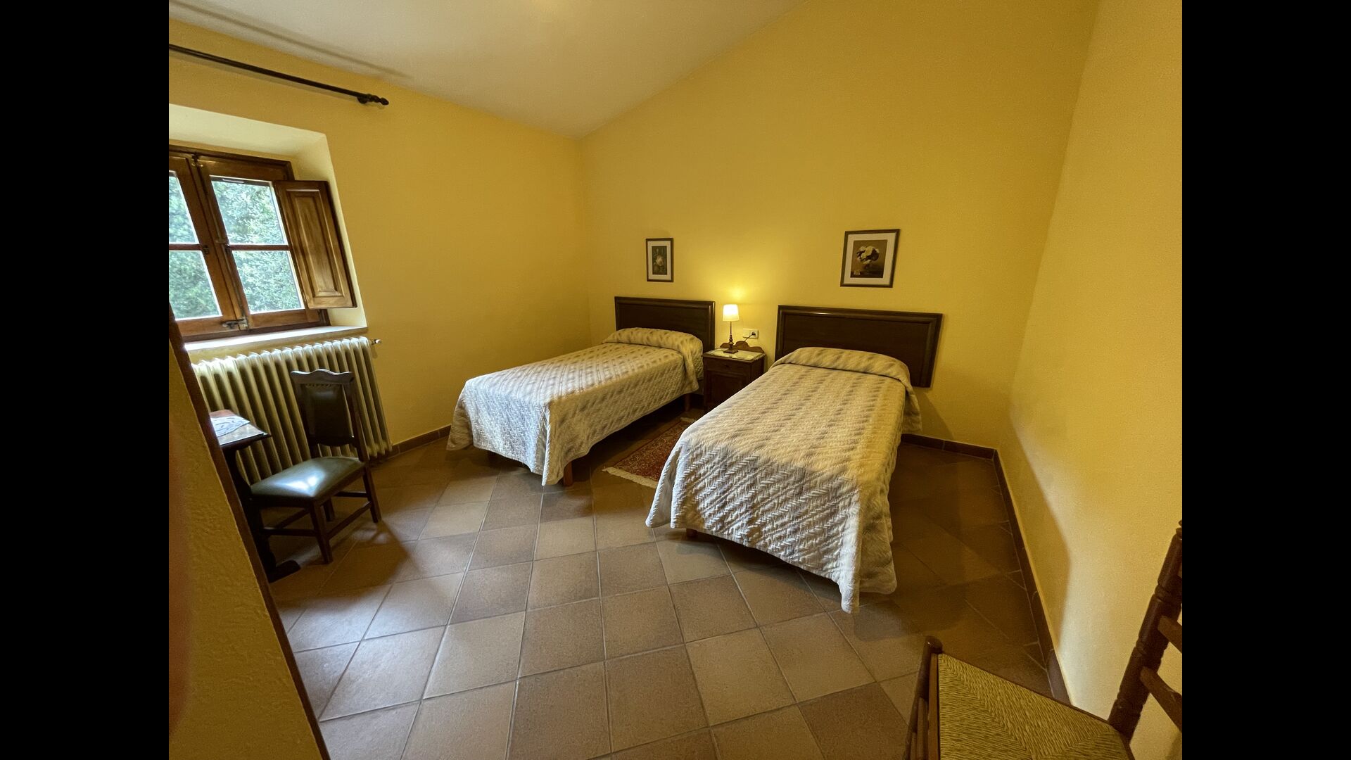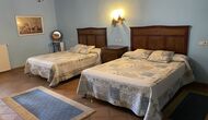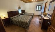 De l'autre côté, au même niveau, se trouvent les chambres. Il y a une chambre double avec un lit double et une salle de bain en suite et deux grandes chambres avec chacune deux lits doubles et une salle de bain en suite.