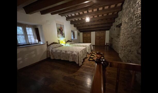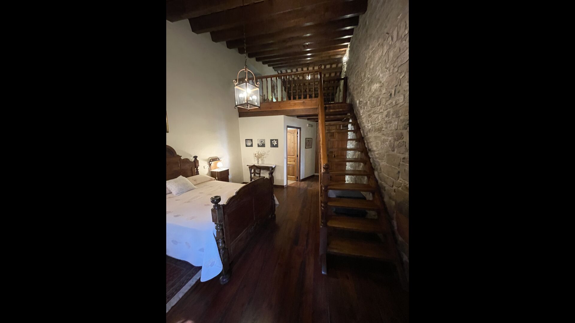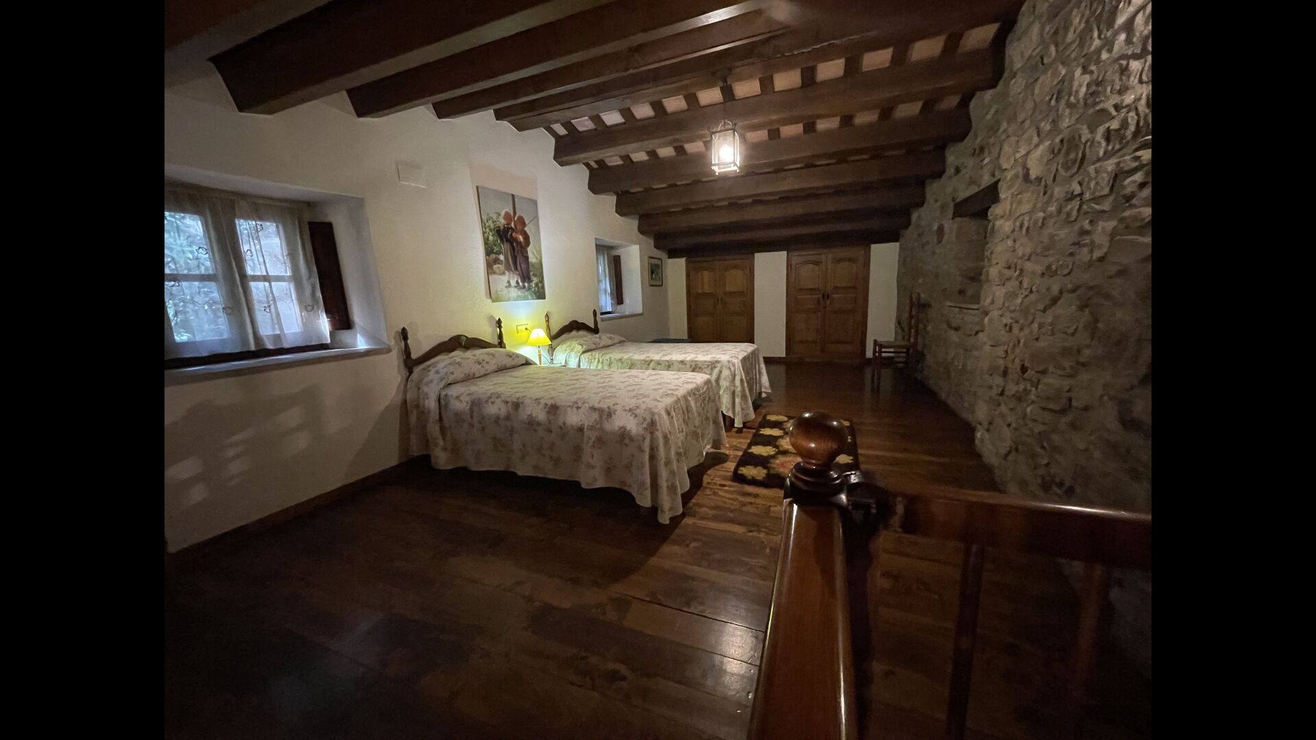 Depuis la salle commune, on accède à une chambre double avec salle de bain avec baignoire. De l'autre côté de la salle commune, vous pouvez entrer dans une autre chambre double avec salle de bain privée avec douche. Il y a une très grande chambre avec un lit double et deux lits simples et une salle de bain avec douche. Il y a une quatrième chambre double avec salle de bain. Enfin, il y a une salle très spectaculaire. Il y a un très haut plafond. Dans le niveau que vous entrez, il y a un lit double et une salle de bain, puis dans la chambre, il y a un escalier menant à une mezzanine avec deux lits simples.