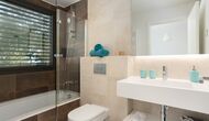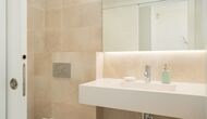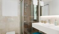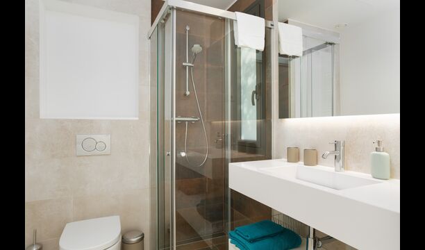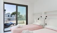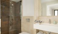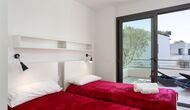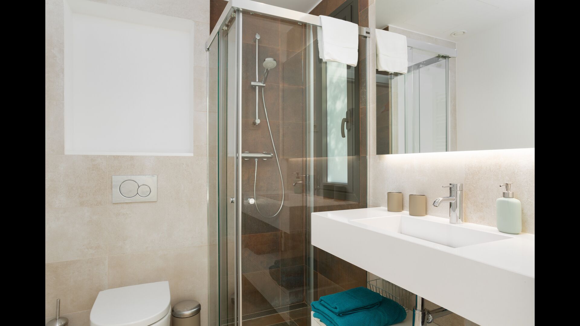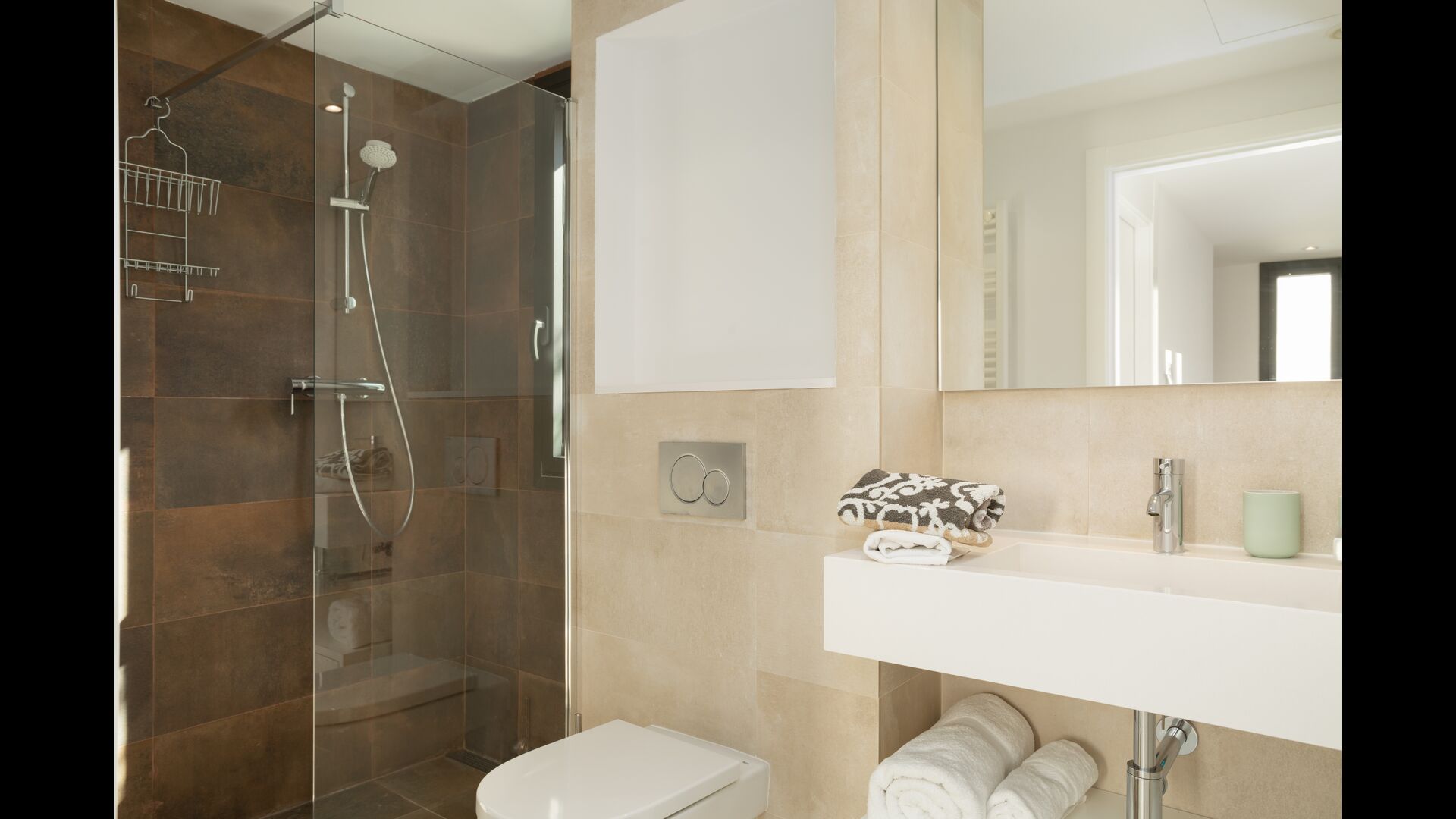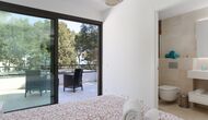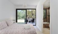 À l'étage supérieur, il y a deux chambres doubles avec accès à une belle terrasse avec vue sur la zone commune. Ces deux chambres partagent une salle de bain avec douche. Ici aussi, il y a une chambre double ensuite avec une salle de bain avec baignoire et accès à une grande terrasse avec vue sur le jardin de la maison.